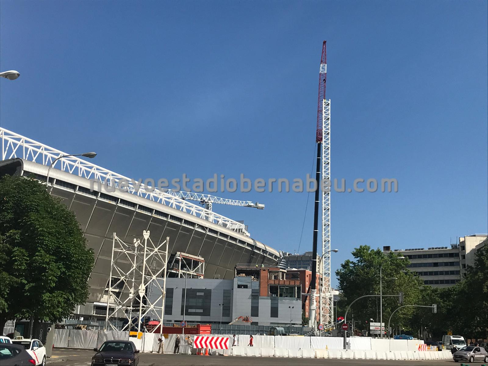 A primera hora de la mañana se han reiniciado las obras en el Bernabéu y como se puede ver en las imágenes la grúa torre de Comansa ya ha cogido bastante altura, pero además v