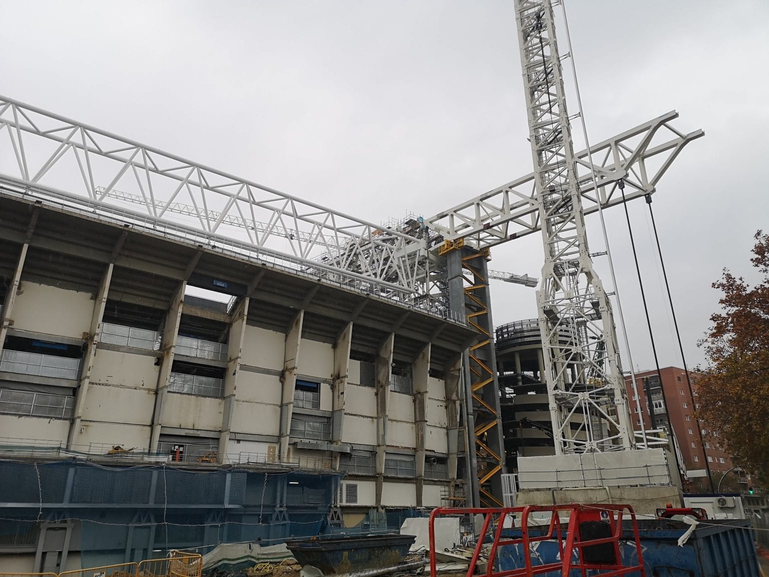Semana muy lluviosa y ventosa en Madrid que no ha sido óbice para que la continuidad de las obras del nuevo Bernabéu continúe con paso firme y sin mayores contratiempos. Las act