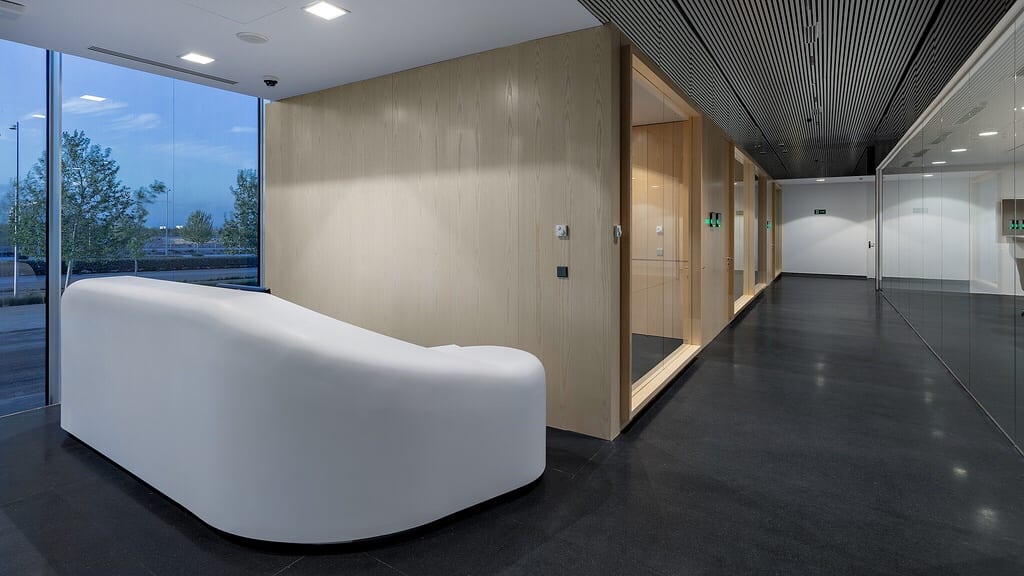 Con una superficie de 8.000 metros cuadrados y bajo el diseño del prestigioso arquitecto Rafael de La-Hoz, se ha logrado optimizar la eficiencia del personal con la dotación de unos espacios adecuados disfrutando de una especialidad fluida, transversal e inundadas de luz.
