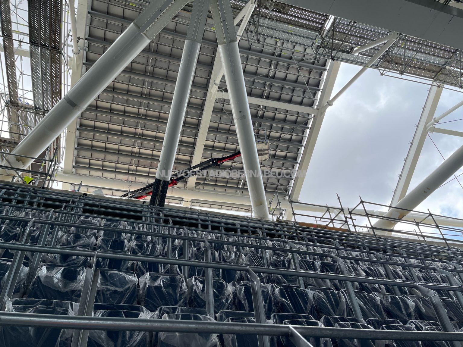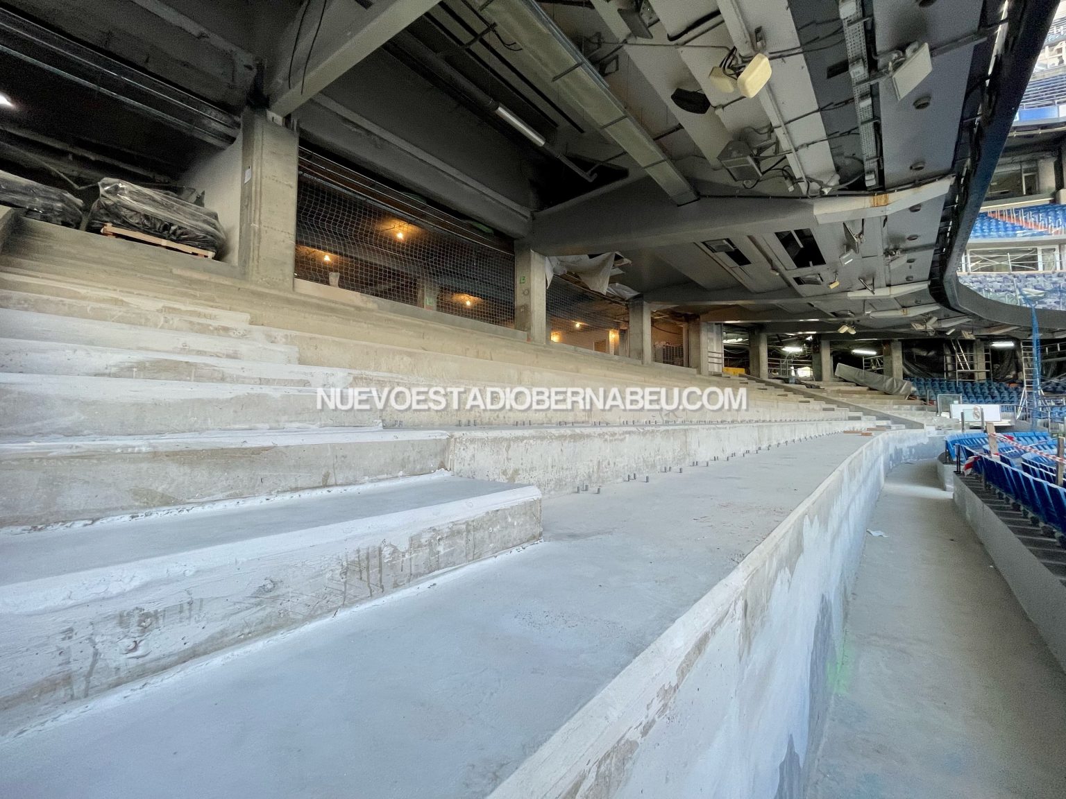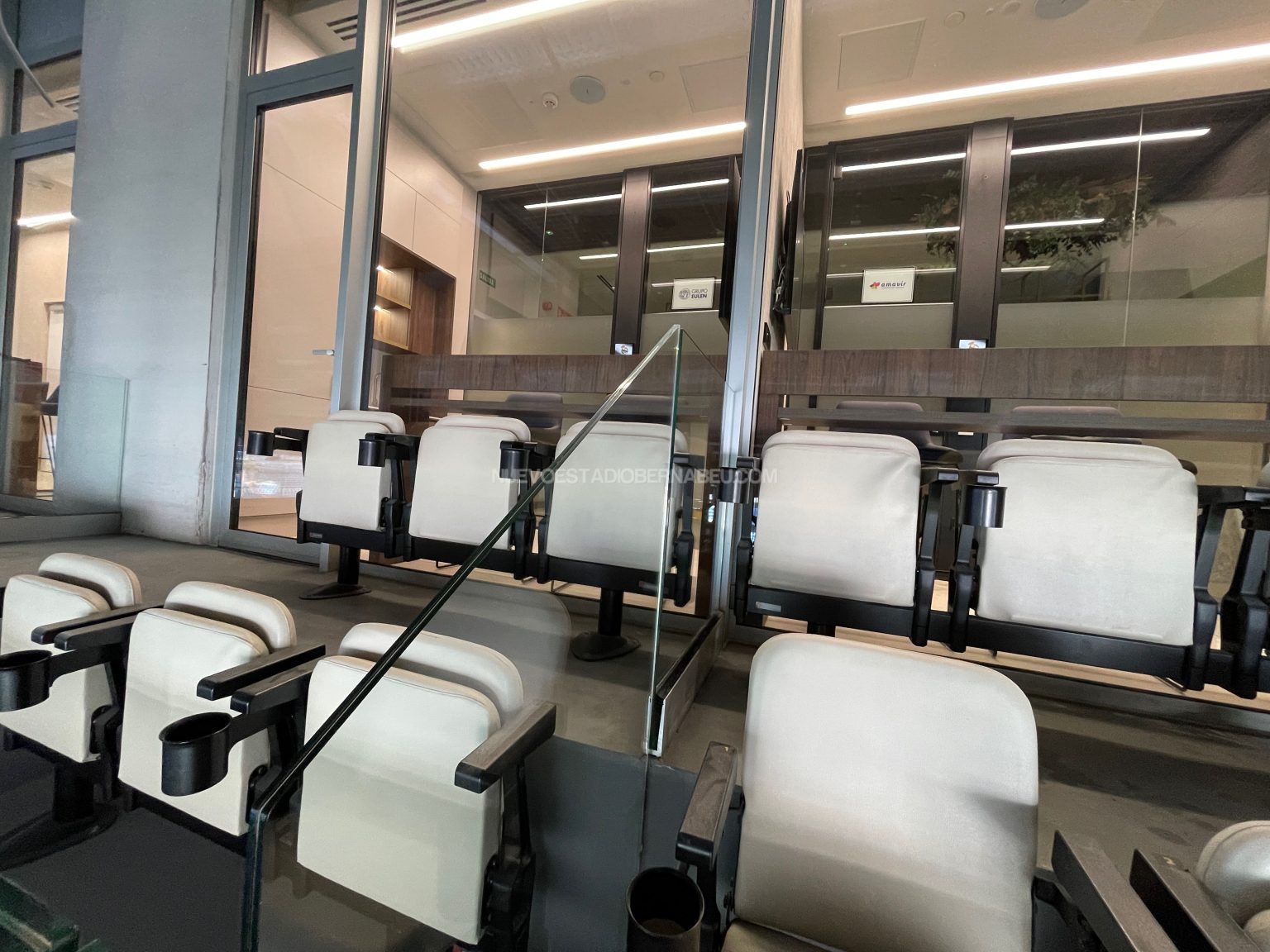 Además de los trabajos en el Tunnel Club, se trabaja en la habilitación de los palcos del nivel 7 que como podéis ver en las fotos están quedando bastante coquetos. Exteriormente se han panelado con vidrio dando mucha mejor sensación de continuidad que los antiguos palcos triangulares. Estos palcos 7.000 están muy avanzados y estarán disponibles en breve. Los que van un poco más atrasados, son los espectaculares palcos 3.000. En anillo de palcos del nivel 3 serán sin duda los mejores de todo el estadio, y a tenor de las infografías van a quedar muy chulos.