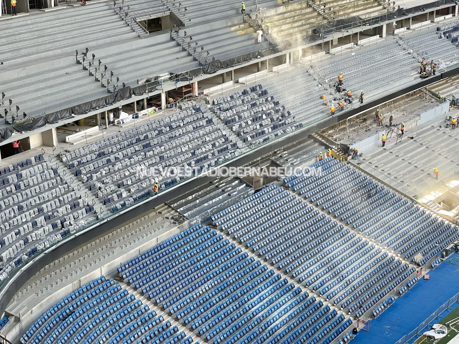 Los asientos del Bernabéu también están siendo objeto de una transformación completa. Como habéis visto, durante todo el verano se ha trabajado en el bowl del estadio con el fin de habilitar asientos abatibles en el 100% del aforo. Esta actuación es vital para dotar de mayor confort a los socios y aficionados. Para el primer partido de la temporada vamos a ver asientos nuevos en tribuna, primer, segundo, tercer y cuarto anfiteatro del lateral este; grada del fondo sur,  primer anfiteatro norte, sur y oeste; grada oeste y parte del cuarto anfiteatro oeste. Durante los próximos 3 parones de selecciones que se vienen en los próximos 3 meses se procurará tener el 100% del aforo con los asientos nuevos.