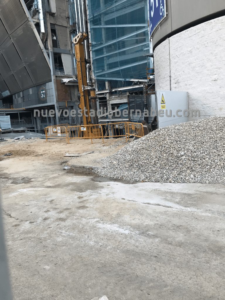 Las obras del Bernabéu también se están desarrollando dentro del estadio se está trabajando de manera muy intensa. Se ha preparado una rampa de acceso desde la puerta 36 con pendiente de bajada al césped desde la grada baja del fondo sur que ha sido preparada para el paso de maquinaria. La grada baja del lateral oeste está siendo desmantelada con piquetas, mientras que en distintas zonas del estadio se han retirado los actuales asientos aunque no se prevé el cambio de estos hasta la última etapa de la obra para evitar daños y decoloraciones.