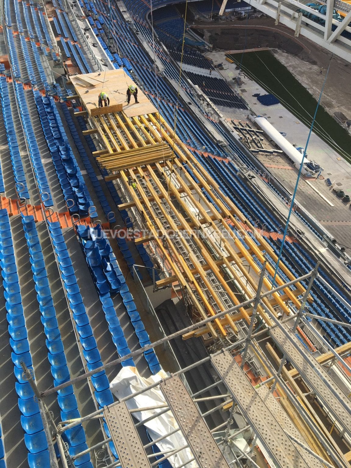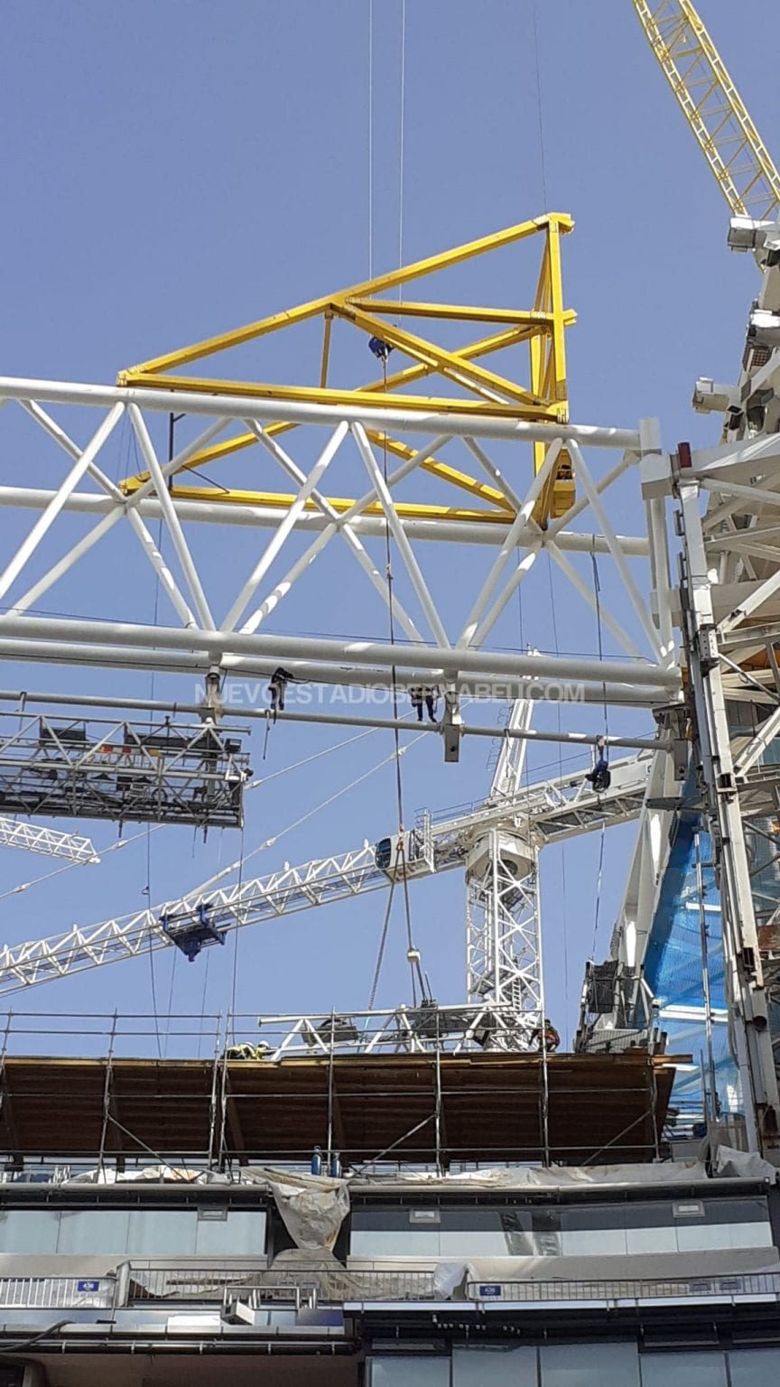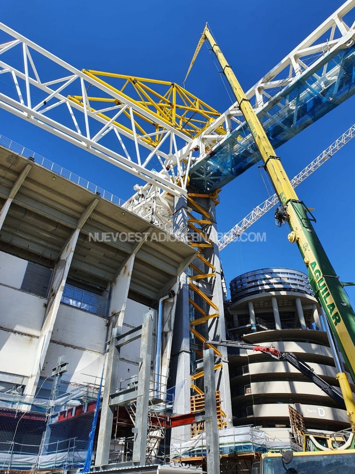 La viga este, que fue instalada en el verano del 2002, dentro del Plan Director del Santiago Bernabéu que el Presidente Florentino Pérez desarrolló durante su primer mandato con una inversión por encima de los 200 millones de euros, que entre otras cosas permitió la ejecución de la calefacción en todo el estadio, se encontraba insertada sobre sus apoyos en los dos torreones del lateral este.