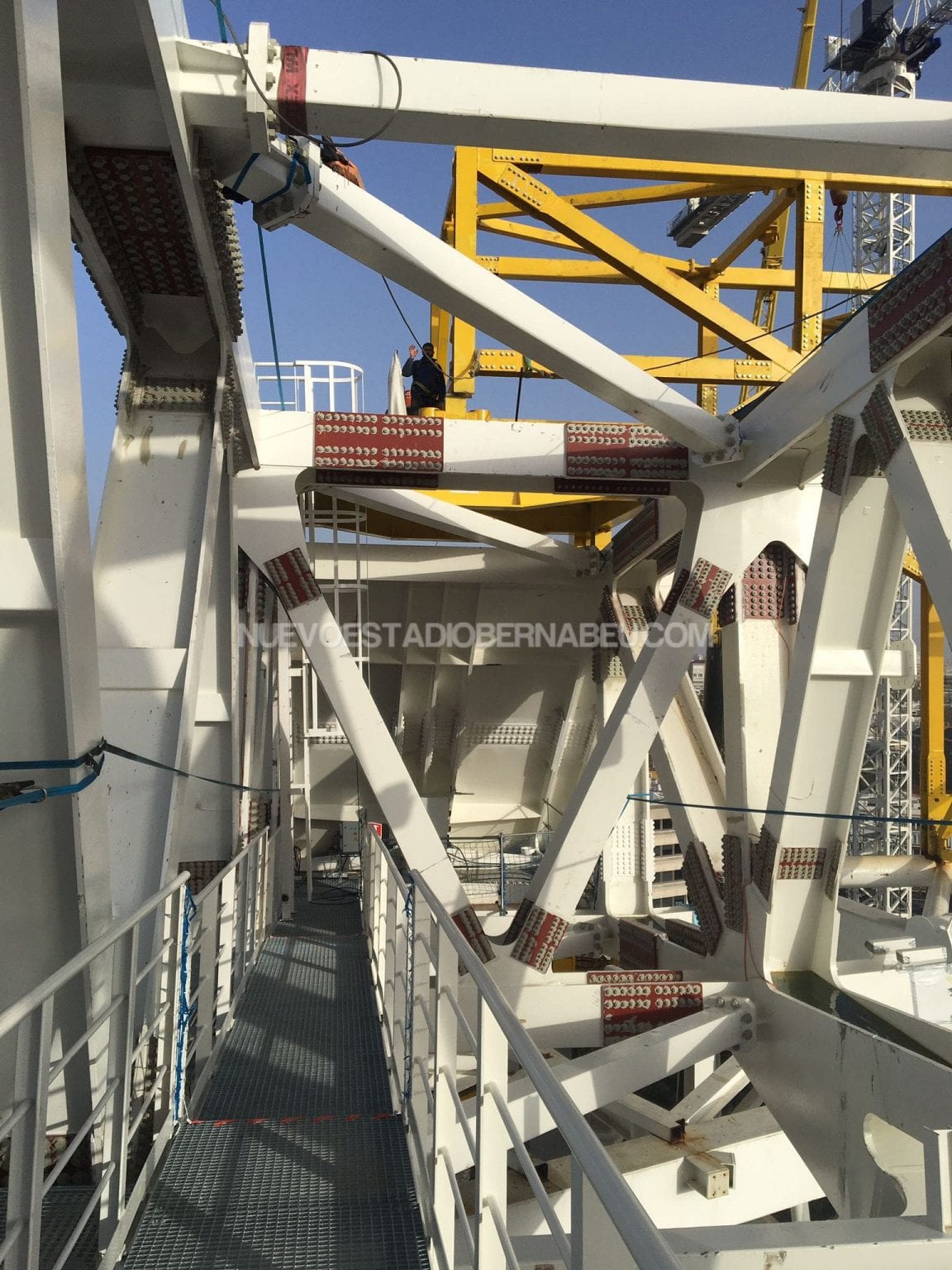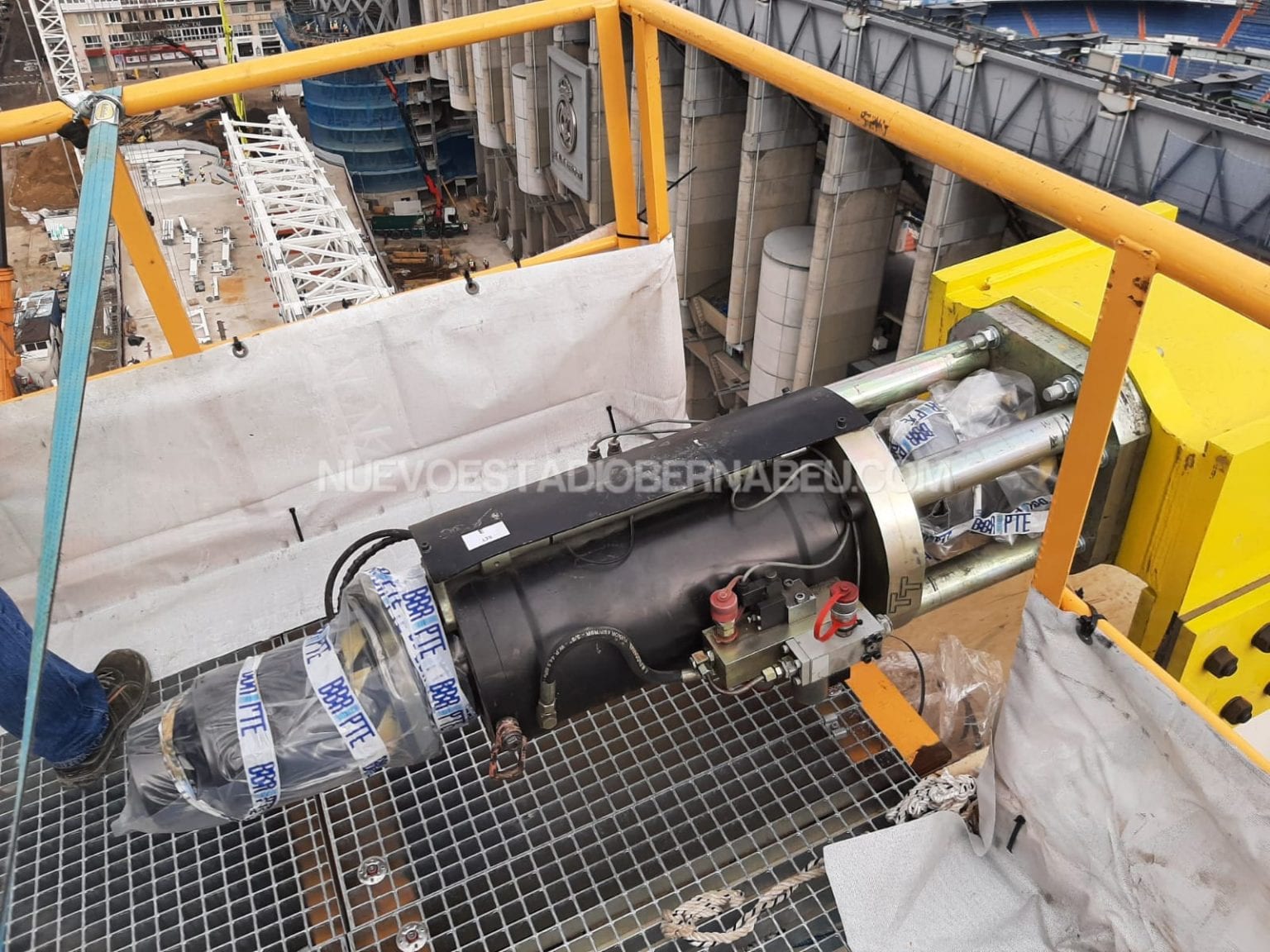 En cada una de las 2 cerchas principales, en el lado de la avenida de la Castellana (lado Oeste), se situaron 2 cilindros hidráulicos de heavy lifting (total 4 unidades).