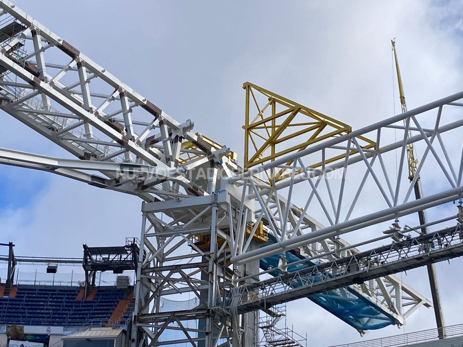 En una primera etapa la viga del Este se desplazó hasta un primer tope con el fin de dejar espacio para el posterior desplazamiento de la cubierta nueva.