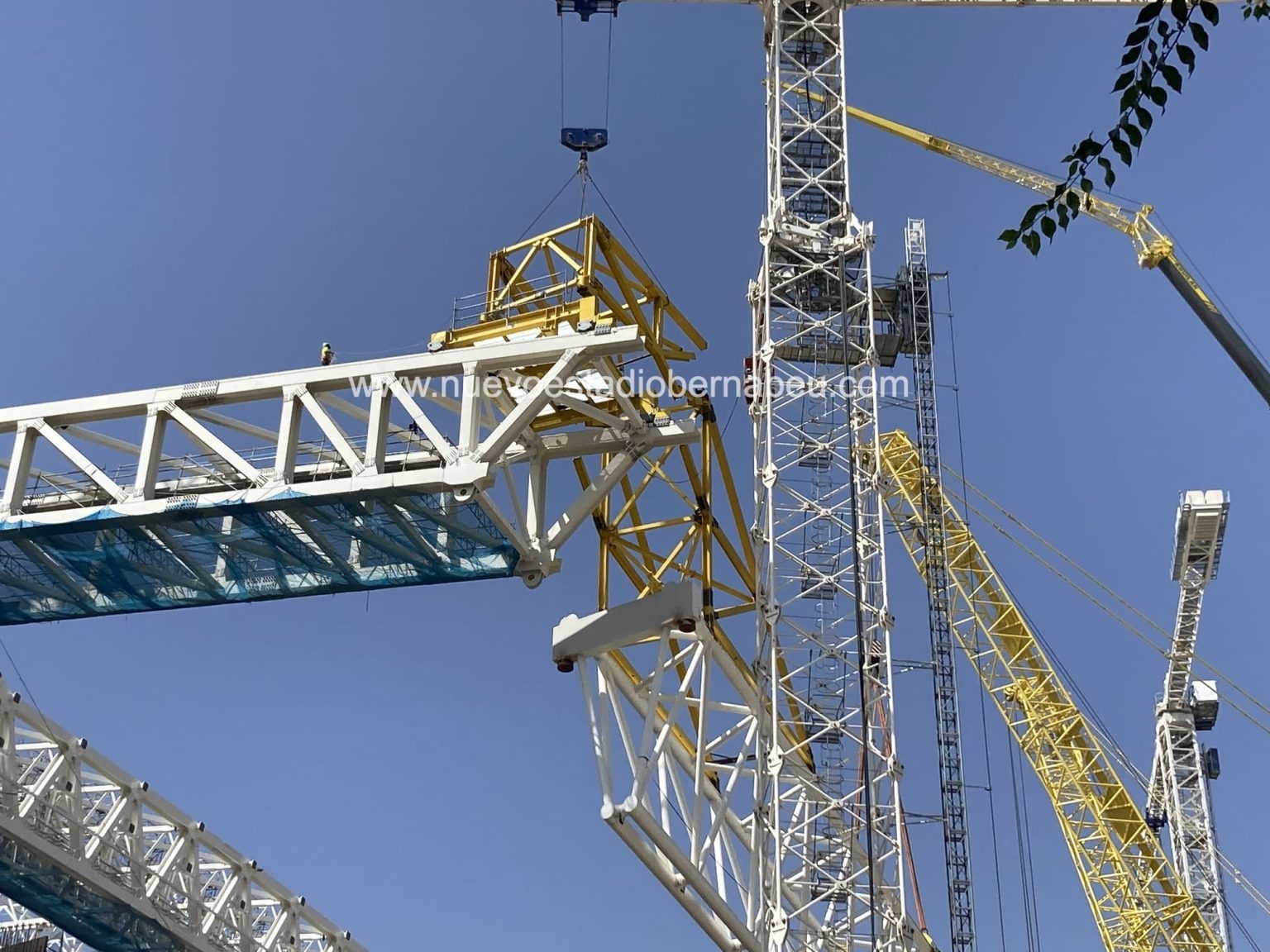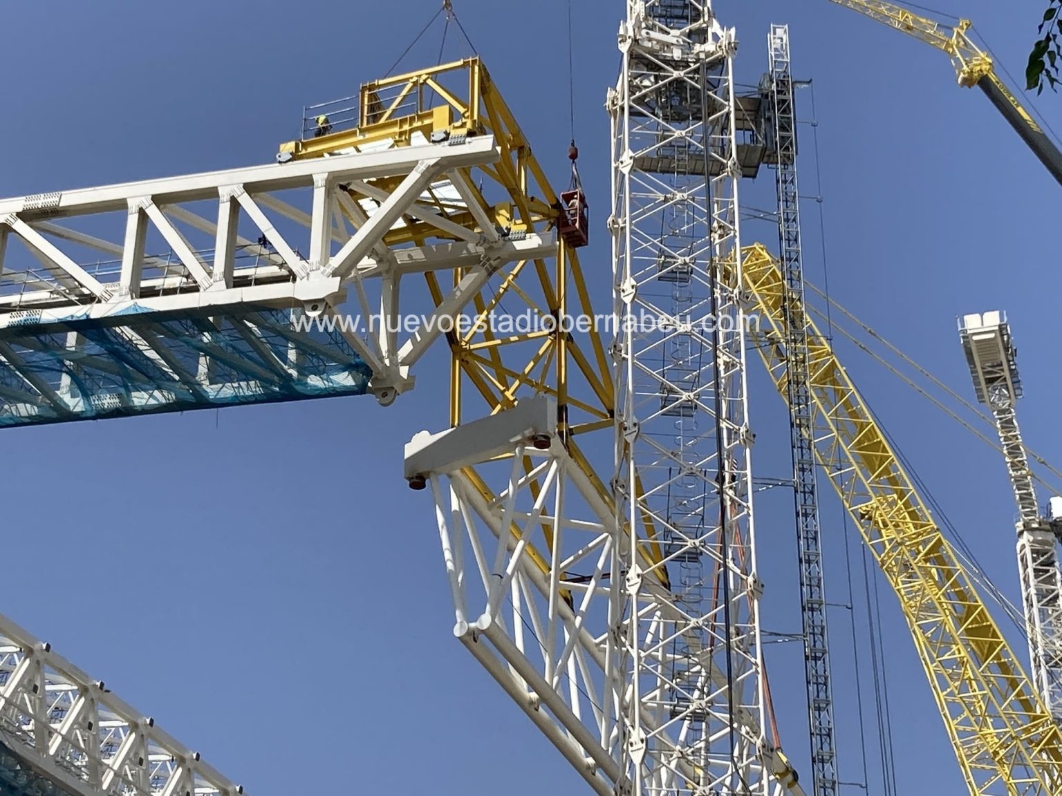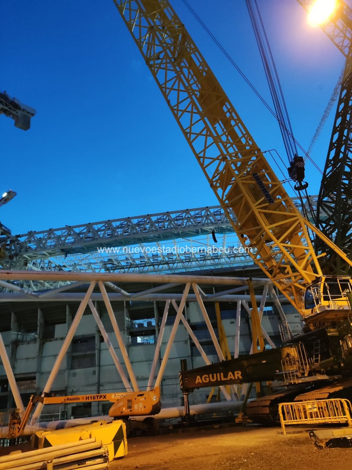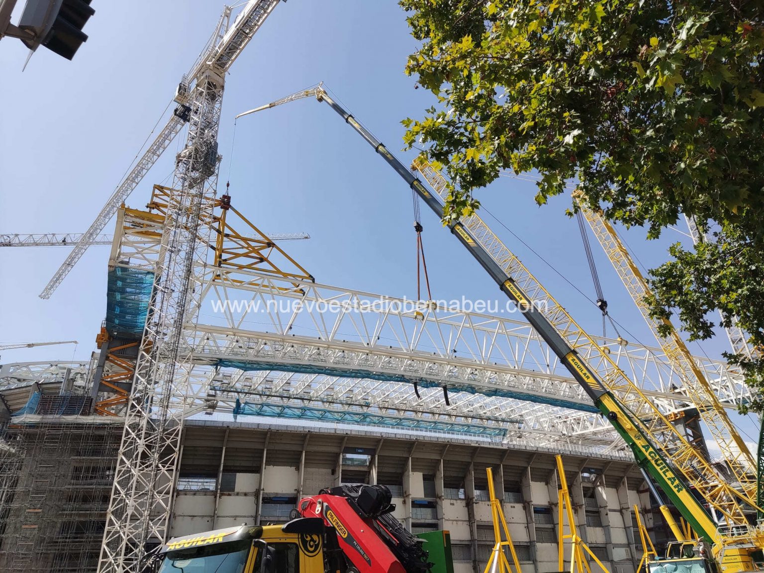 Más o menos a la misma hora que se empataba en casa del Levante, se ultimaban los preparativos para la maniobra de descuelgue de la viga del lateral este la cual llevaba semanas suspendida de los contrapesos de las cerchas principales. Prevista inicialmente para la semana del 9 de agosto, hubo que retrasar la maniobrar por unos pequeños contratiempos que quedaron solucionados en los días anteriores a su descuelgue.