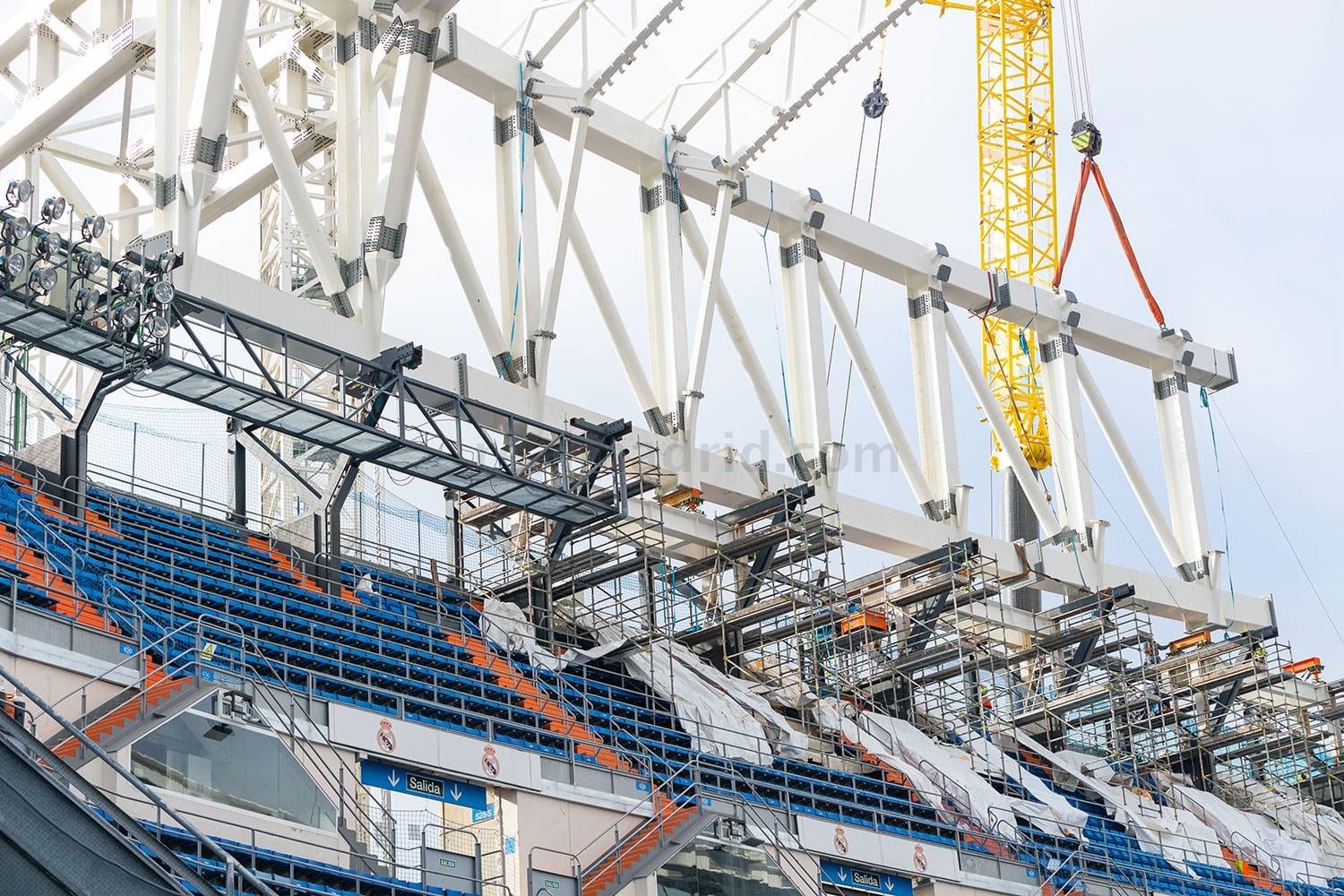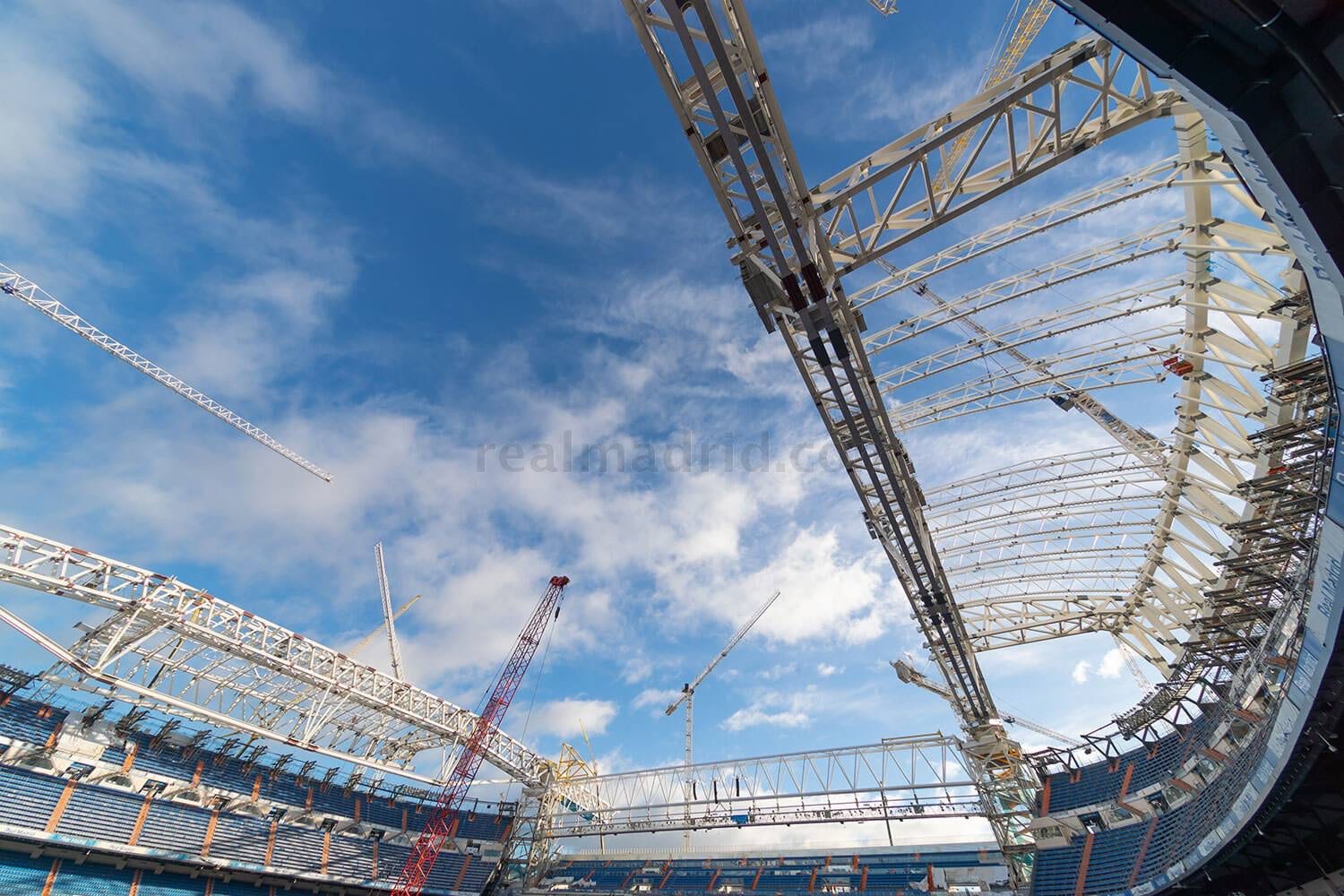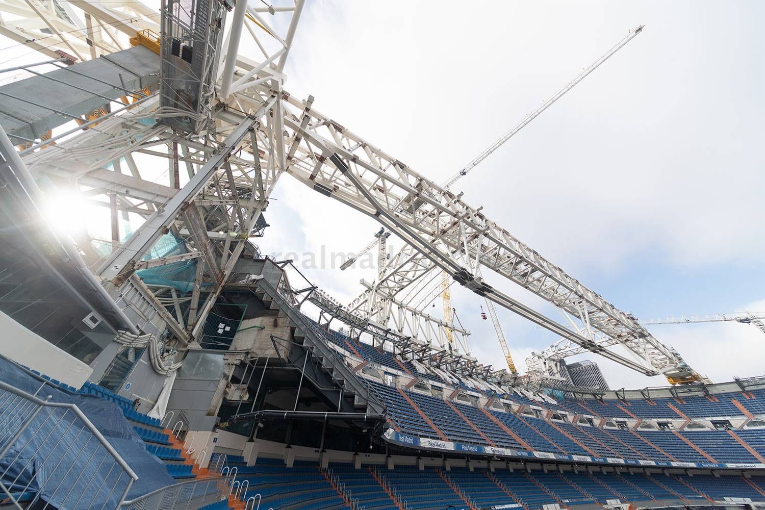 En estas nuevas imágenes de detalle podemos ver el avance de la nueva cubierta la cual está en un grado de terminación de estructura muy avanzado. Recordemos que bajo la nueva cubierta irá uno de los mayores videomarcadores del mundo.