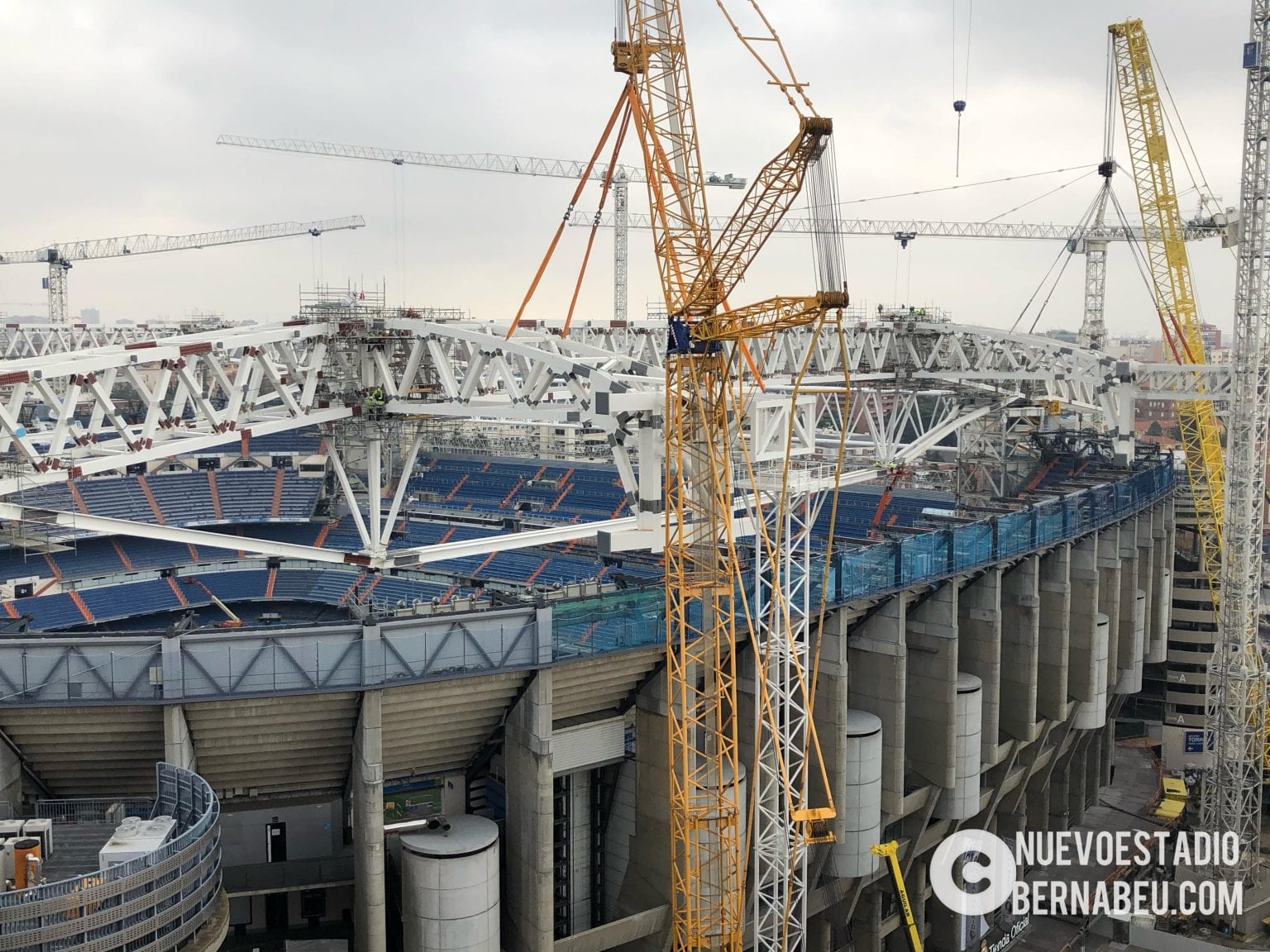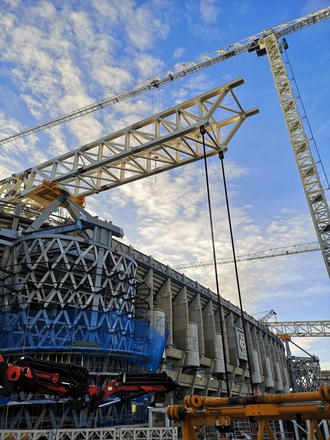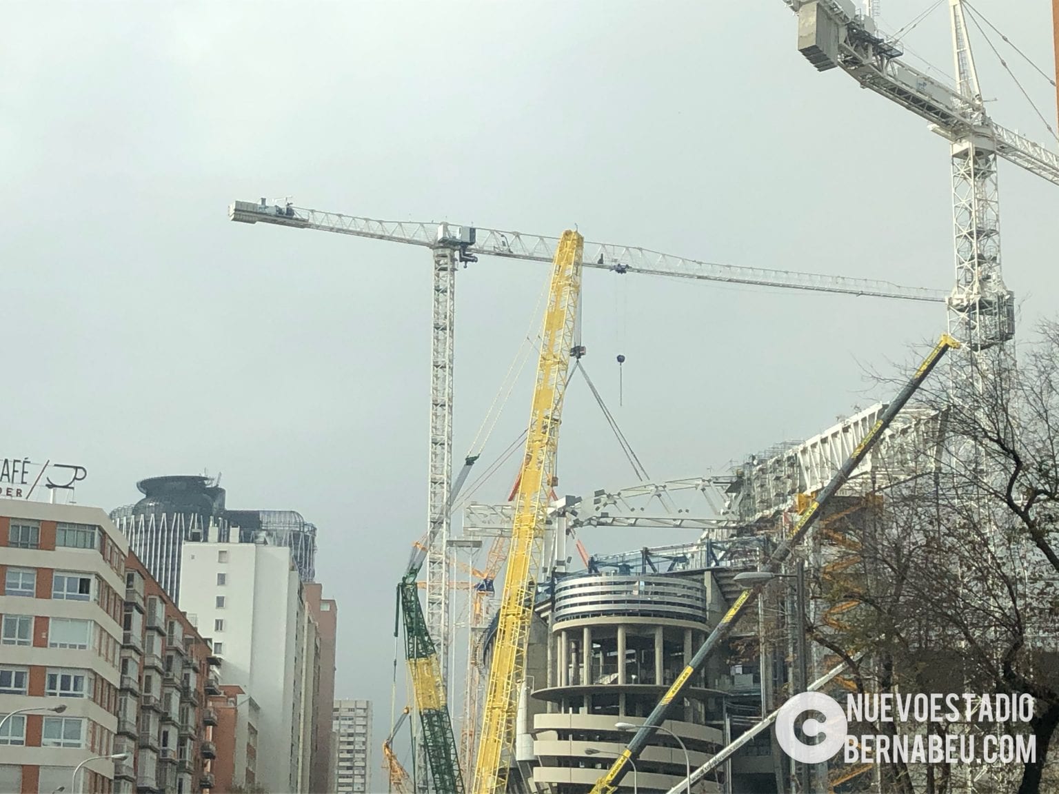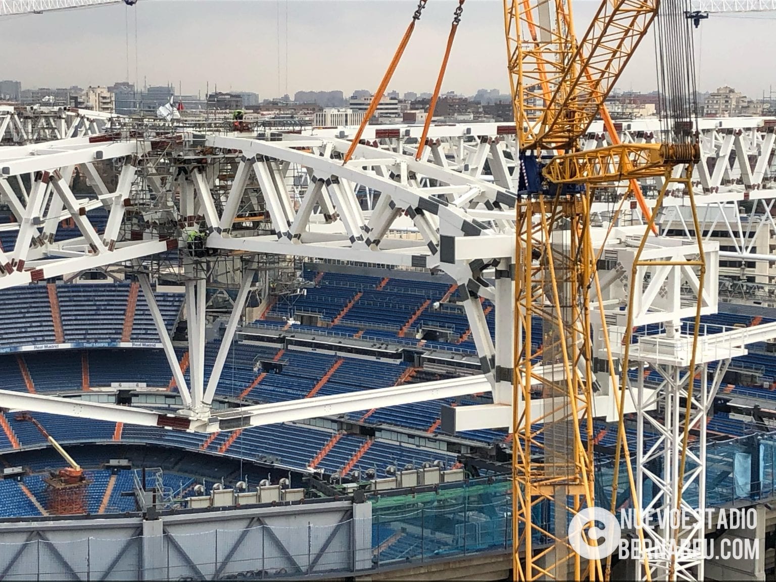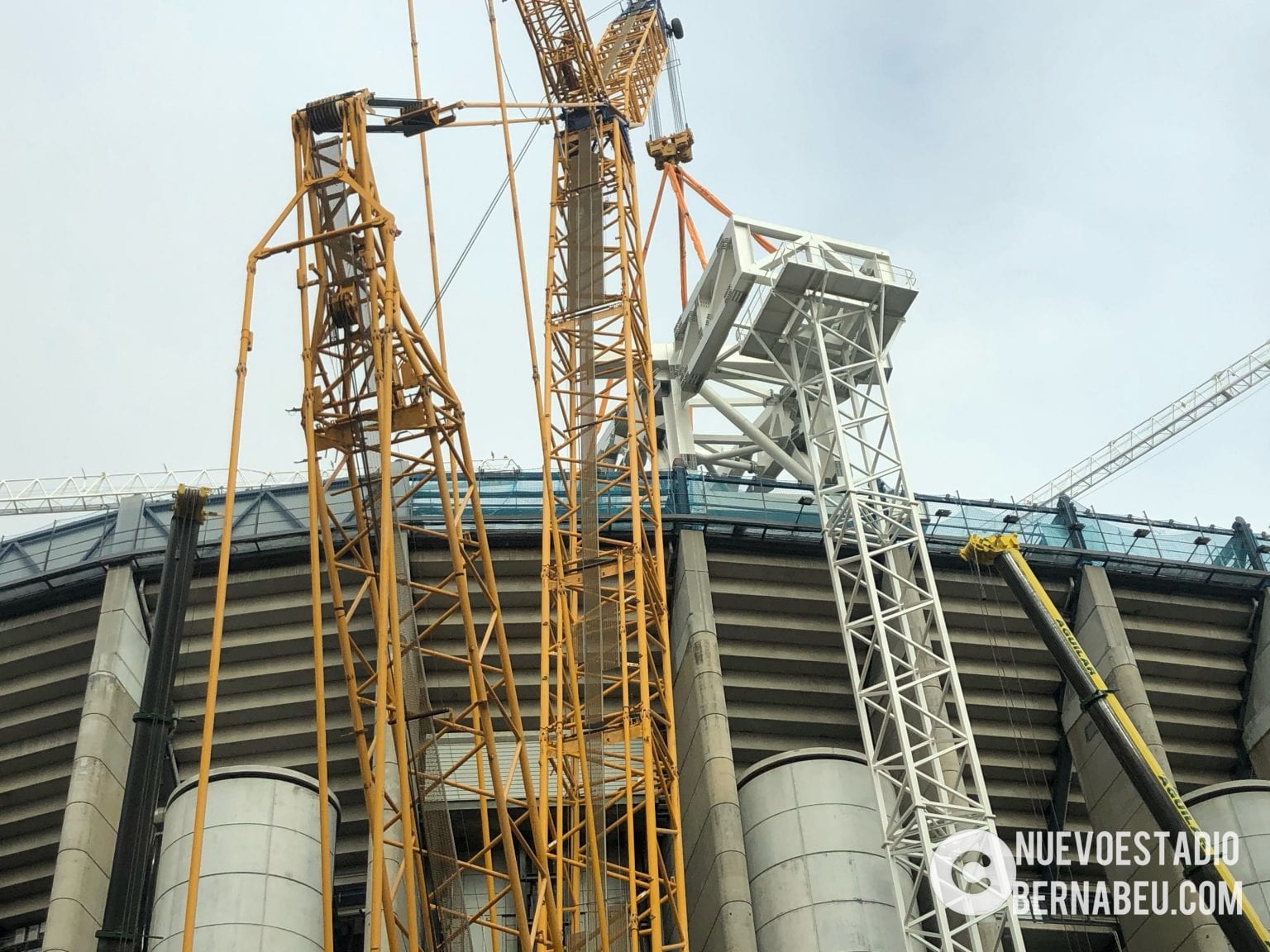 Última semana intensísima en el Real Madrid y el Santiago Bernabéu. La semana fantástica en lo deportivo con victorias en Sevilla, Borussia y Atlético se refrendó durante el fin de semana con el izado y acople, al igual que en la extensión C y la extensión D, de las mastodónticas extensiones A y B que había tenido que aplazarse desde el jueves por los intensos vientos que se registraron en el Bernabéu y que demoraron la operación hasta ayer domingo.