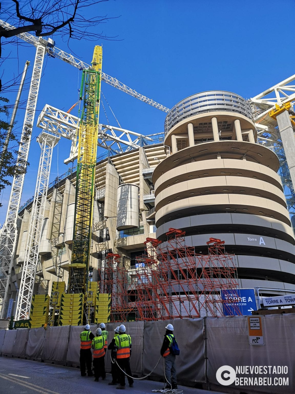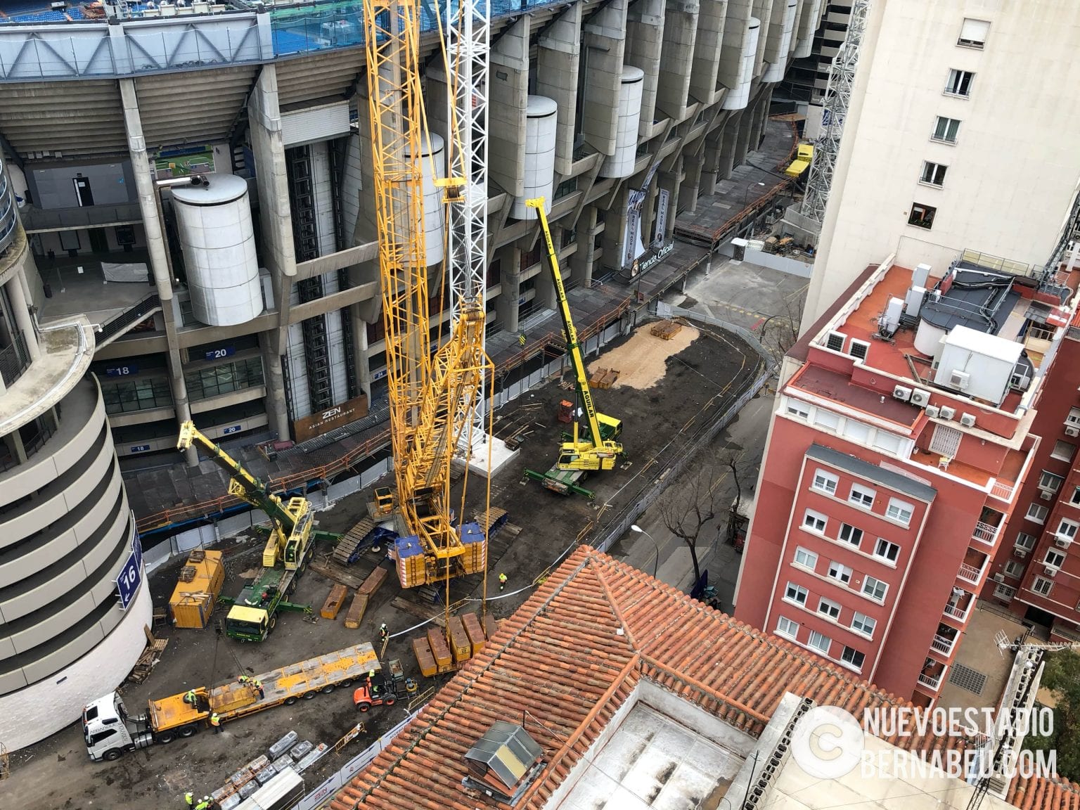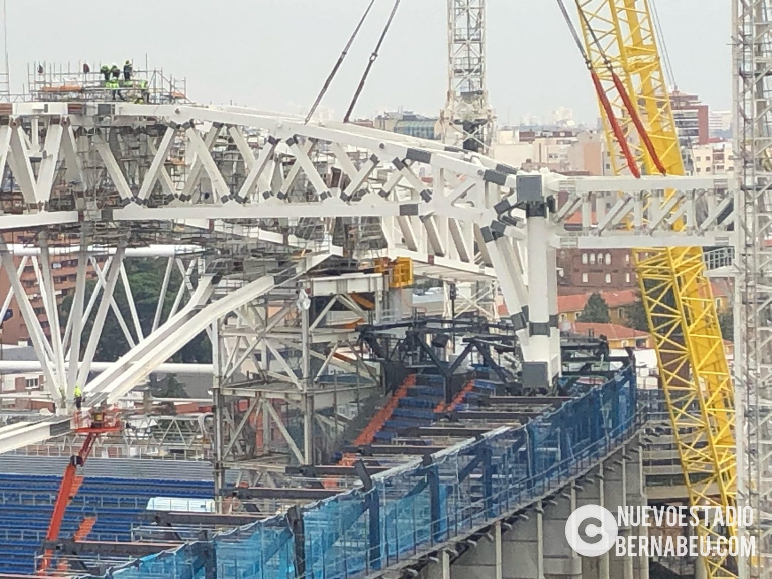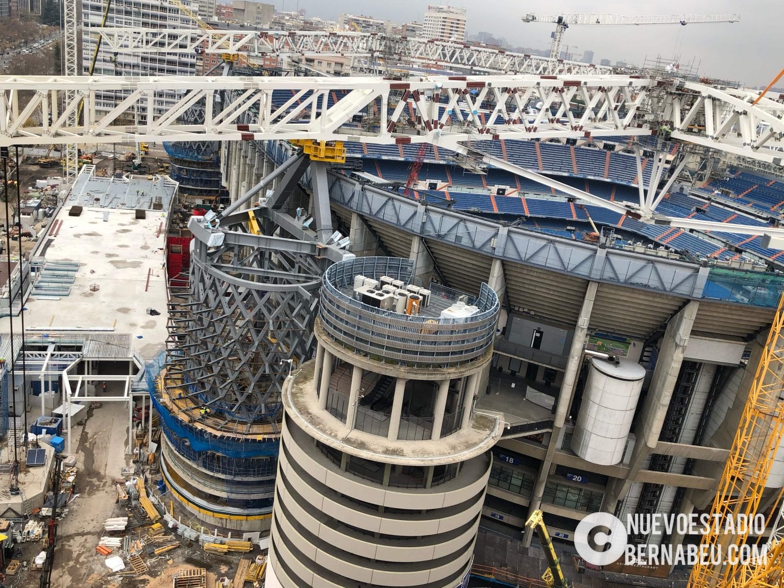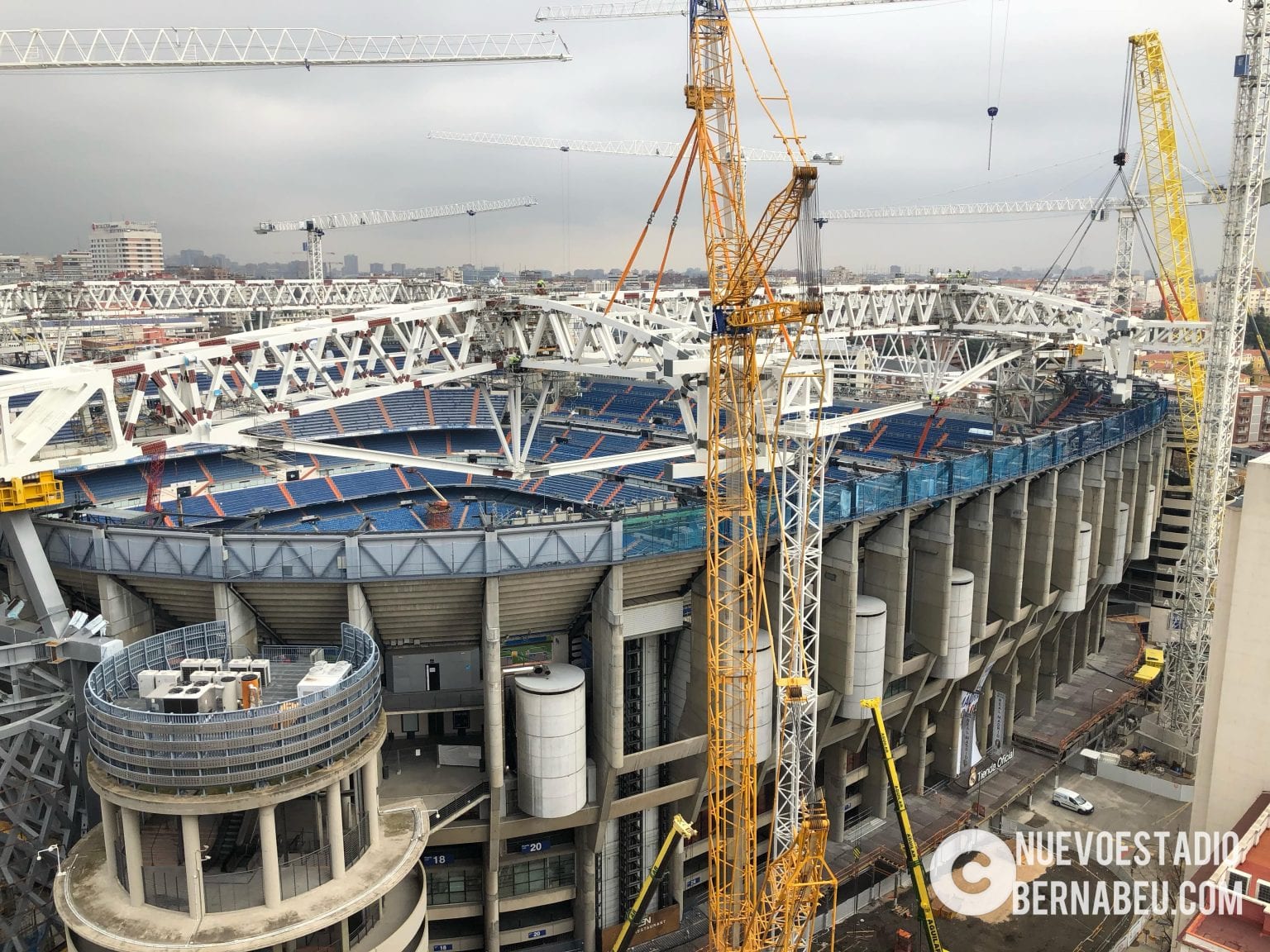 Última semana intensísima en el Real Madrid y el Santiago Bernabéu. La semana fantástica en lo deportivo con victorias en Sevilla, Borussia y Atlético se refrendó durante el fin de semana con el izado y acople, al igual que en la extensión C y la extensión D, de las mastodónticas extensiones A y B que había tenido que aplazarse desde el jueves por los intensos vientos que se registraron en el Bernabéu y que demoraron la operación hasta ayer domingo.
