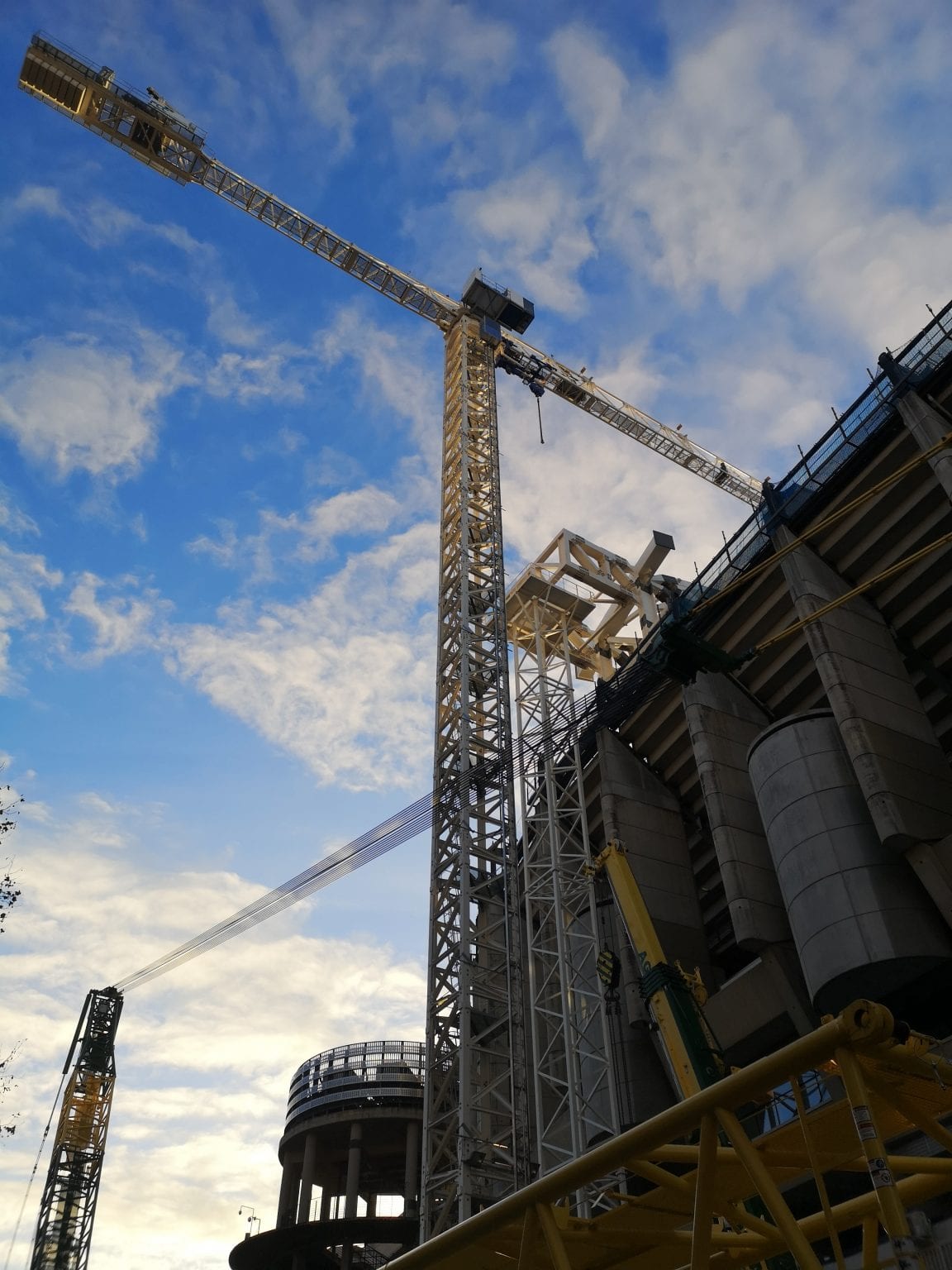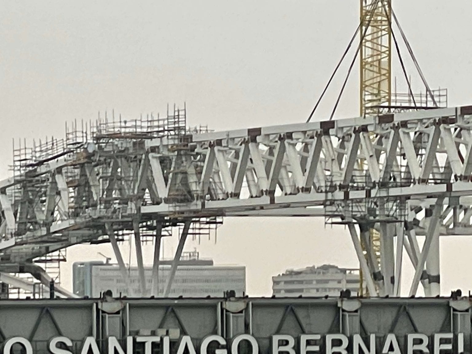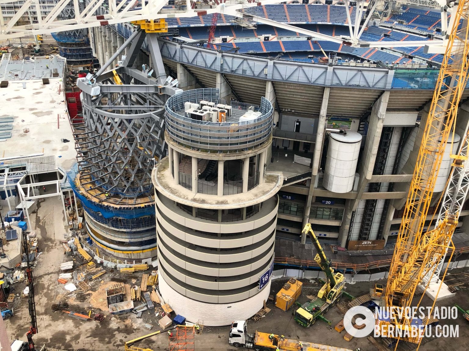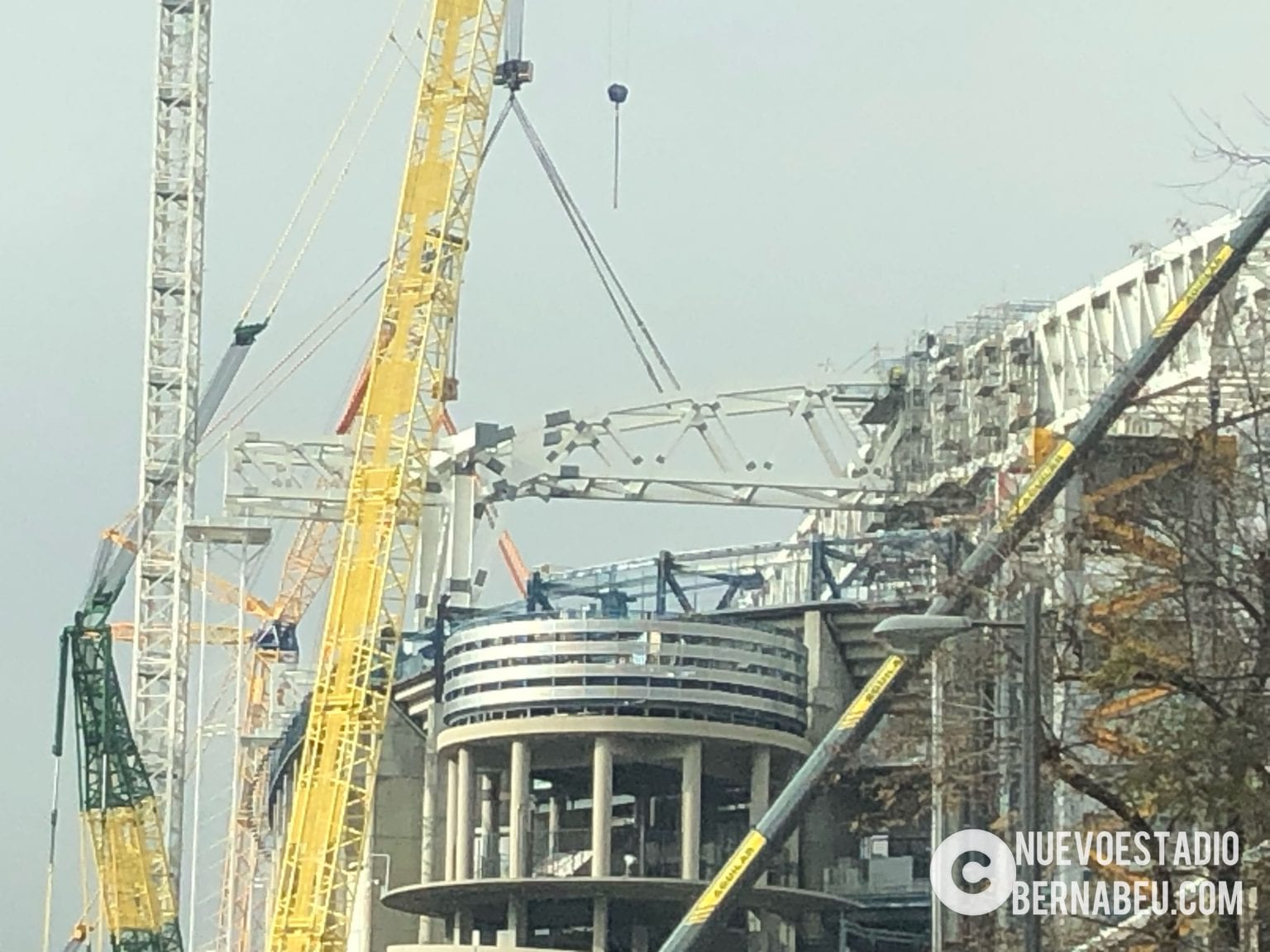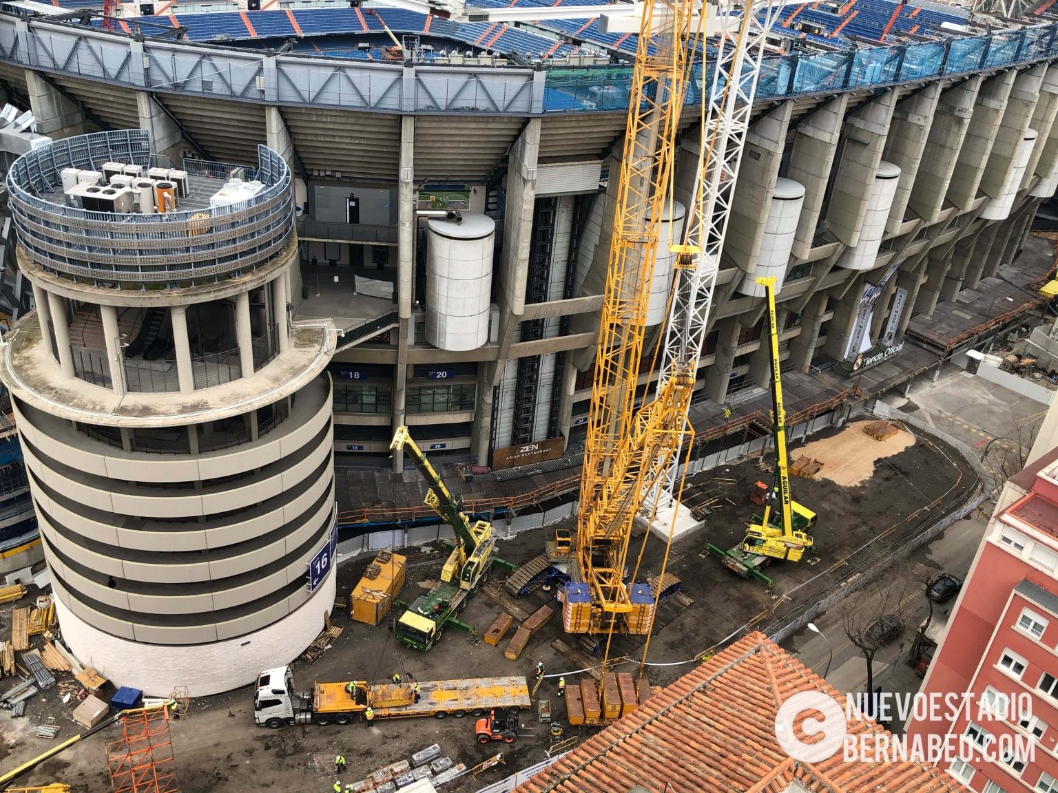 Última semana intensísima en el Real Madrid y el Santiago Bernabéu. La semana fantástica en lo deportivo con victorias en Sevilla, Borussia y Atlético se refrendó durante el fin de semana con el izado y acople, al igual que en la extensión C y la extensión D, de las mastodónticas extensiones A y B que había tenido que aplazarse desde el jueves por los intensos vientos que se registraron en el Bernabéu y que demoraron la operación hasta ayer domingo.