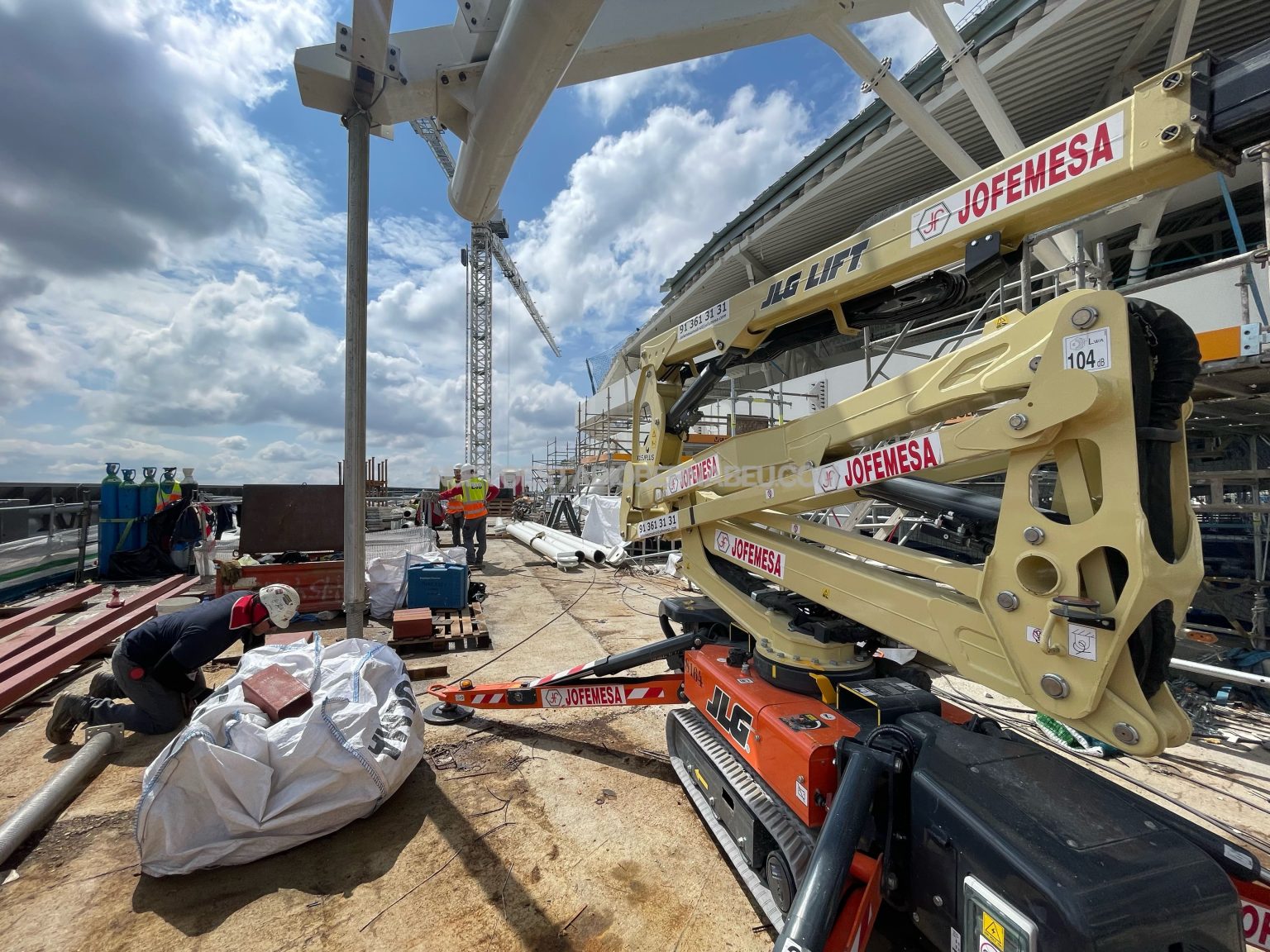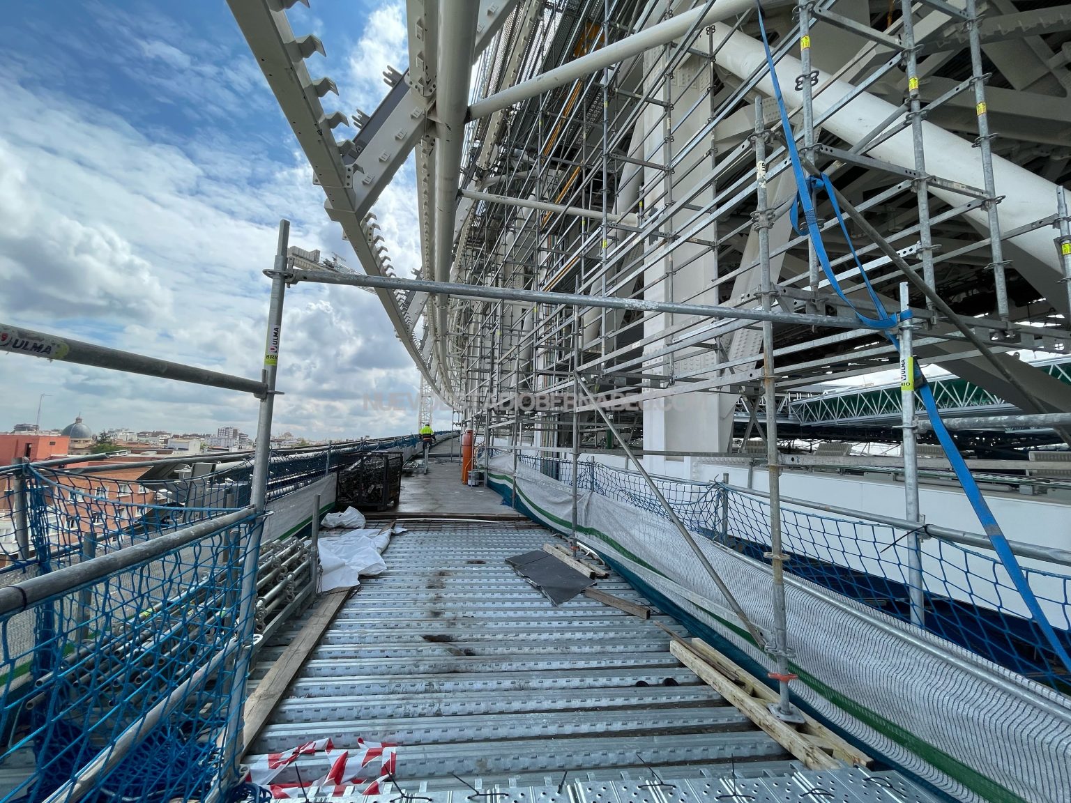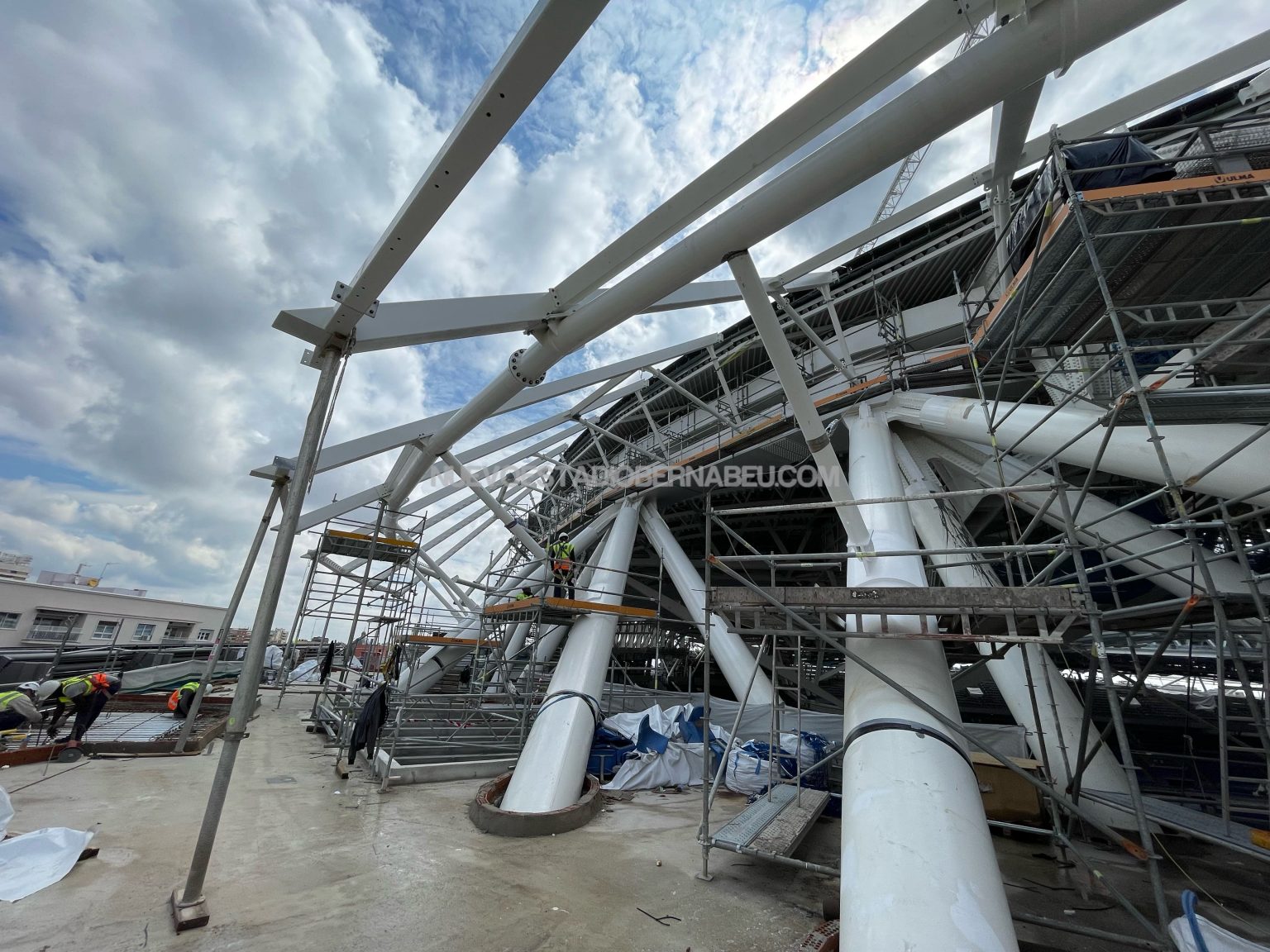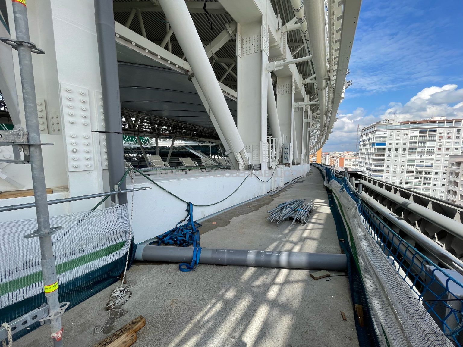 Uno de los aspectos más destacados de la transformación del nuevo Bernabéu es el impresionante Skywalk. La terraza perimetral sigue quemando etapas y en cada visita a las obras, se puede apreciar cómo va tomando forma día a día. El equipo de construcción ha estado trabajando para instalar la visera de lamas, un elemento de la estructura de cubierta que no solo agrega un toque estético impresionante, sino que también cumple la función de proporcionar sombra y protección contra los elementos.
