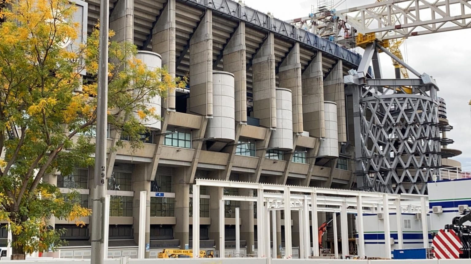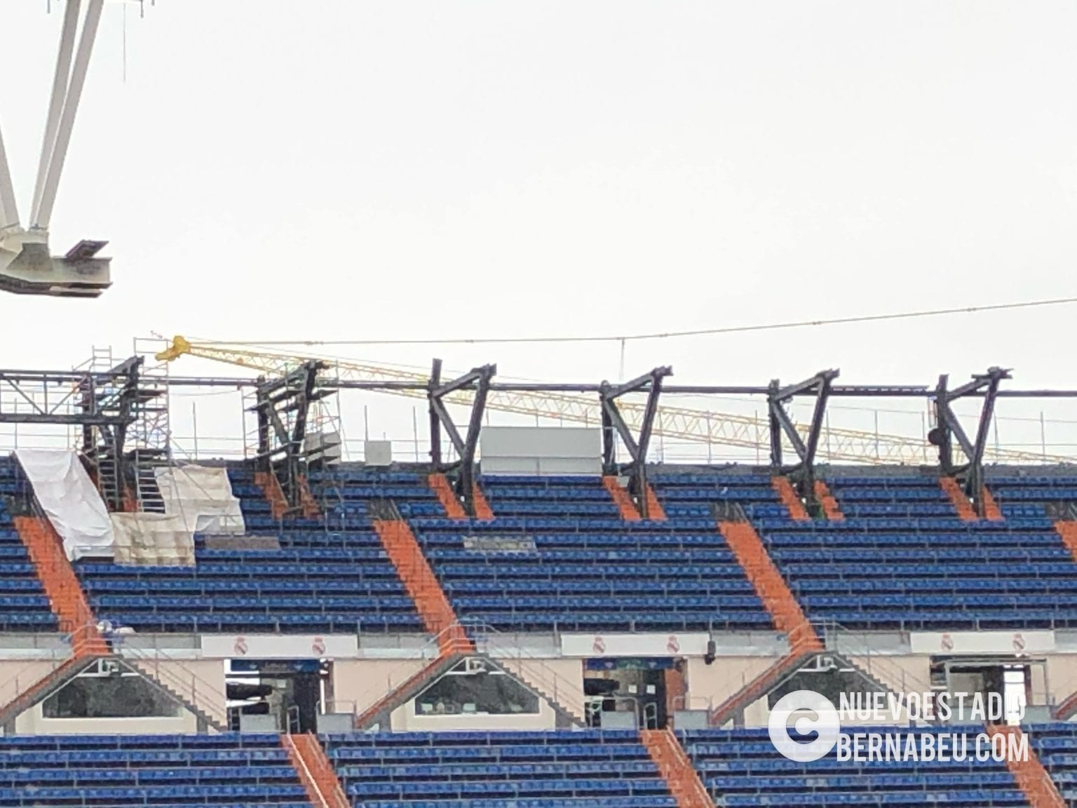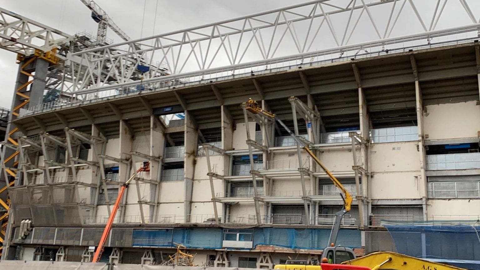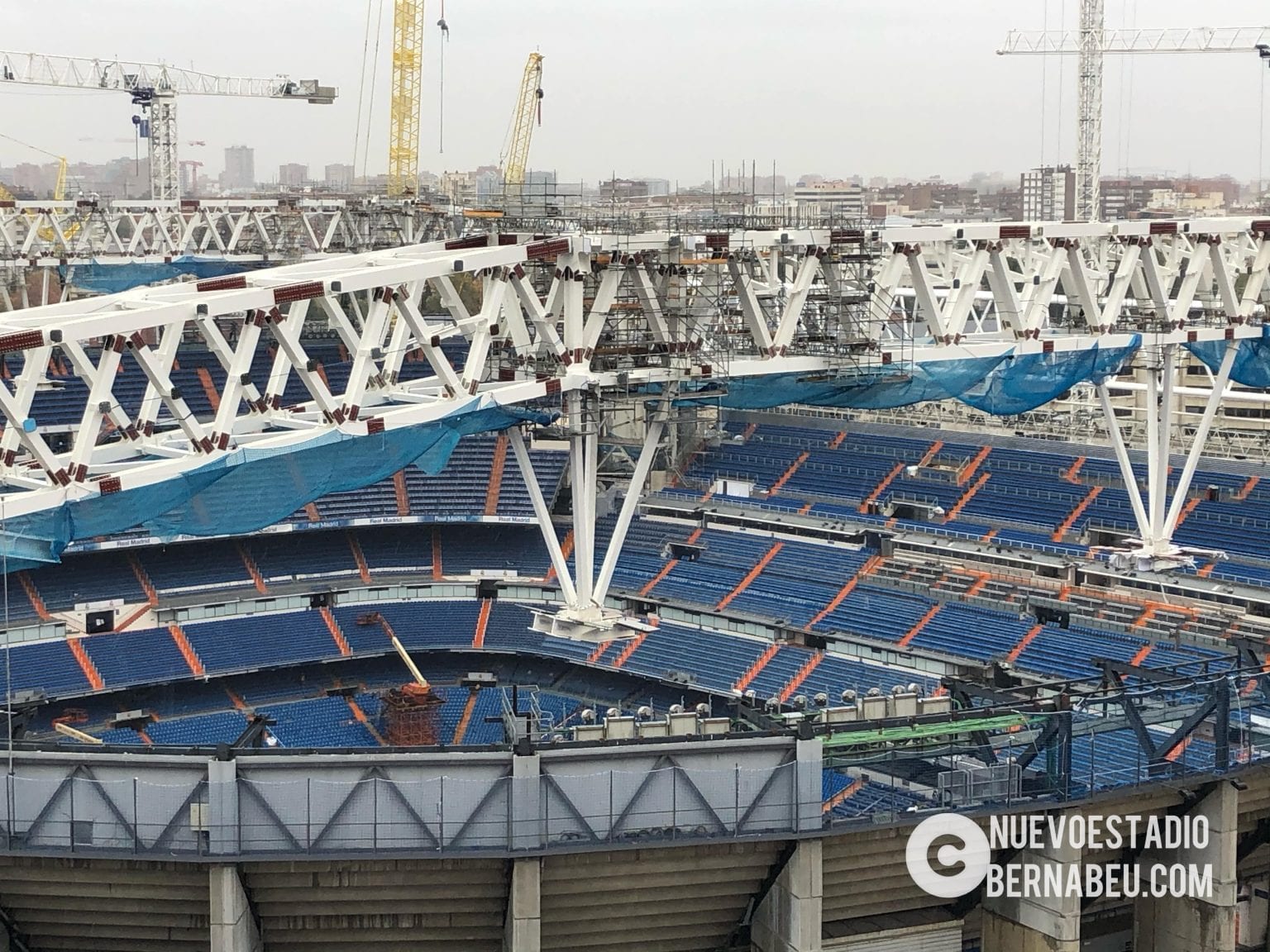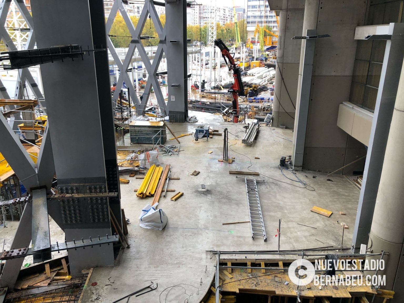 Semana muy lluviosa y ventosa en Madrid que no ha sido óbice para que la continuidad de las obras del nuevo Bernabéu continúe con paso firme y sin mayores contratiempos.