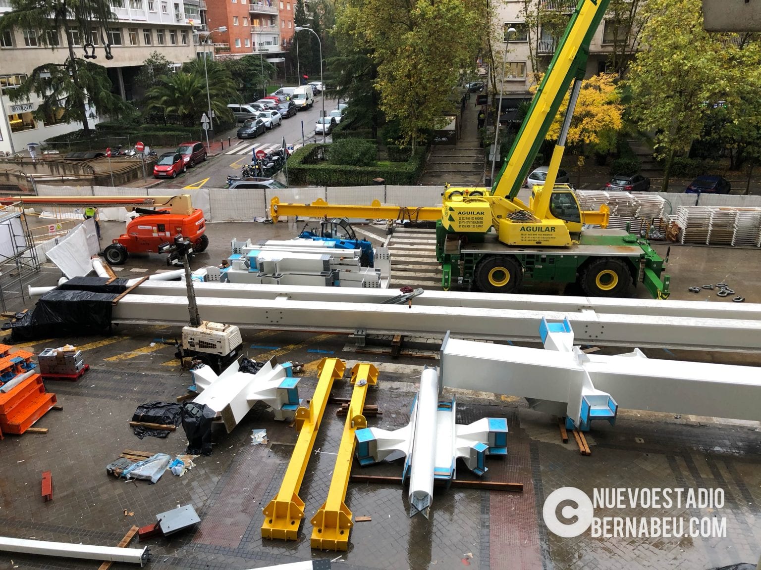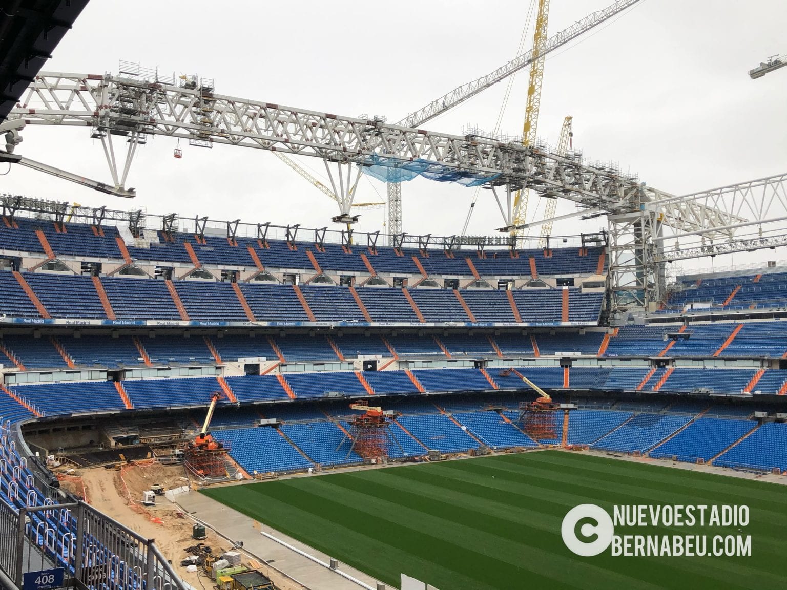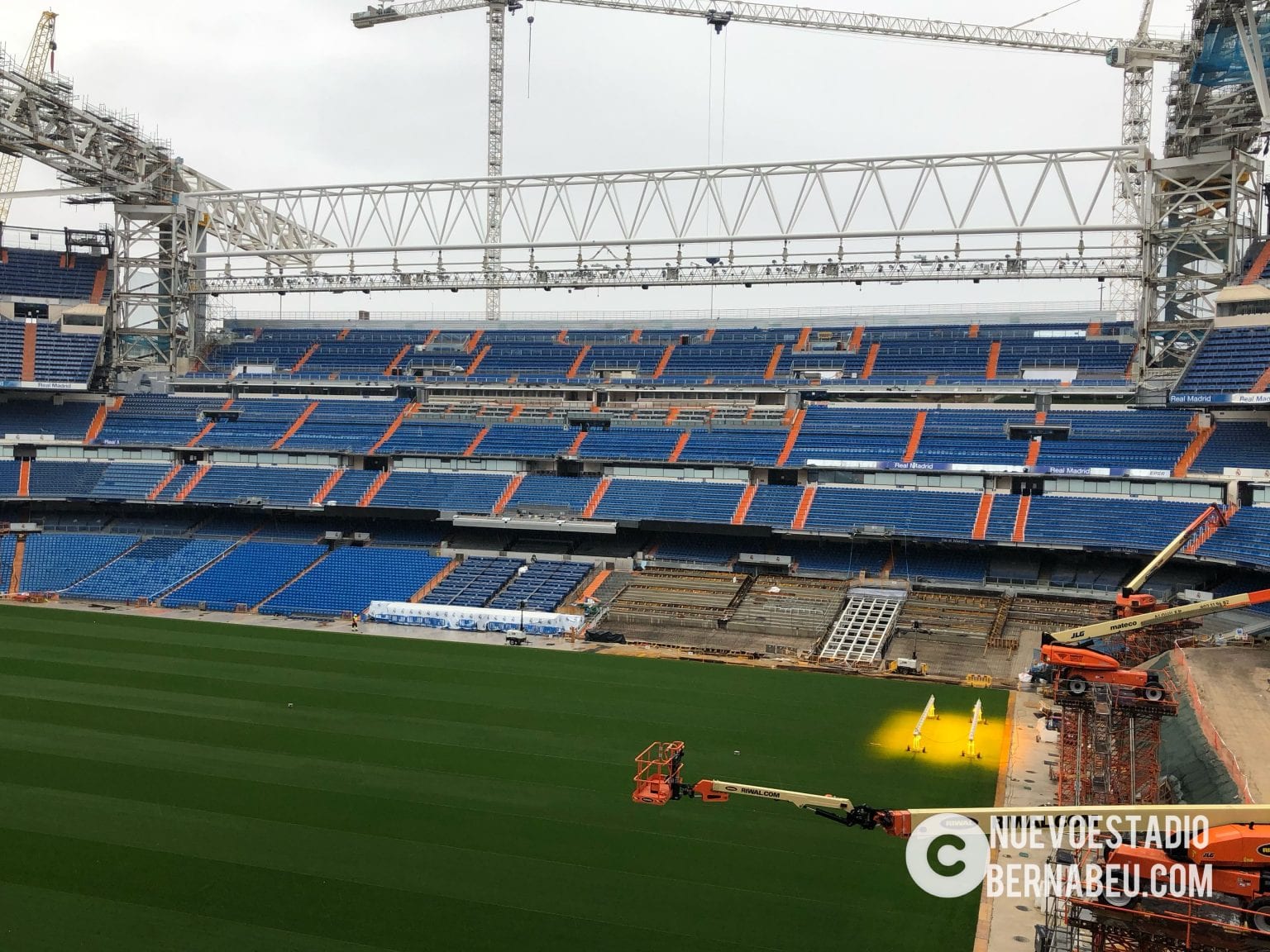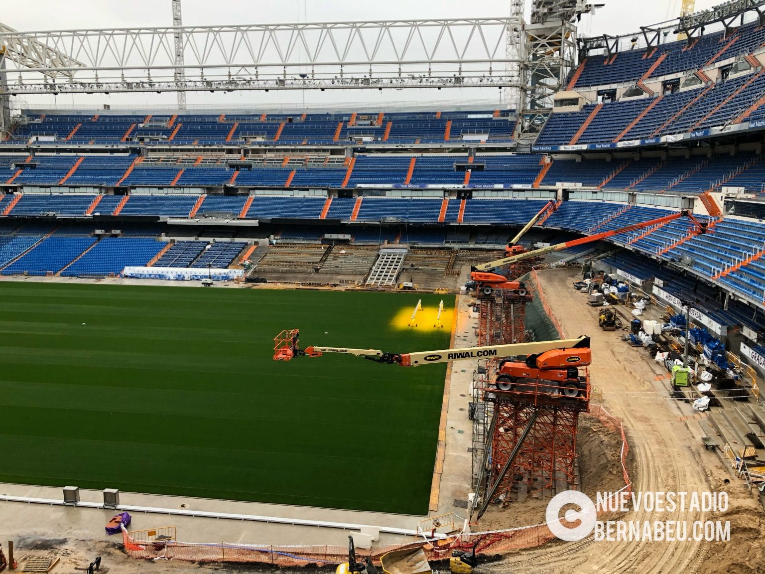 Semana muy lluviosa y ventosa en Madrid que no ha sido óbice para que la continuidad de las obras del nuevo Bernabéu continúe con paso firme y sin mayores contratiempos.