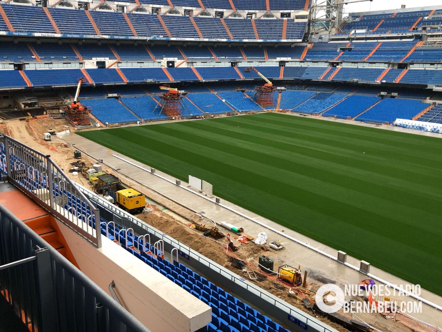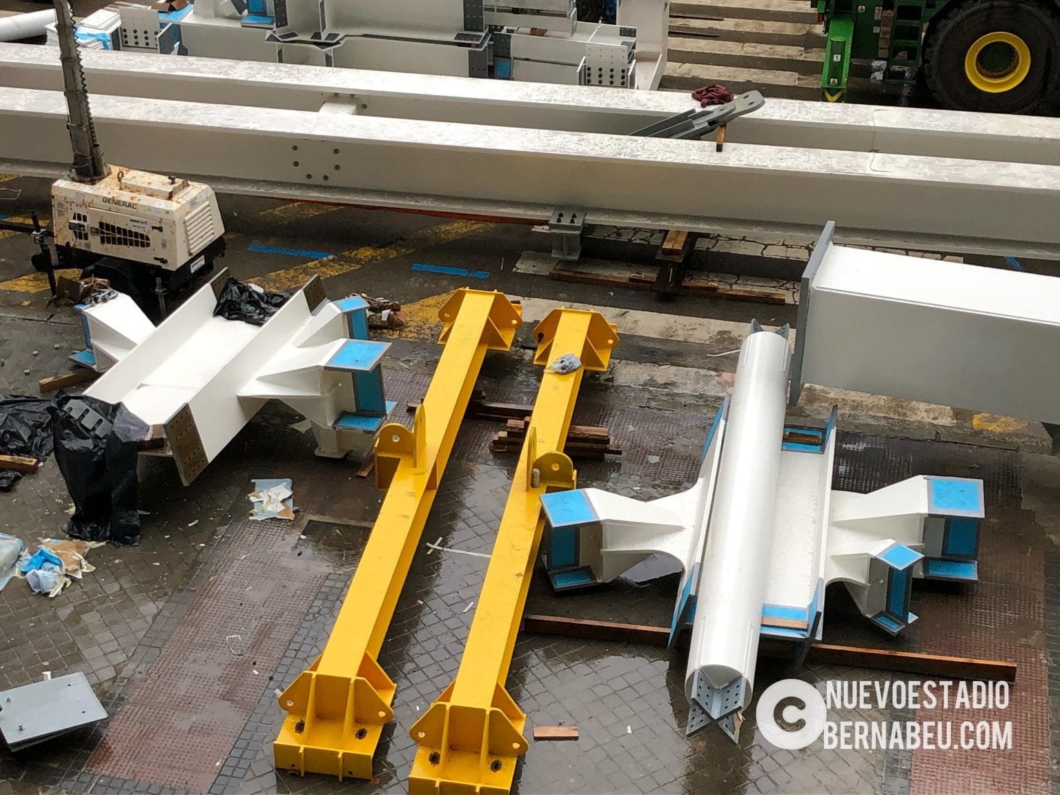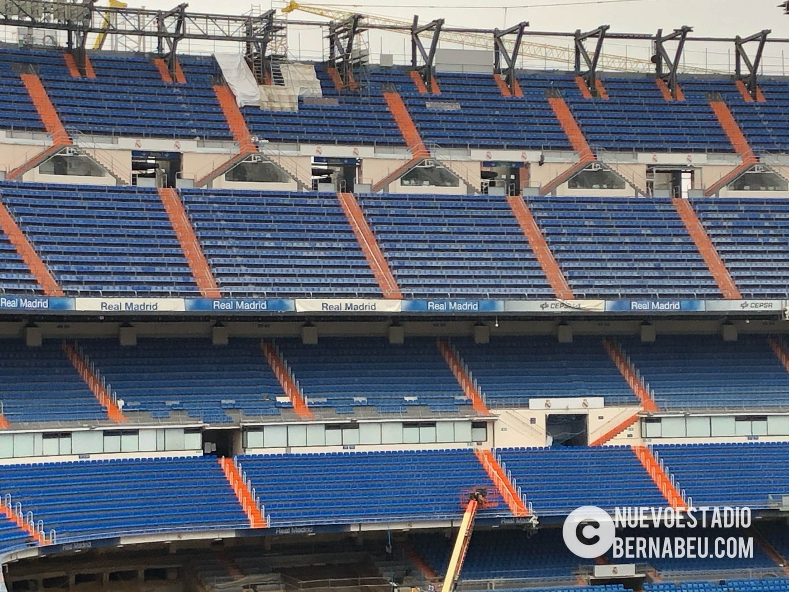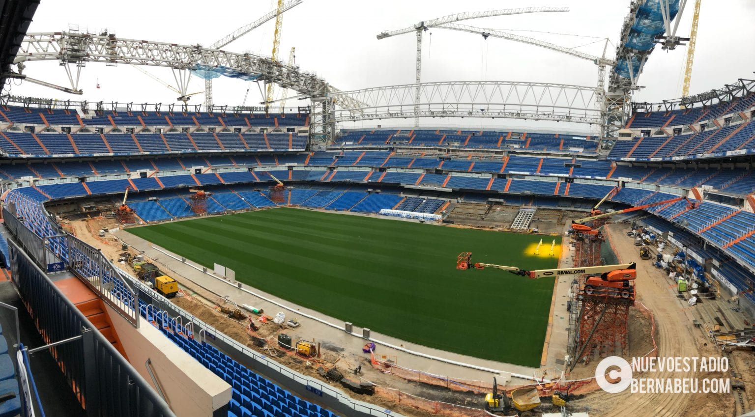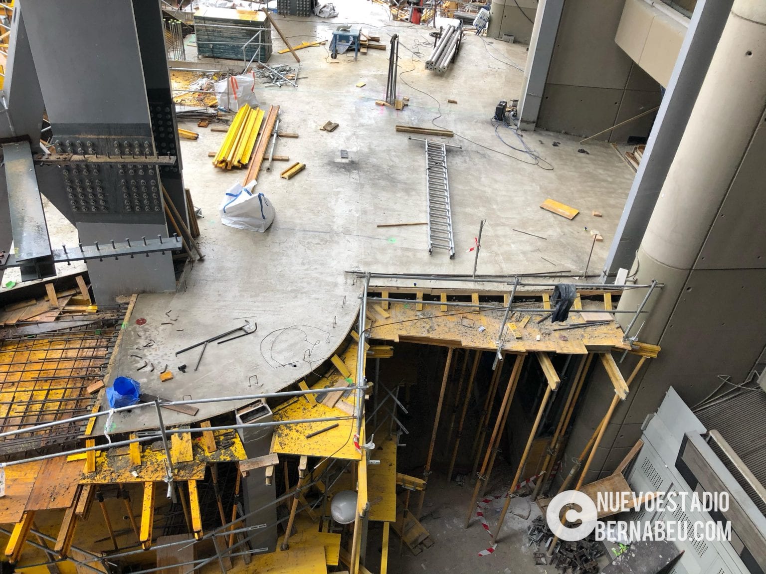 Semana muy lluviosa y ventosa en Madrid que no ha sido óbice para que la continuidad de las obras del nuevo Bernabéu continúe con paso firme y sin mayores contratiempos.