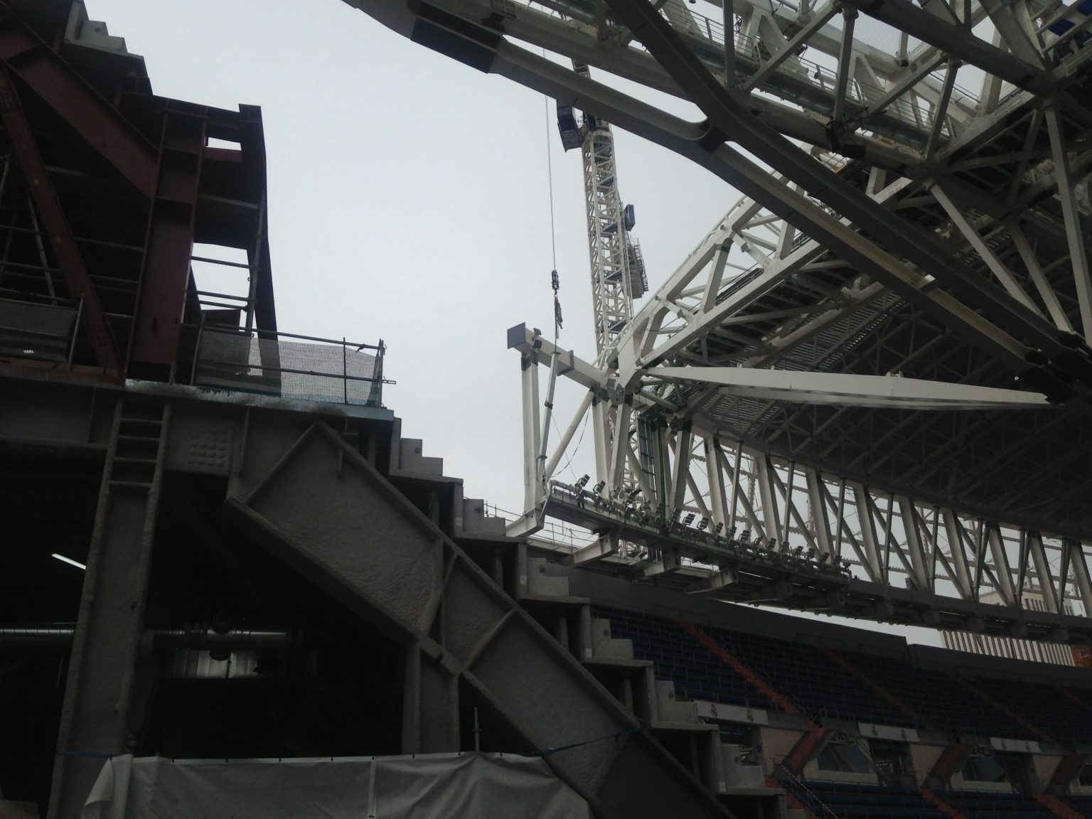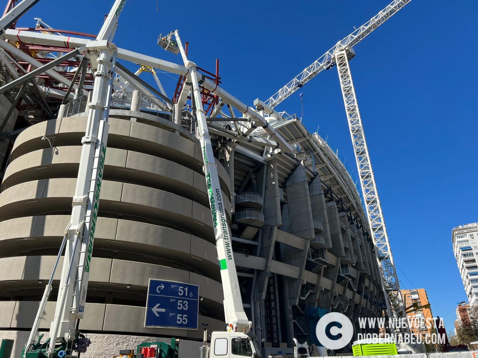 La estructura de cubierta entre en el último tercio de ejecución y aglutina 66 de las 301 líneas de actuación que se simultanean en el nuevo Bernabéu durante esta semana.