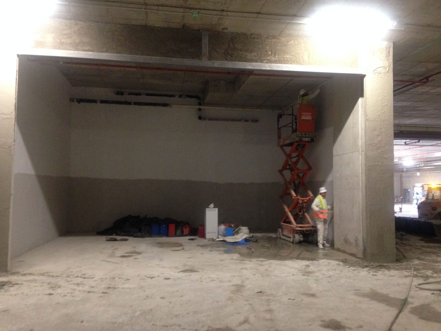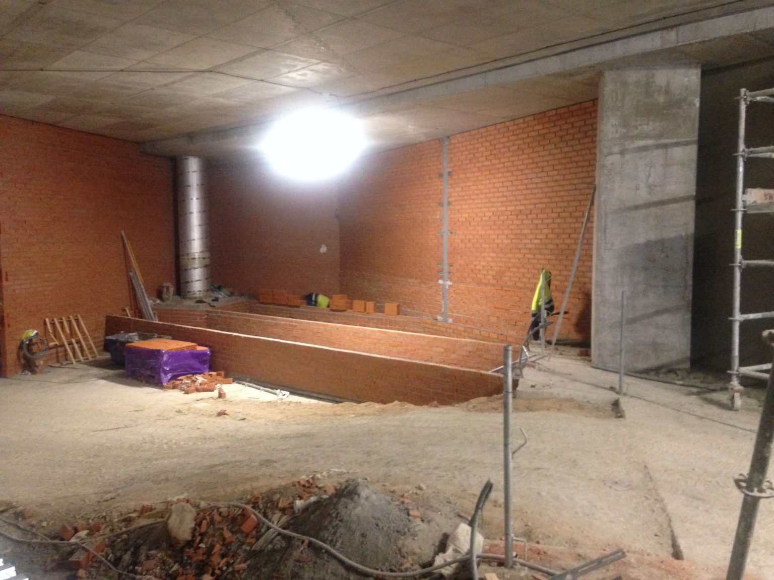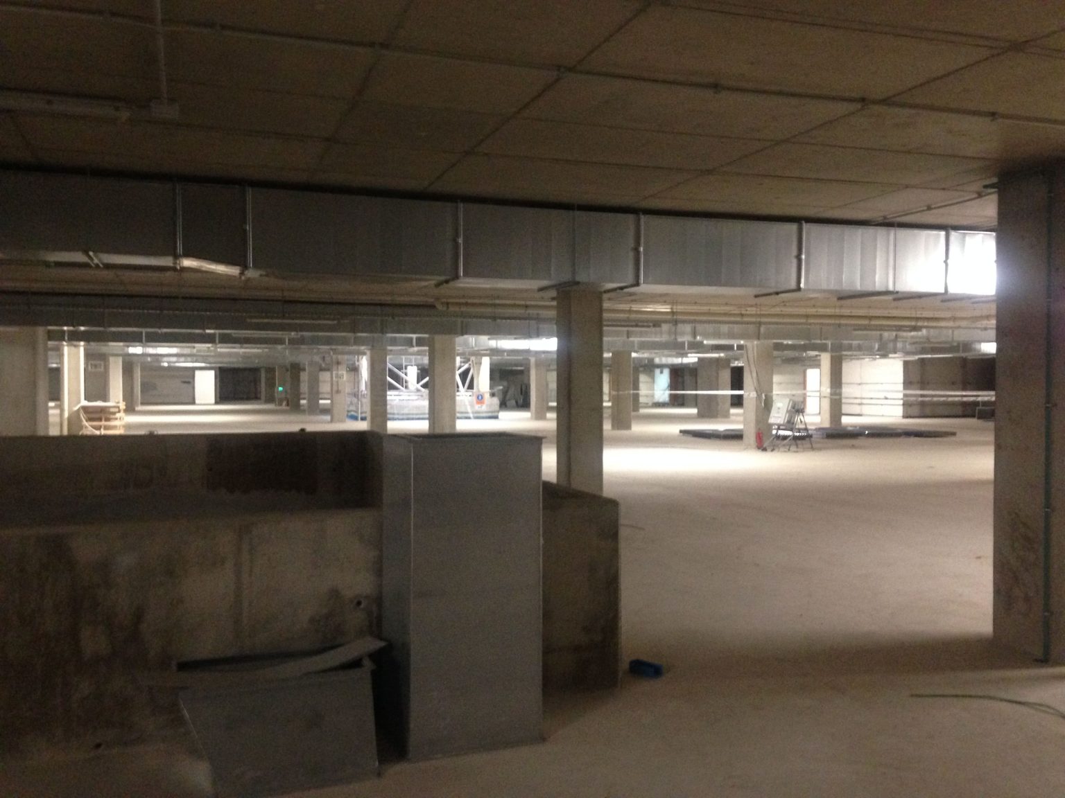 A dia de hoy se trabaja en el muro de ventilación de la salida del túnel carros, terminación de instalaciones de climatización, fontaneria, PCI y Electricidad en los sótanos 2, 3, 4 y 5. También se trabaja en las instalaciones MEP y MEP tecnológicas, ejecución e instalación de montacargas, colocación perfiles verticales y perfiles en los huecos de los ascensores, replanteo de fábrica de ladrillo en la fase 3 del parking a la altura de la antigua T4 y colocación generalizada de pladur, chapa de ocultación de pantallas y colocación barandillas en escaleras