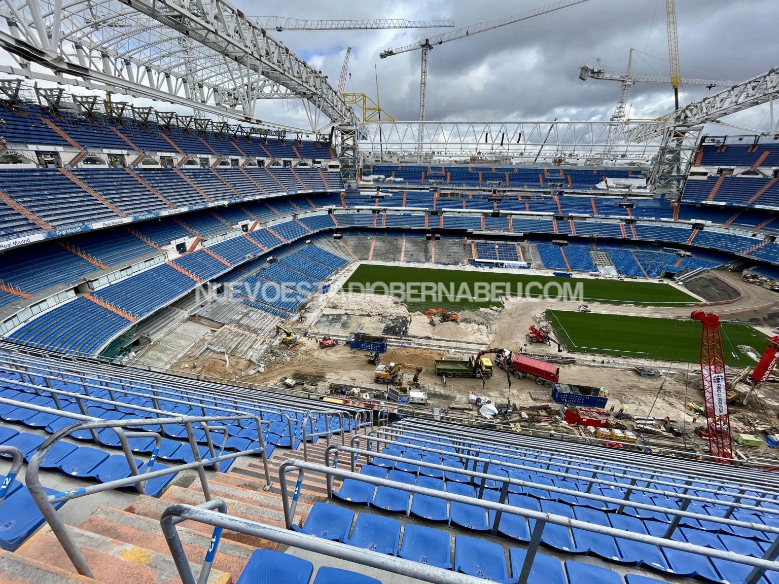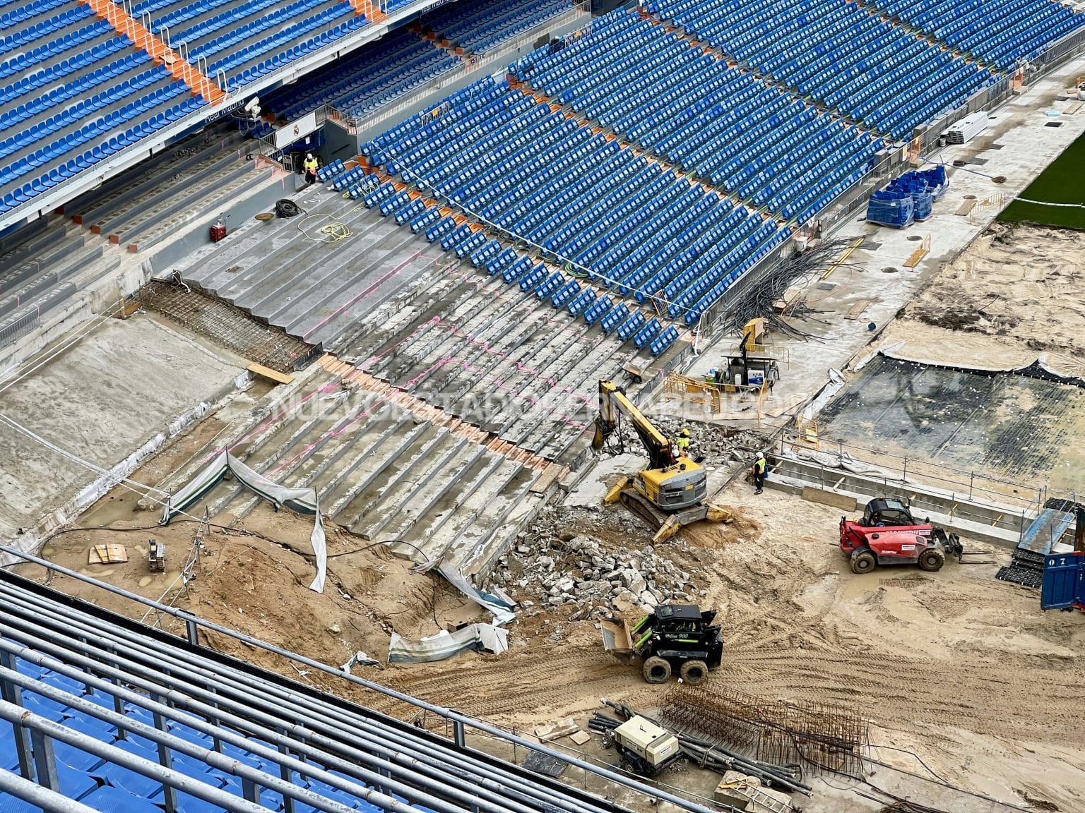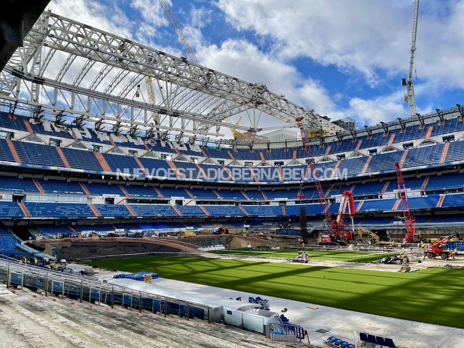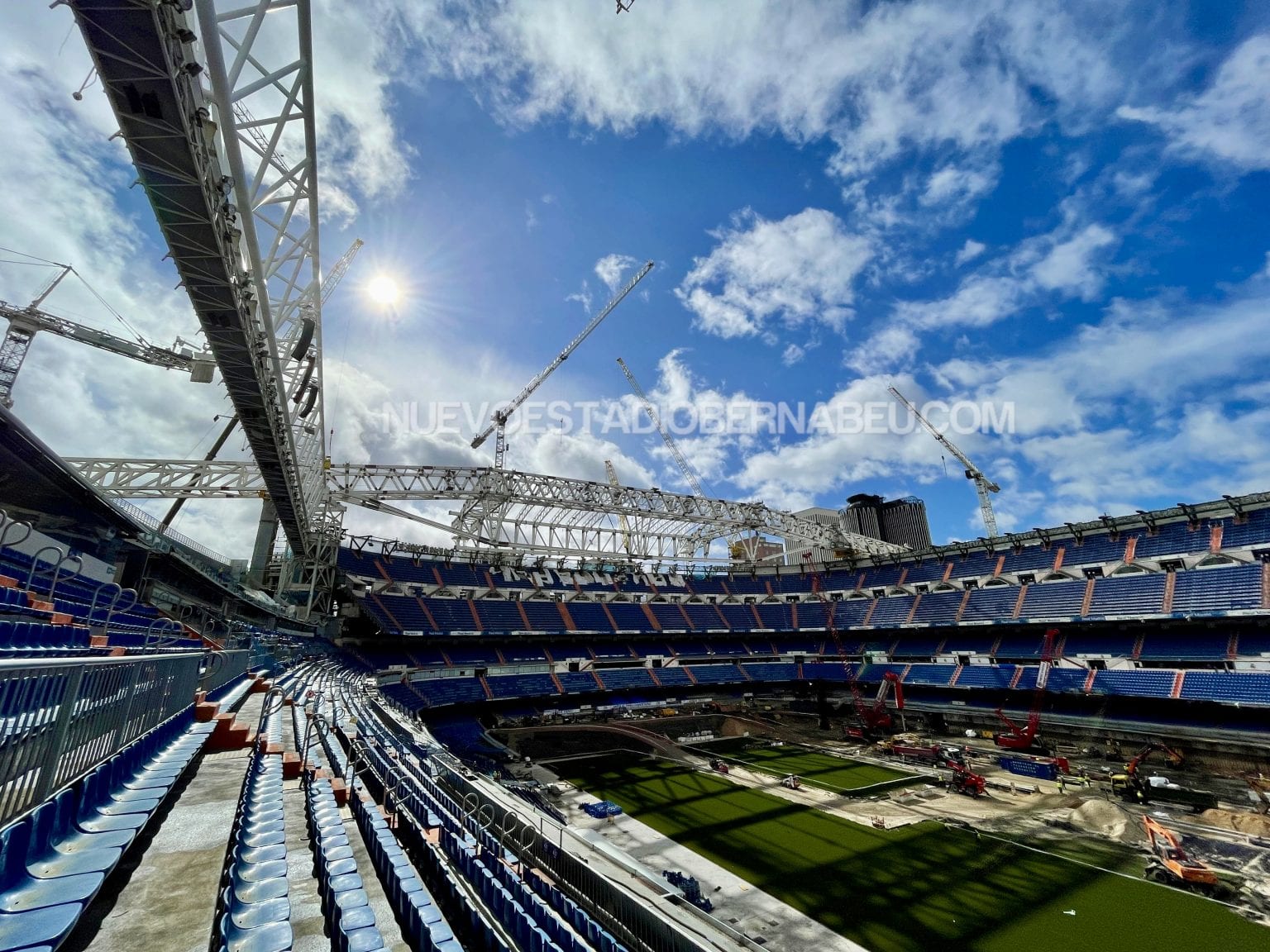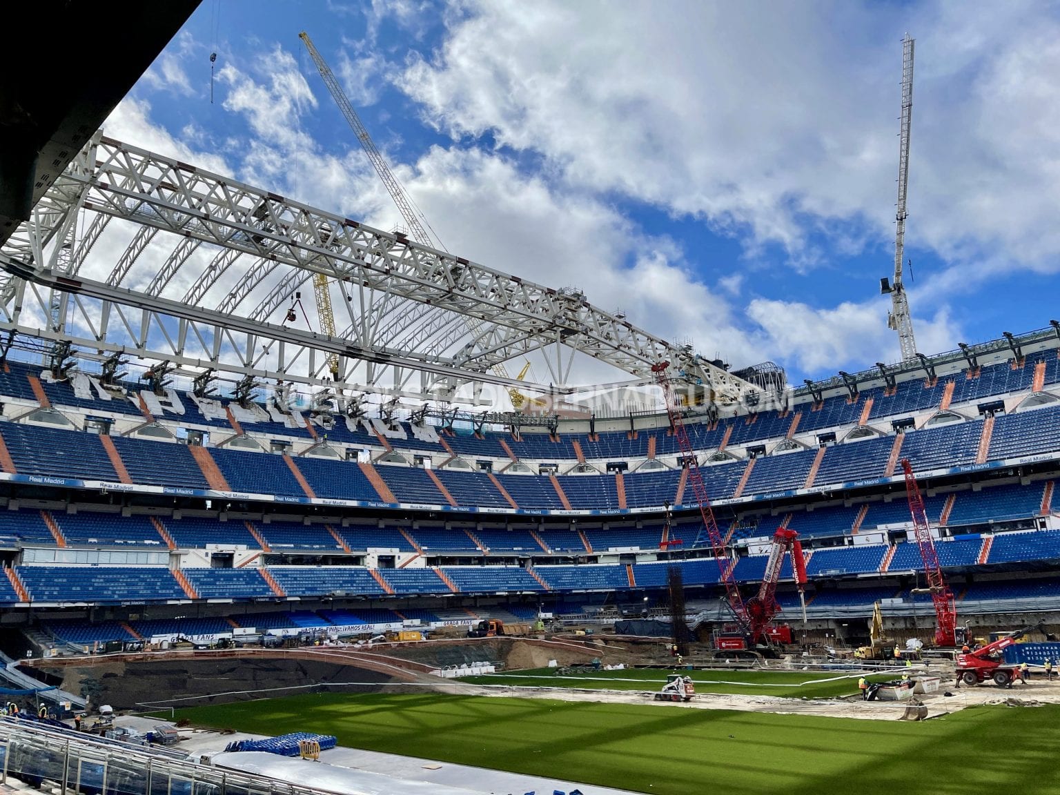 A ras de campo todo es mastodóntico. Las imágenes no hacen justicia a la sensación de muro interminable que provoca la lejanía del terreno de juego con la cubierta. Es algo espectacular que no creemos pueda darse en muchos estadios del mundo. Sólo la estructura de cubierta impresiona, y mucho. Una vez terminada la remodelación con la cubierta cerrada y el videomarcador marcando todo el contorno perimetral de la cubierta retráctil harán del nuevo Bernabéu un espectáculo en sí mismo.