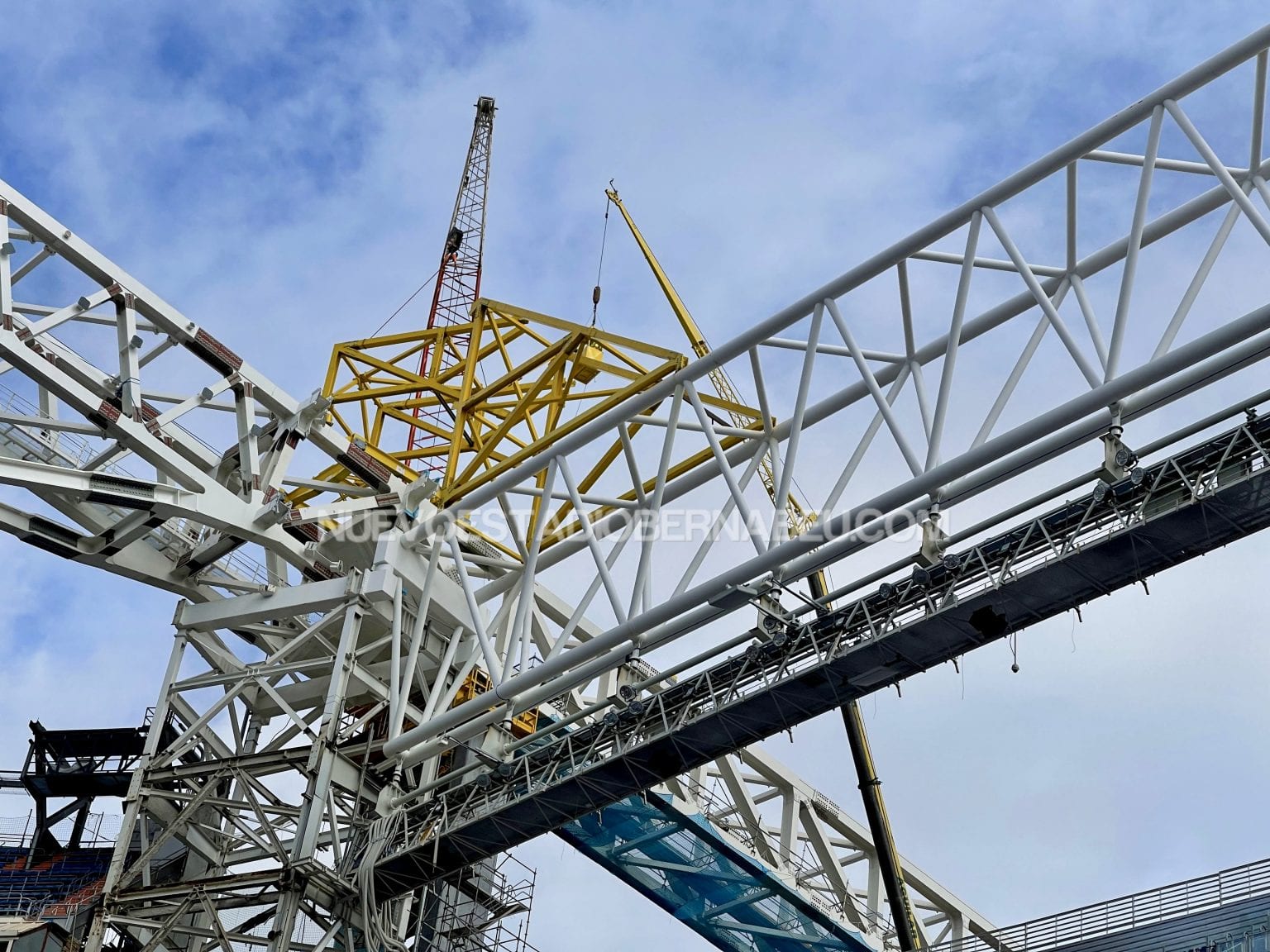 En cuanto a las actuaciones en sí, se avanza en la cubierta sur y se están retirando los apoyos de la cubierta norte, además en el terrreno de juego se ha acondicionado un circuito circular con dos rampas para la entrada y salida de camiones.