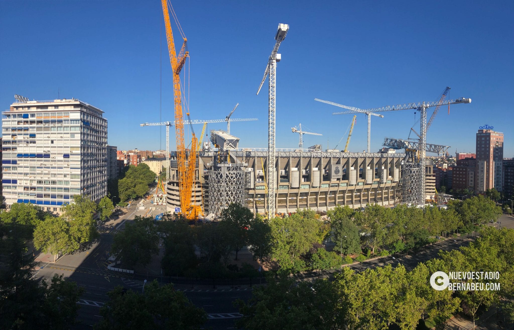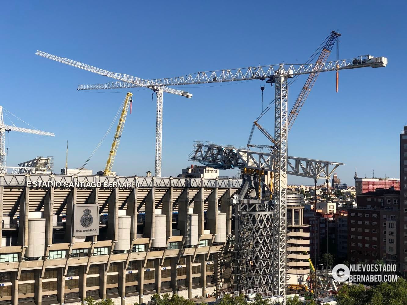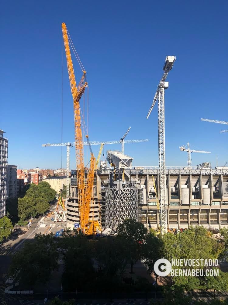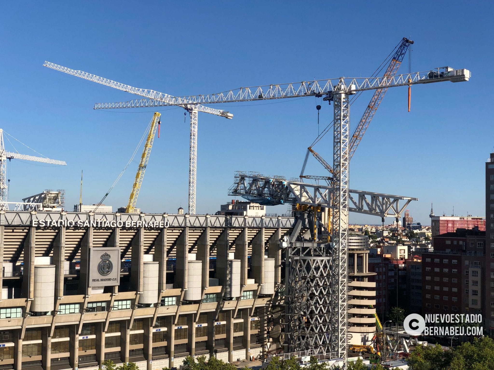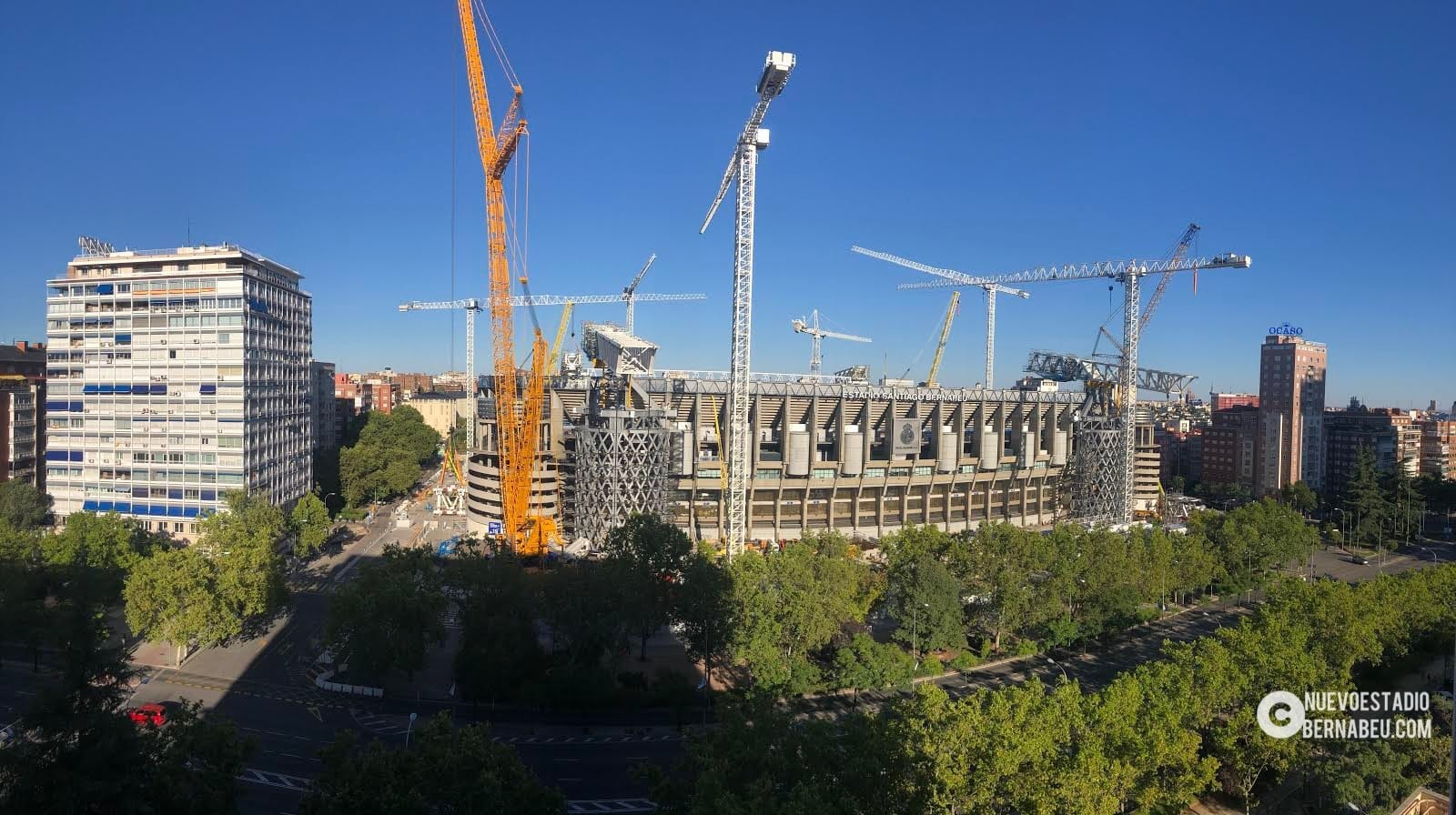 Y se nota, vaya si se nota. El avance en sentido oeste-este de las cerchas principales prosigue a buen ritmo con el anclaje de no menos de una decena de dovelas que se han ido sumando en la cercha norte y en la cercha sur que sustentará la cubierta del nuevo estadio Santiago Bernabéu.