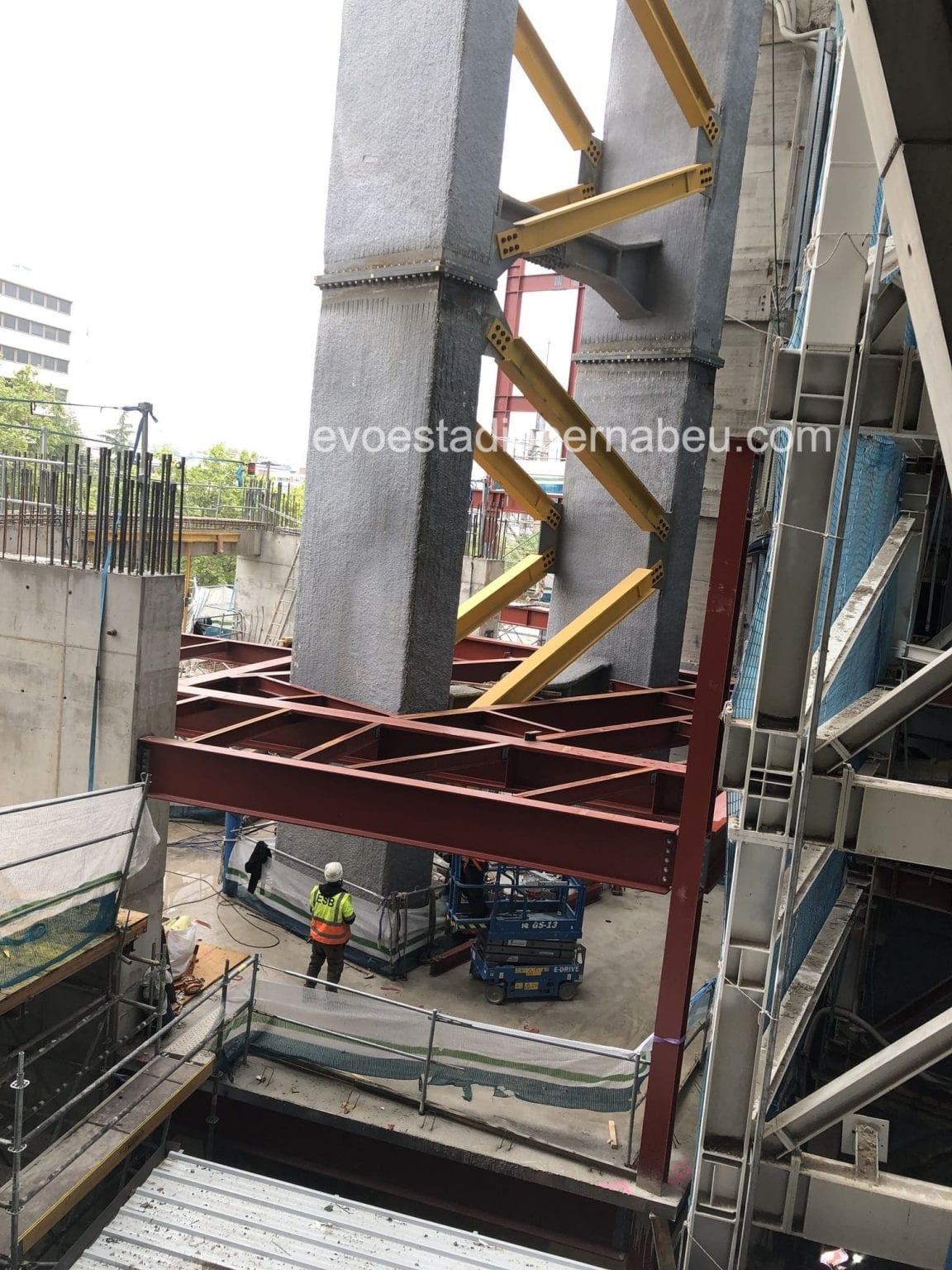 Como podéis ver en las imágenes se trabaja de manera intensa en la construcción y por consiguiente habilitación de espacios. Los torreones tendrán una función vital de acceso y evacuación al estadio y forman parte de la icónica estructura del Bernabéu de siempre.