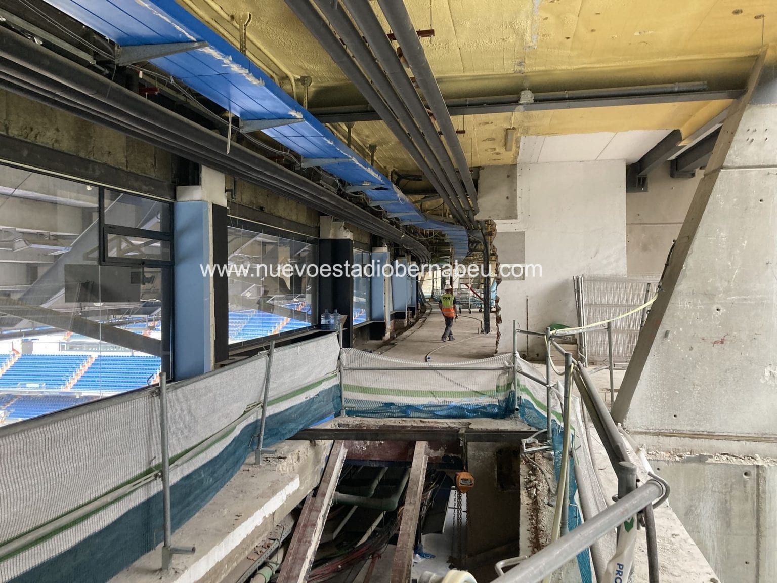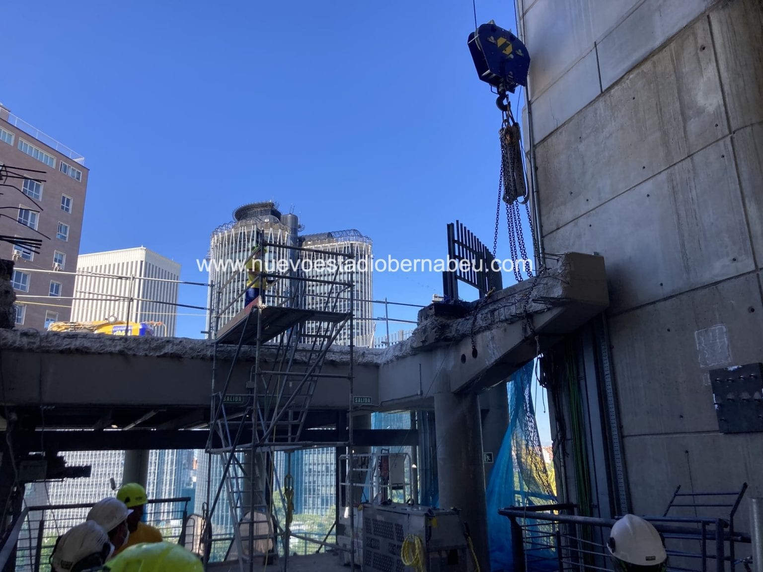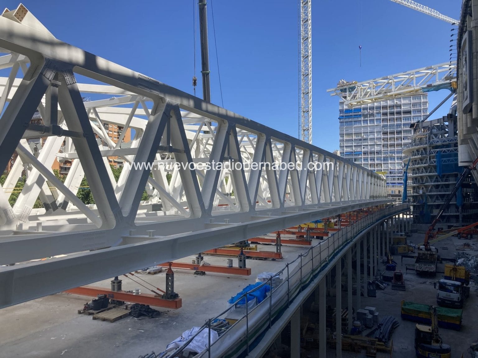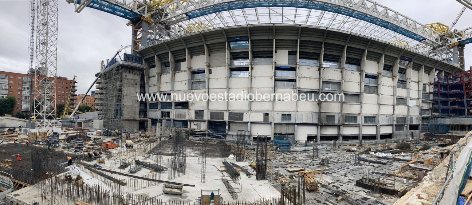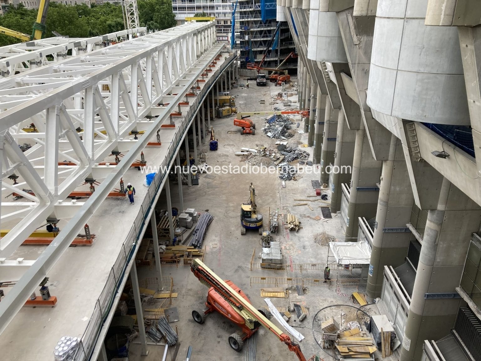 Subimos una nueva actualización con material gráfico que hemos tomado esta semana en el nuevo Bernabéu en el que podéis ver el grado de avance en las distintas zonas del estadio. A la espera del izado de la cercha número 3 que se realizará si todo va bien para el día 22-23 de julio, continúan los trabajos en parking, adecuación del nuevo terreno de juego, trabajos en estructura de cubierta, etc.