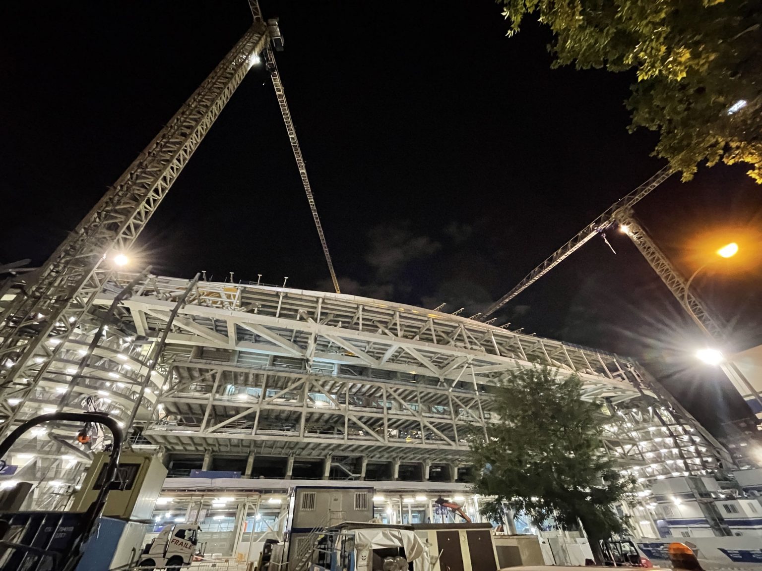 El nivel de actividad en la obra ha alcanzado su máximo durante este verano con varios cientos de trabajadores al pie del cañón. De cara al próximo parón del mundial de Qatar, desde mediados de noviembre hasta finales de enero de 2023 no se disputarán partidos en el Bernabéu, y ahí se van a desplegar todos los medios para llegar en disposición de darle un golpe definitivo al avance de la obra. Durante el mes de septiembre, octubre y parte de noviembre se van a acometer aquellas actuaciones que permite la disputa de partidos en el estadio.