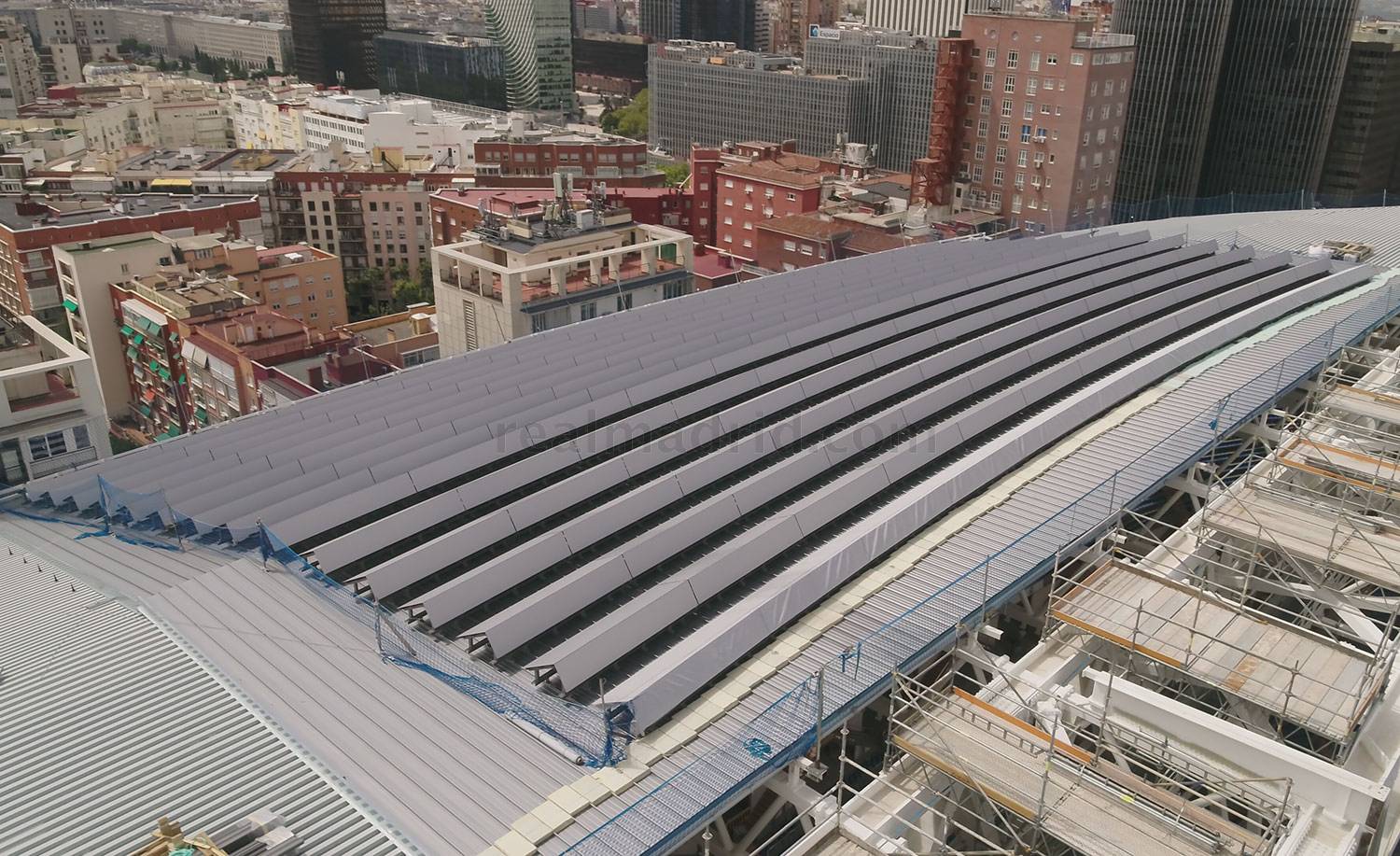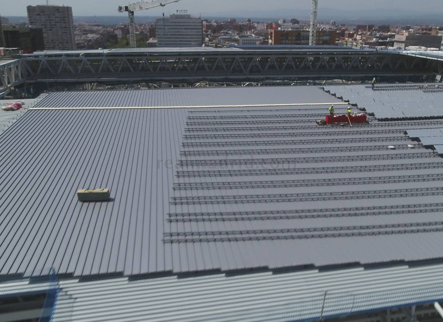 Durante el verano ha sido visible la evolución de la cubrición parcial de la cubierta y las fachadas norte y sur con algo más de 900 lamas en cubierta y más de 700 en fachada.