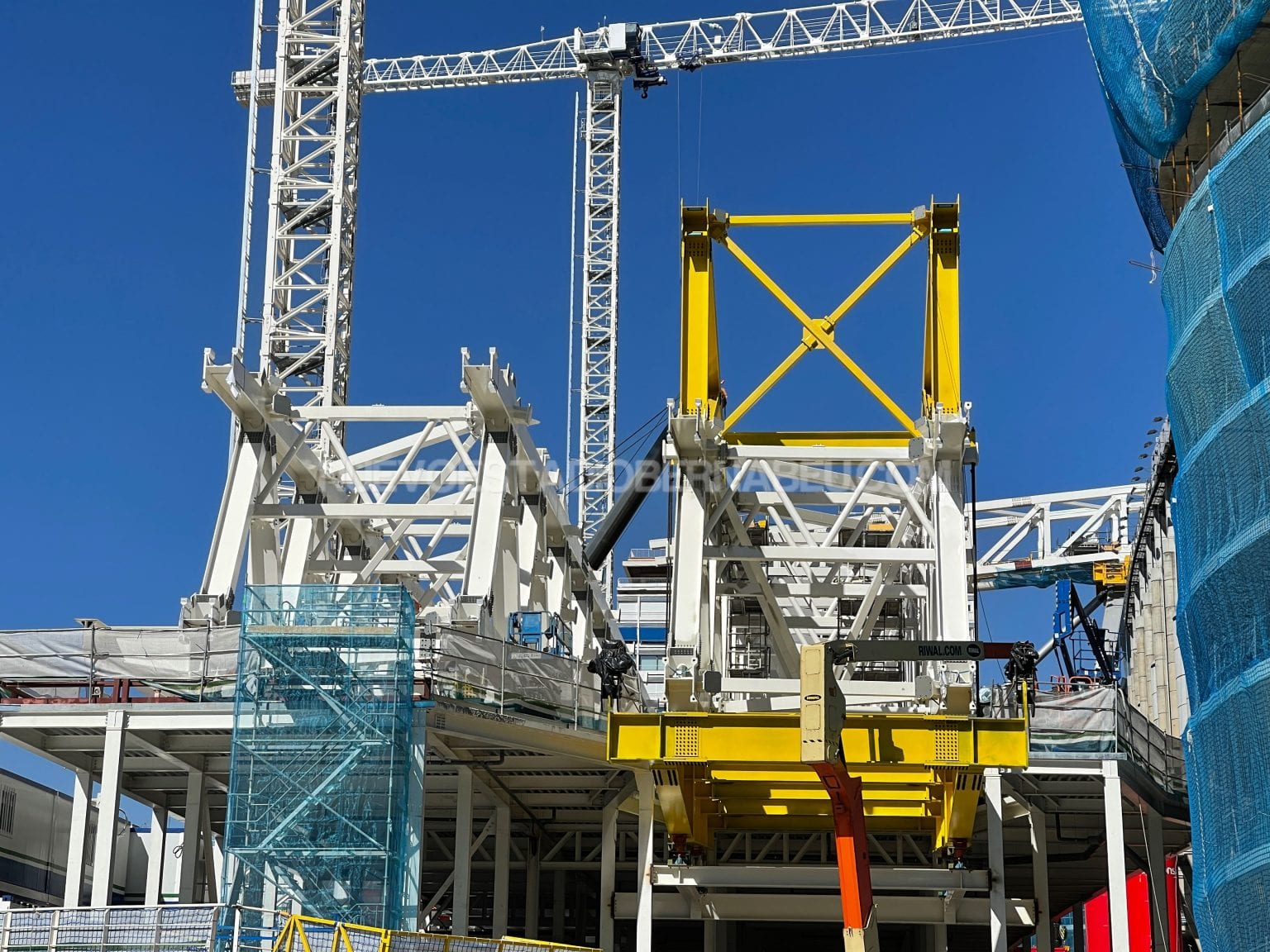 Las nuevas torres van en modo cohete, ya han cogido un ritmo imparable y estarán mínimamente operativas en las próximas semanas. En la torre B se trabaja en la fábrica de ladrillo de todos los niveles inferiores y en la torre C ya se ha subido a niveles intermedios mientras que se aglutinan las pasarelas de desembarco para su enganche.