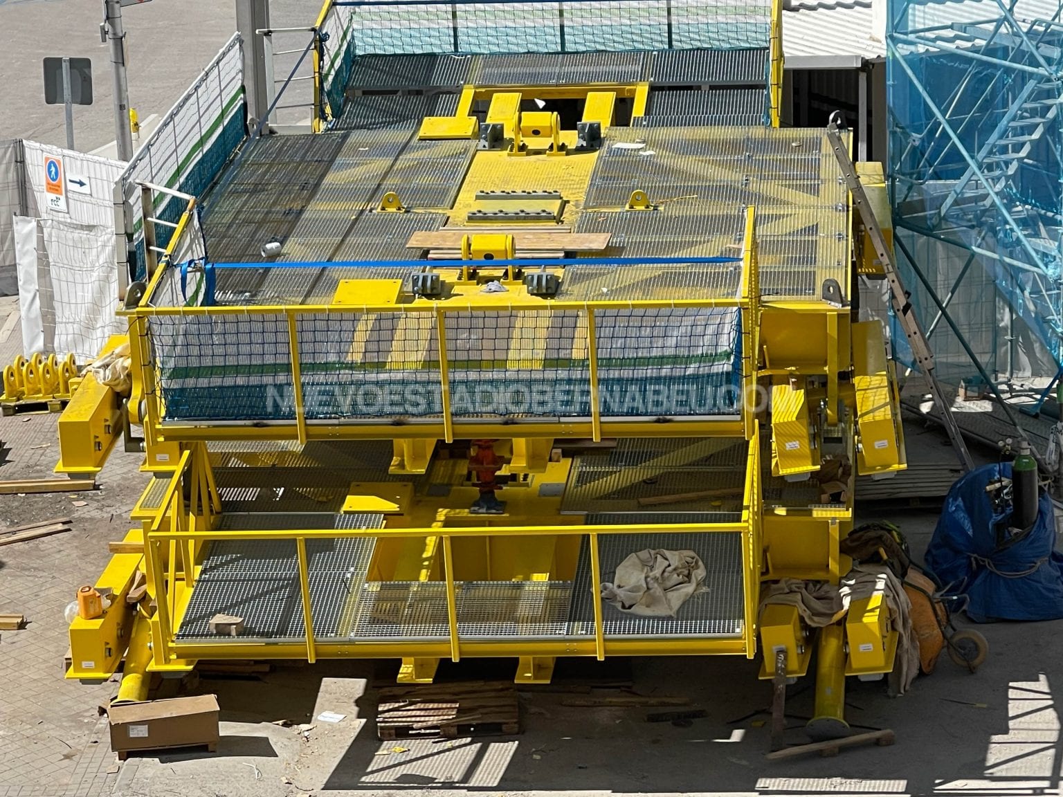 Mientras ocurre esto, la cercha número 1 está casi lista para su izado que no será cosa fácil y de eso hablaremos en una publicación exclusiva sobre ello. Esta semana se ocupará enterá en los trabajos de remates como reparación de tapado de poros y pinturas, repaso de uniones y aprietes y demás. Mientras en paralelo se procederá al izado de los carretones norte y sur y el montaje de gatos, elementos de izado y bogies de traslación. A finales de semana se harán pruebas simulacro para el futuro izado de la cercha de más de 140 metros de longitud.