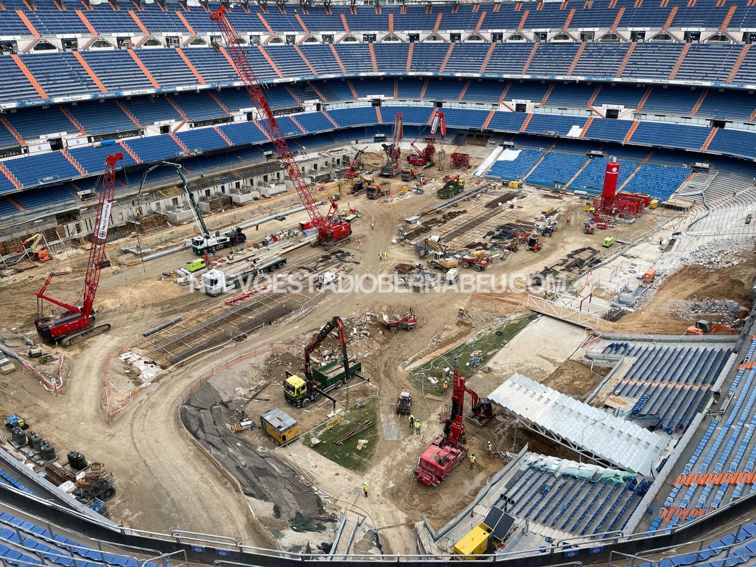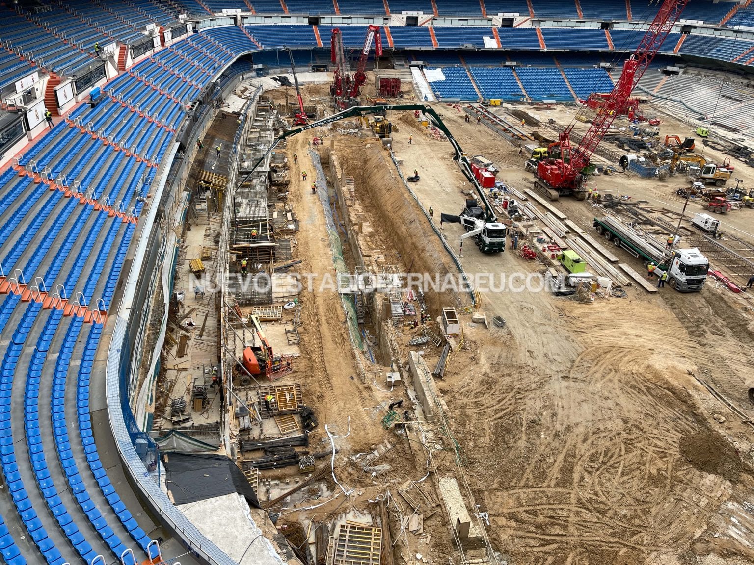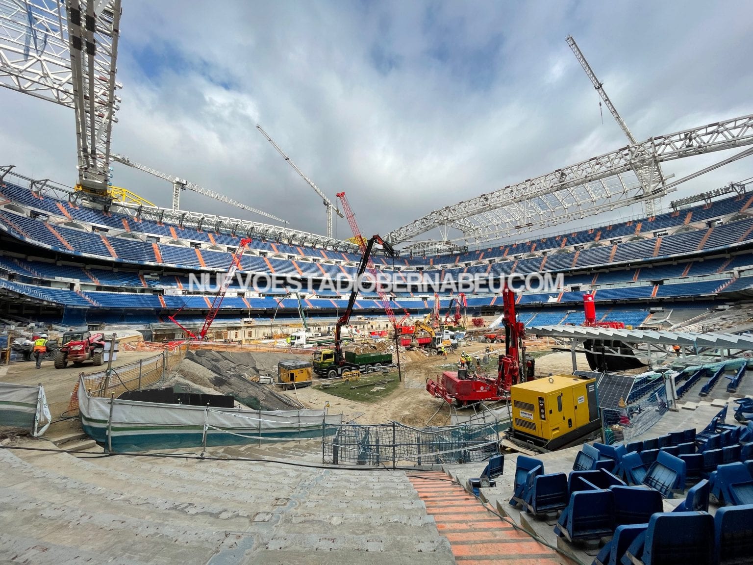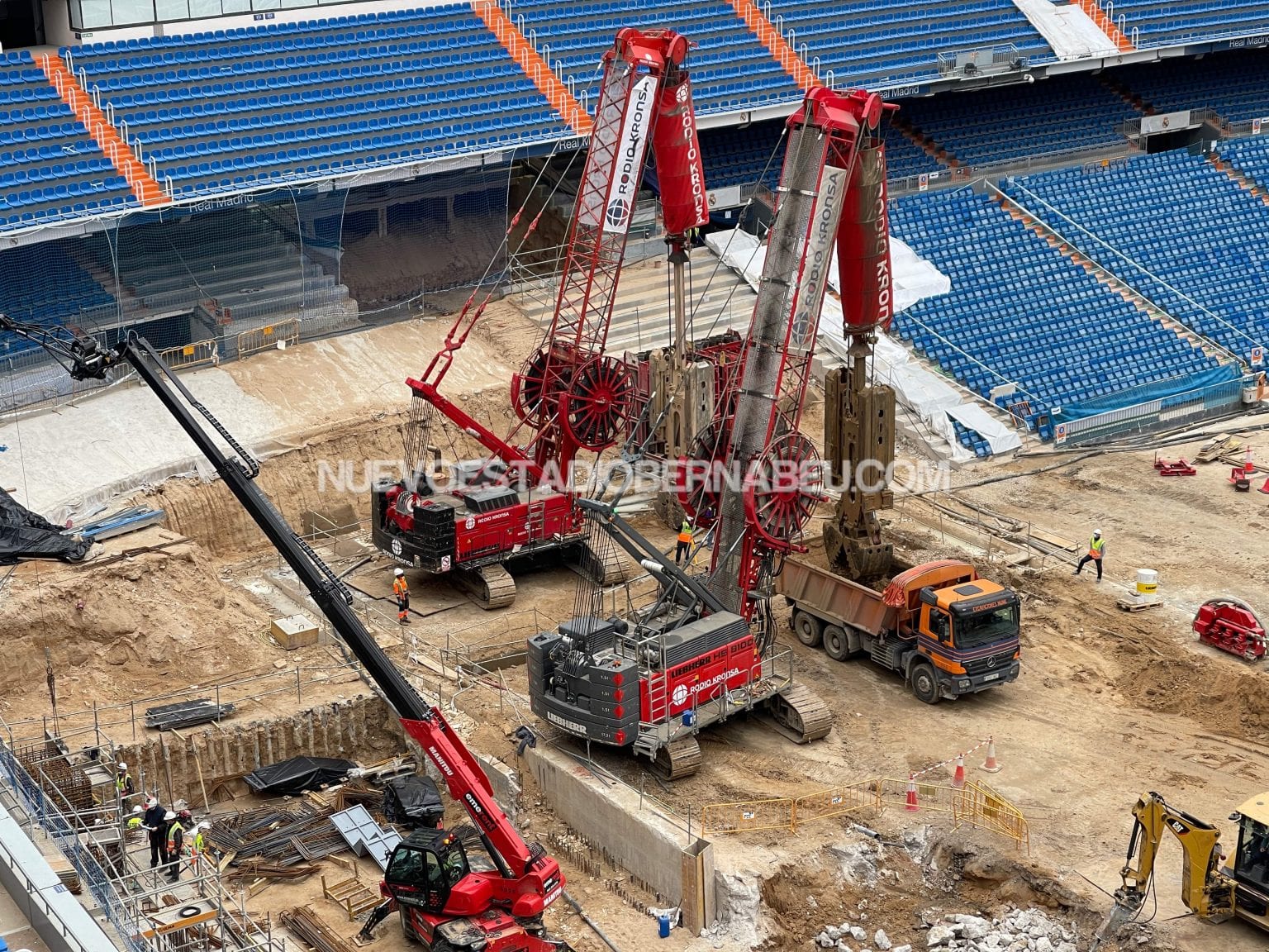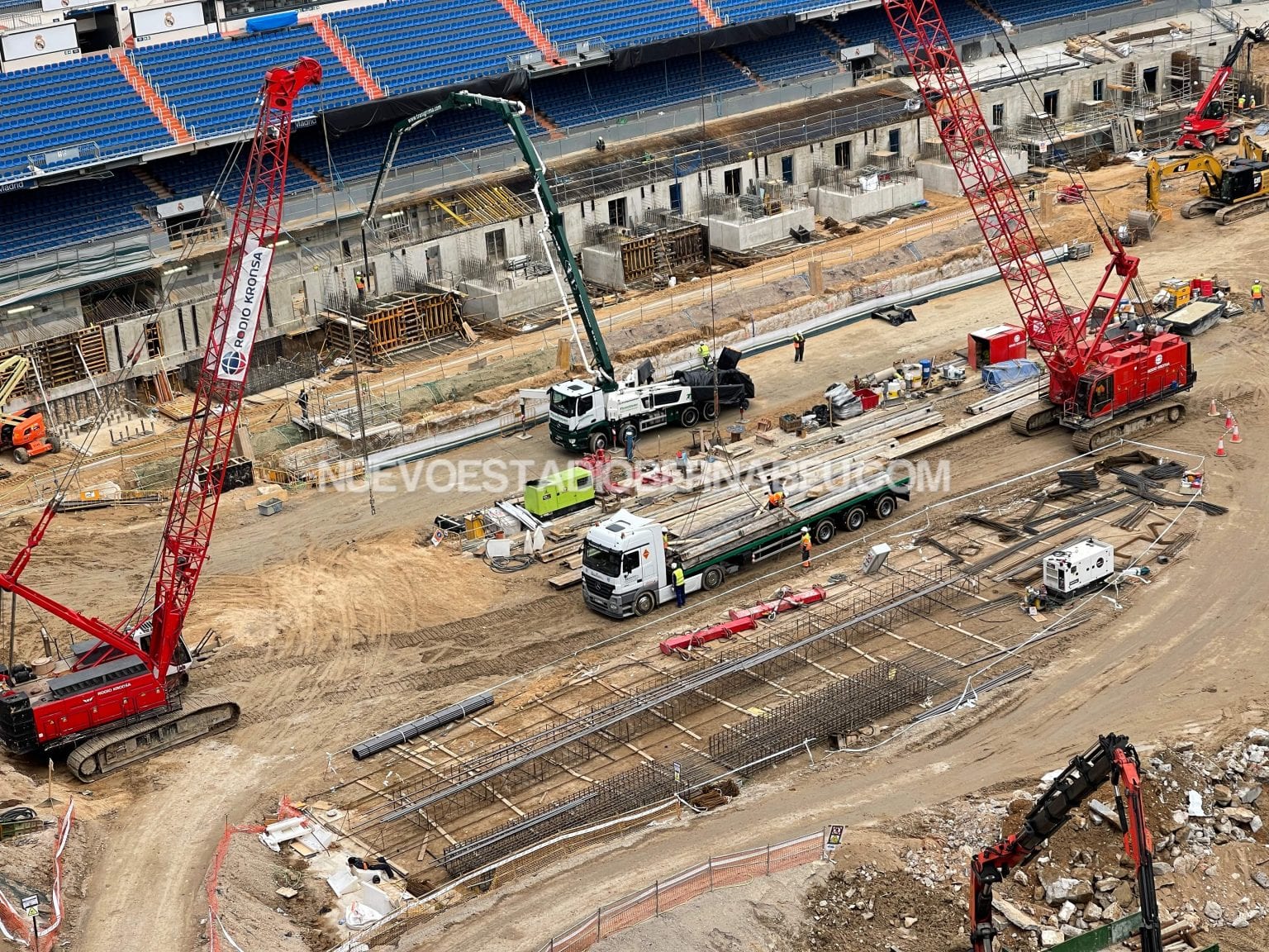 La mundial!!!! coloquialmente hablando, en el Santiago Bernabéu está liada la mundial. Pantalladoras, pilotadoras, hormigoneras, maquinaria de todo tipo y tonelaje…y todo en perfecta armonía, coordinación y seguridad.