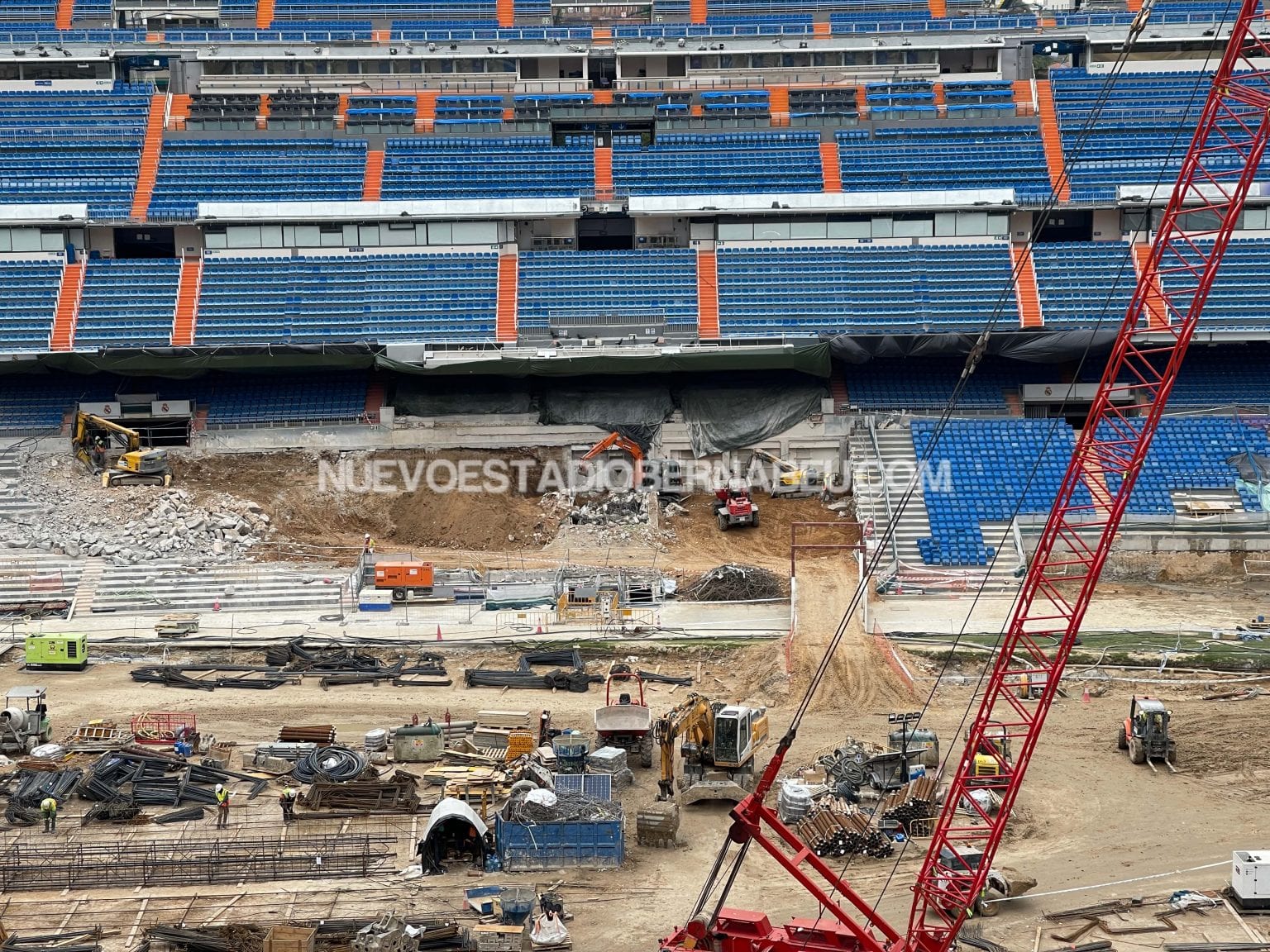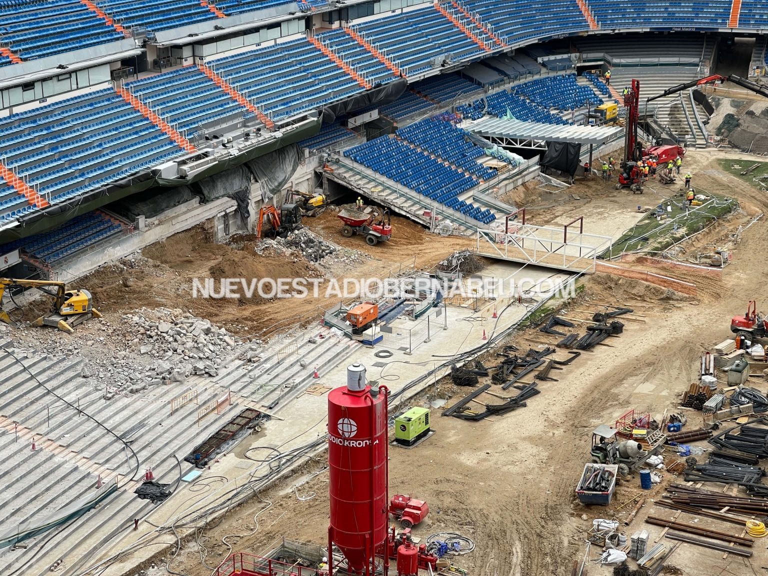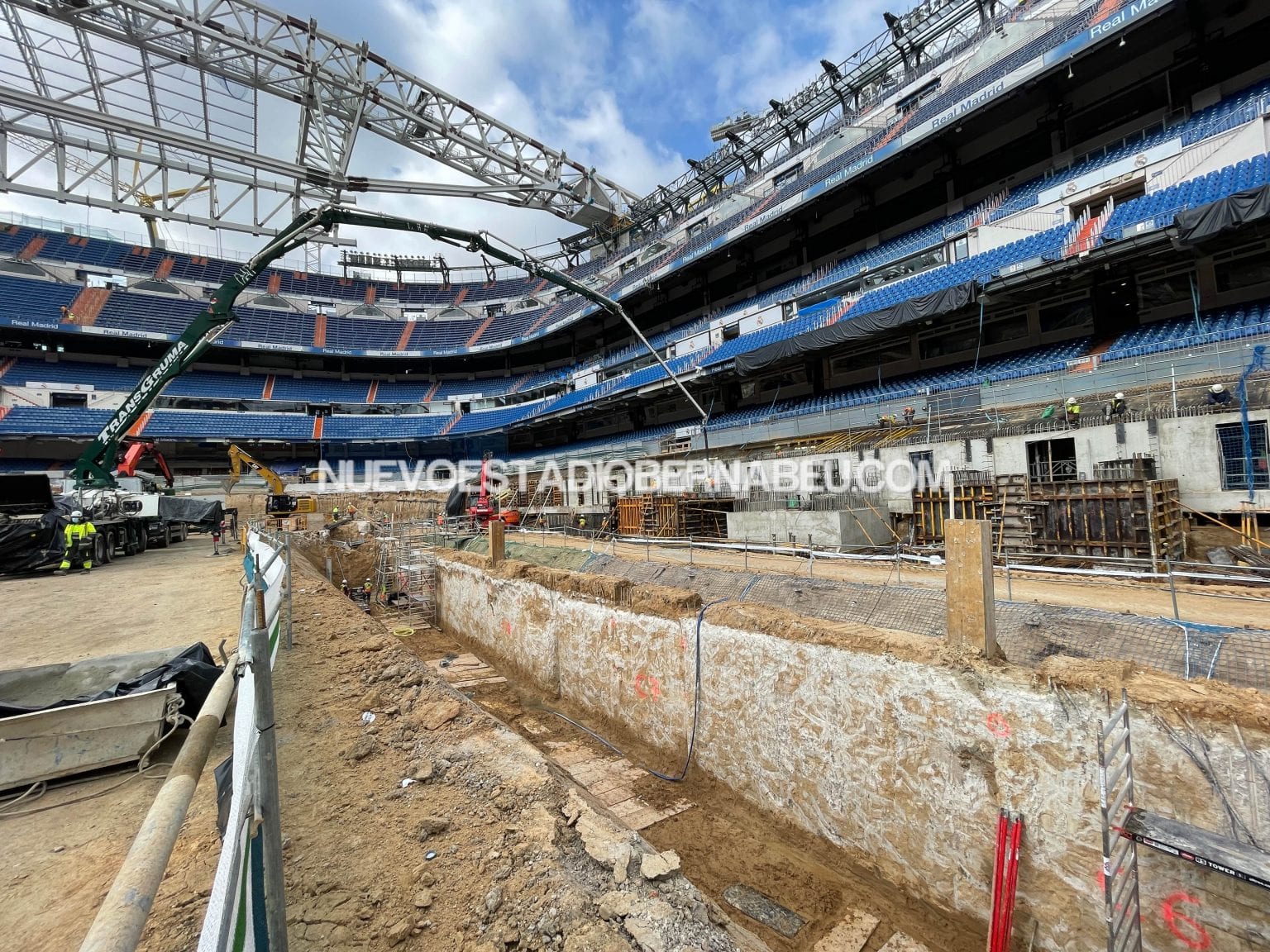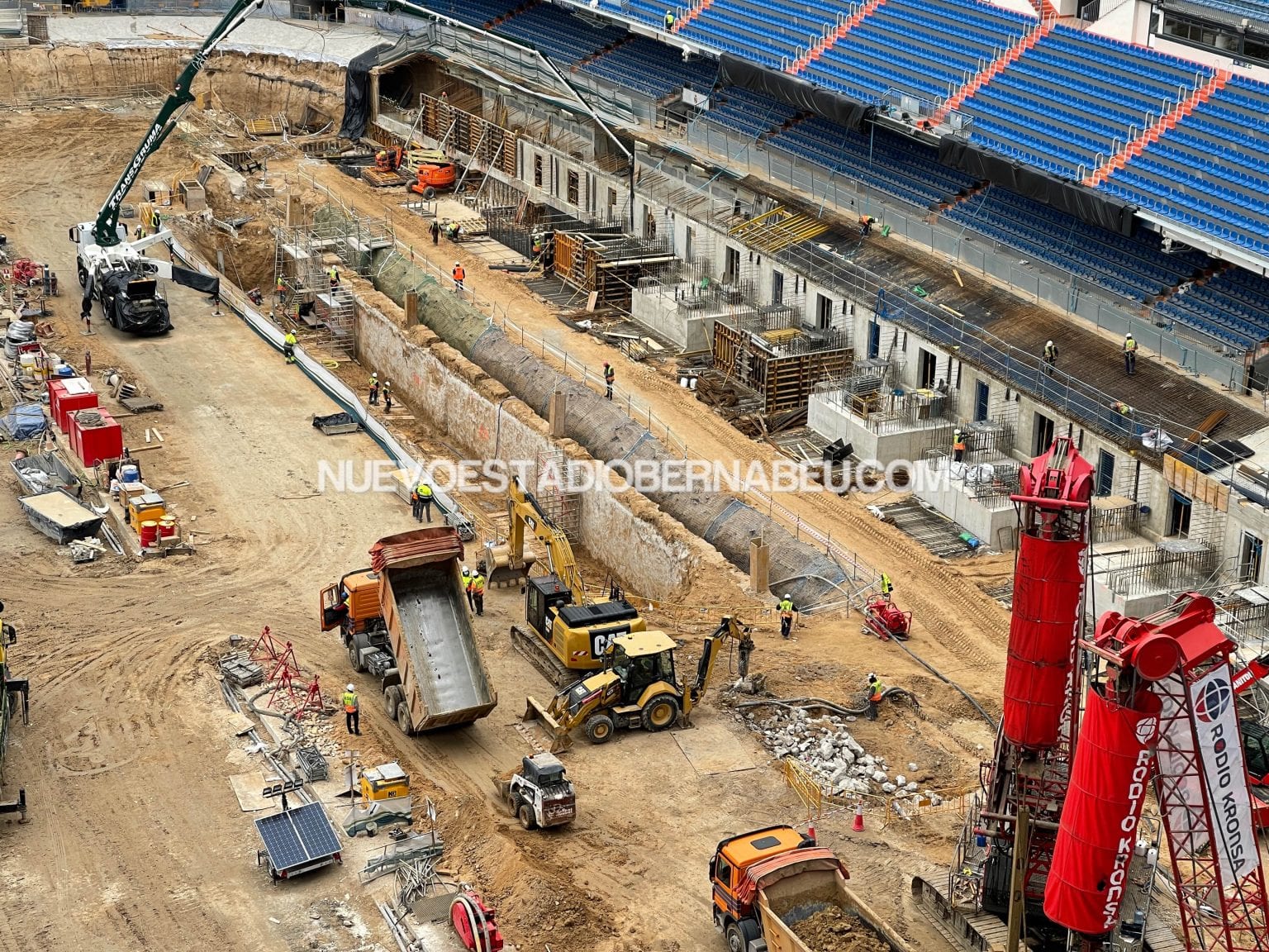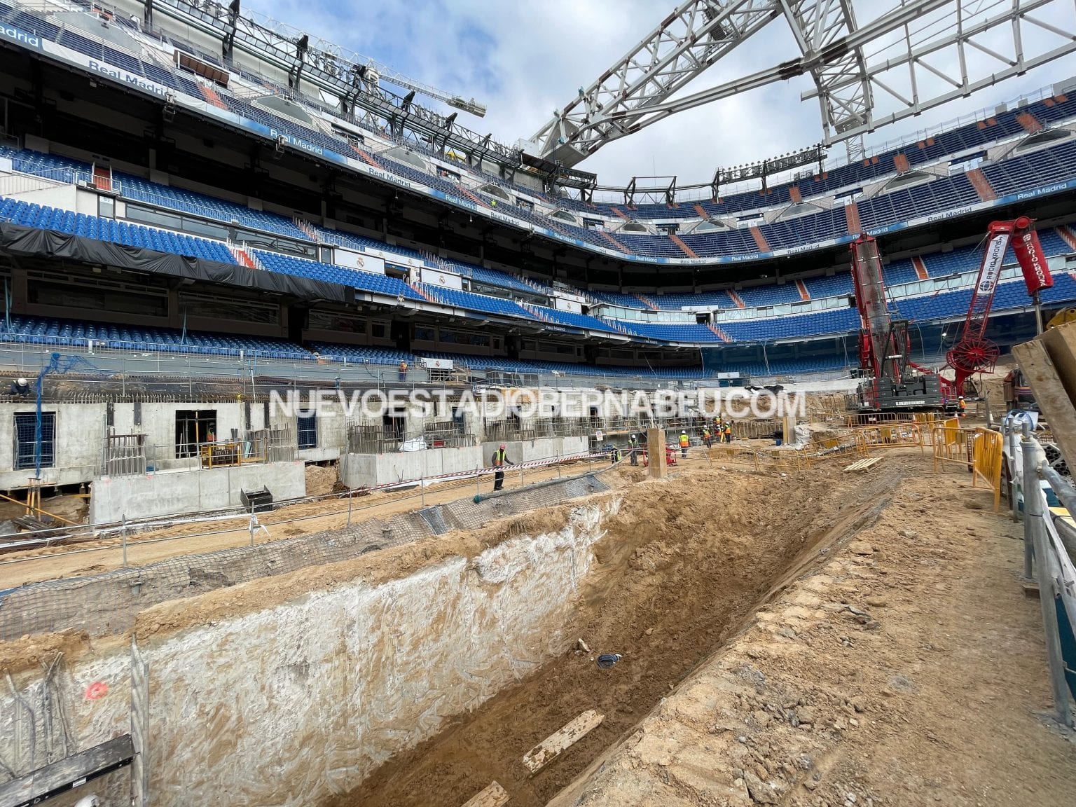 La mundial!!!! coloquialmente hablando, en el Santiago Bernabéu está liada la mundial. Pantalladoras, pilotadoras, hormigoneras, maquinaria de todo tipo y tonelaje…y todo en perfecta armonía, coordinación y seguridad.