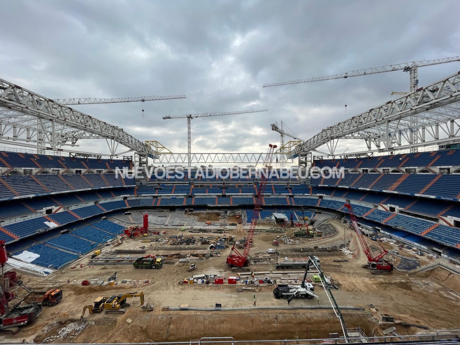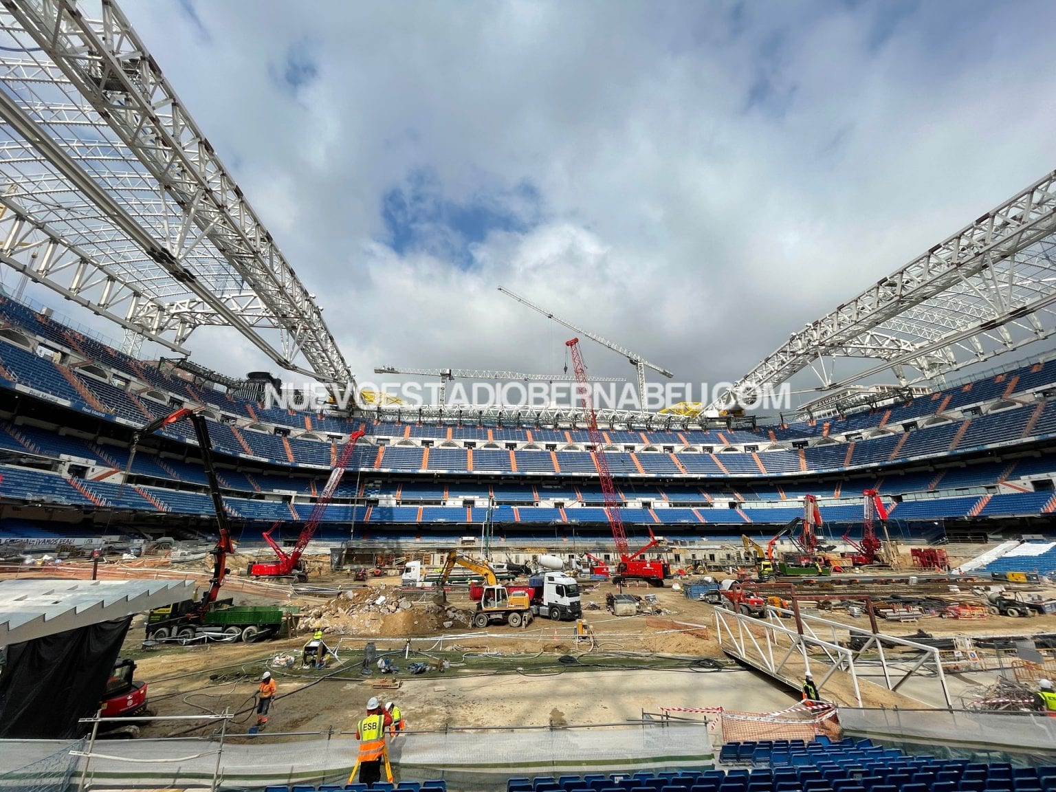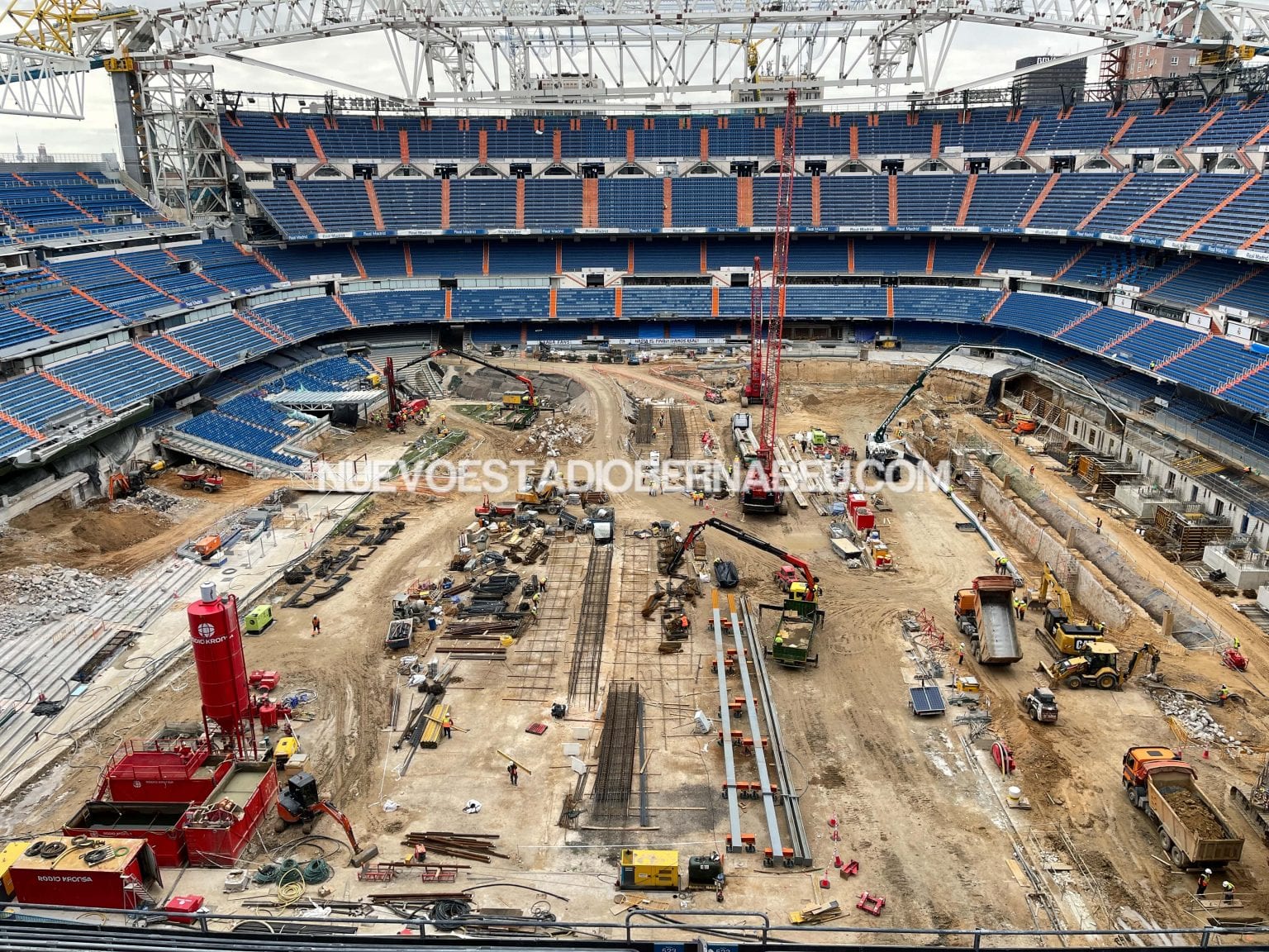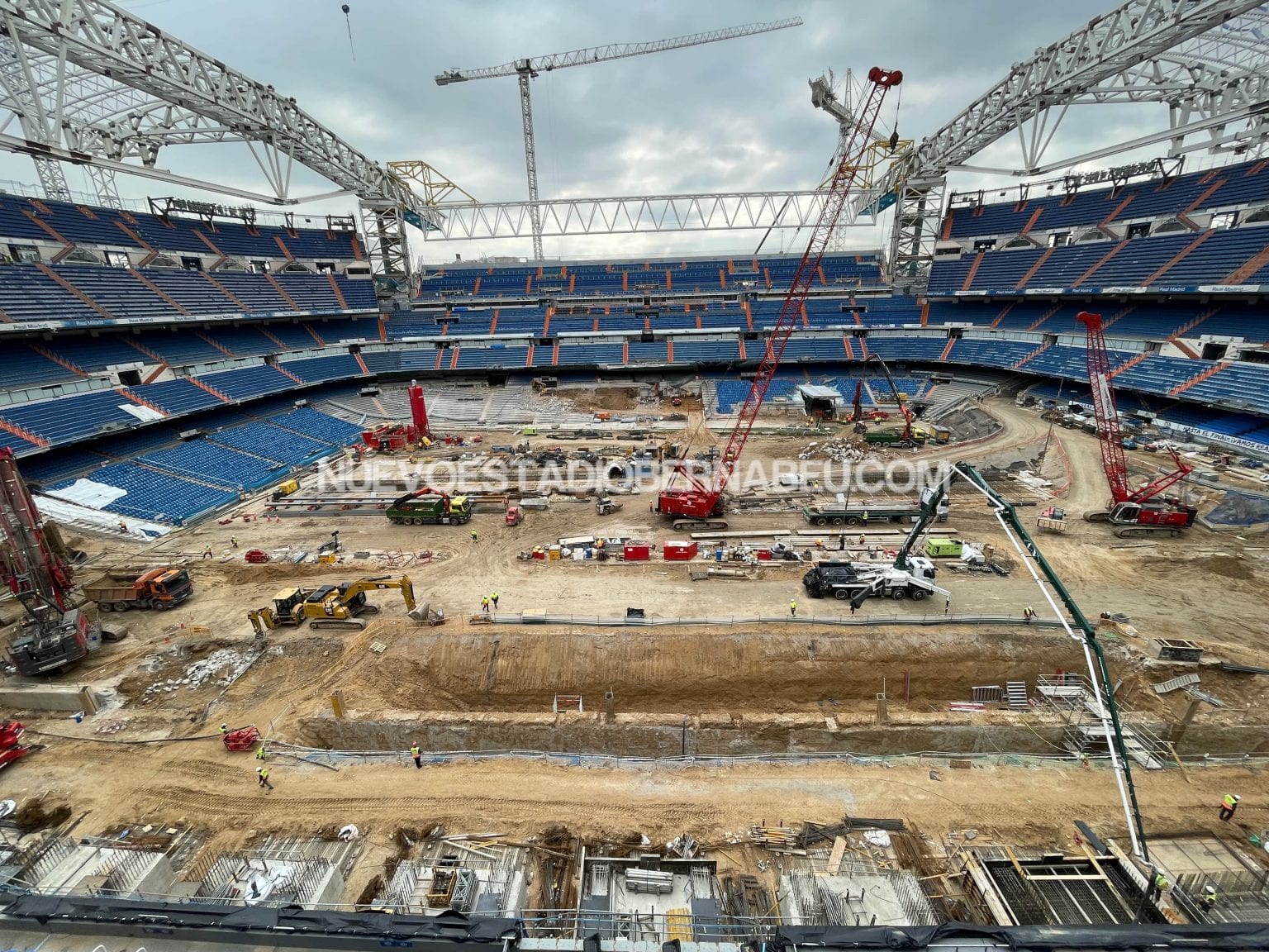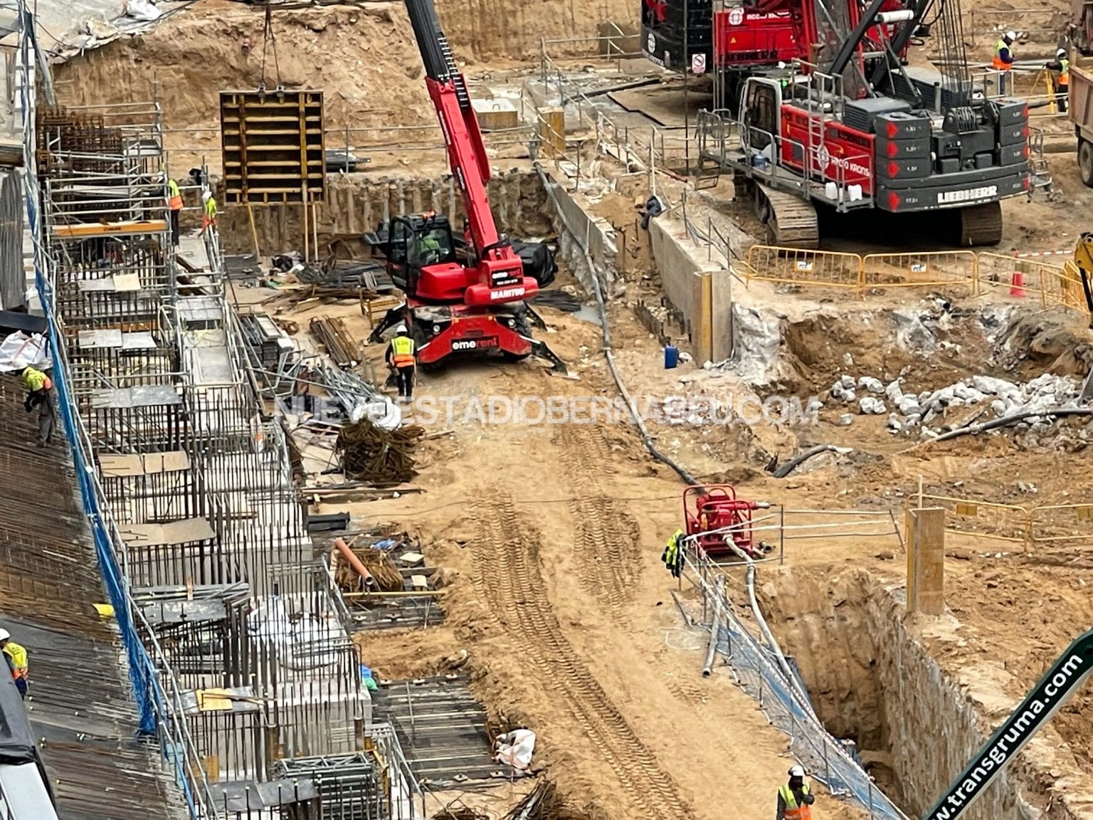 La mundial!!!! coloquialmente hablando, en el Santiago Bernabéu está liada la mundial. Pantalladoras, pilotadoras, hormigoneras, maquinaria de todo tipo y tonelaje…y todo en perfecta armonía, coordinación y seguridad.