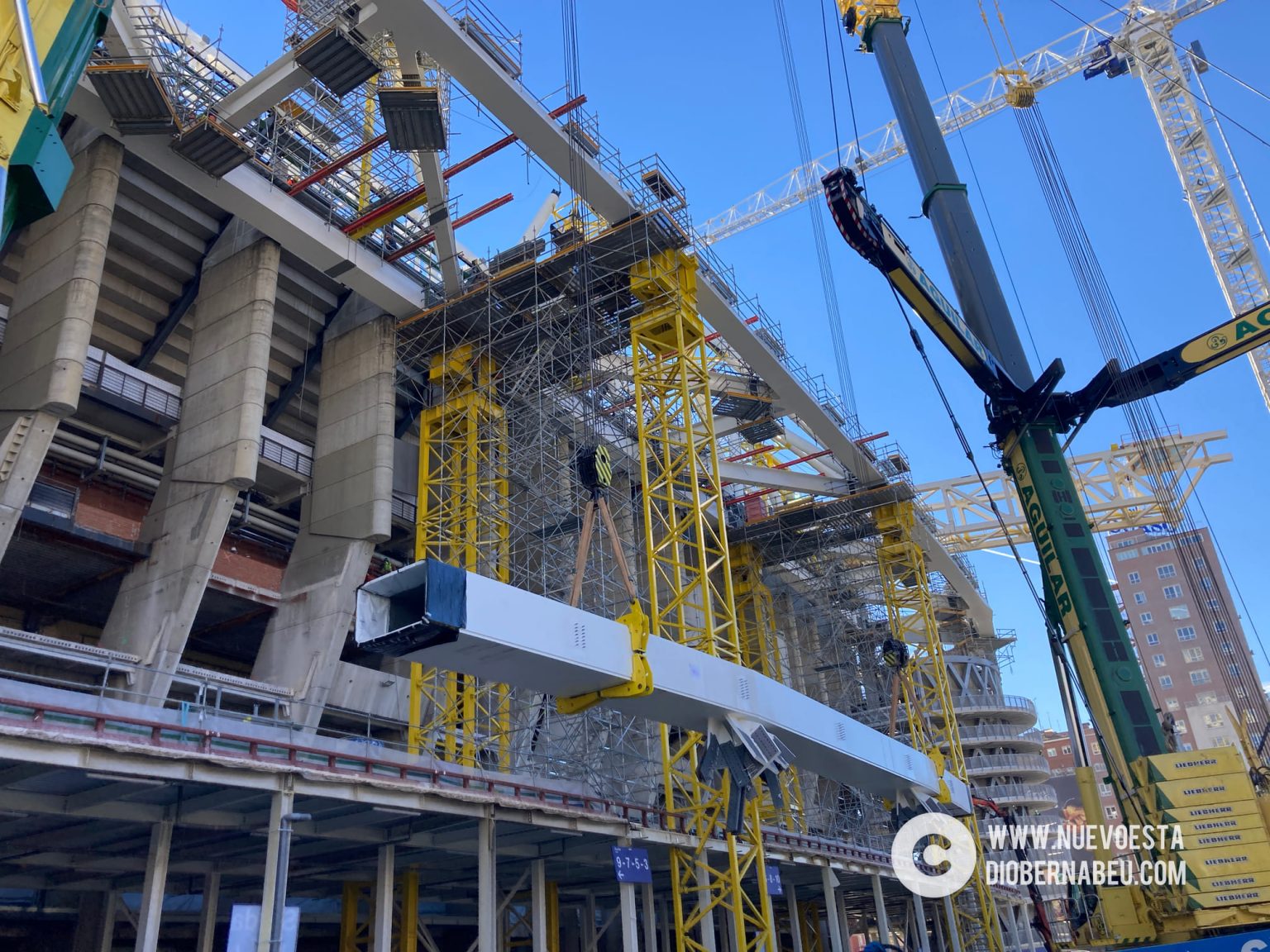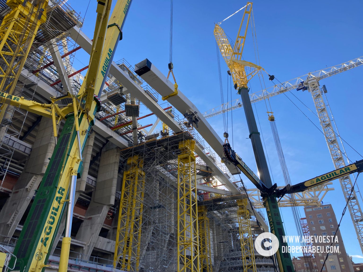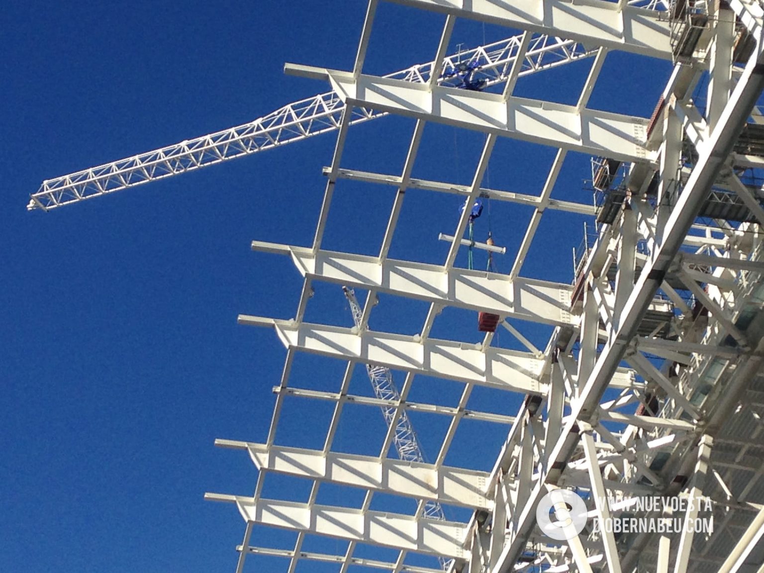 Trabajos en la estructura de cubierta del nuevo Bernabéu