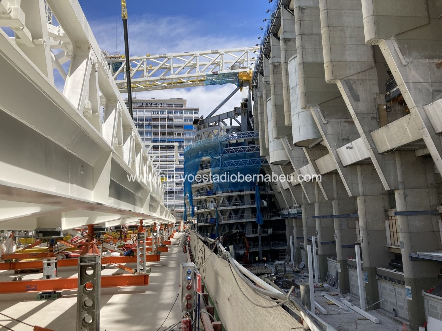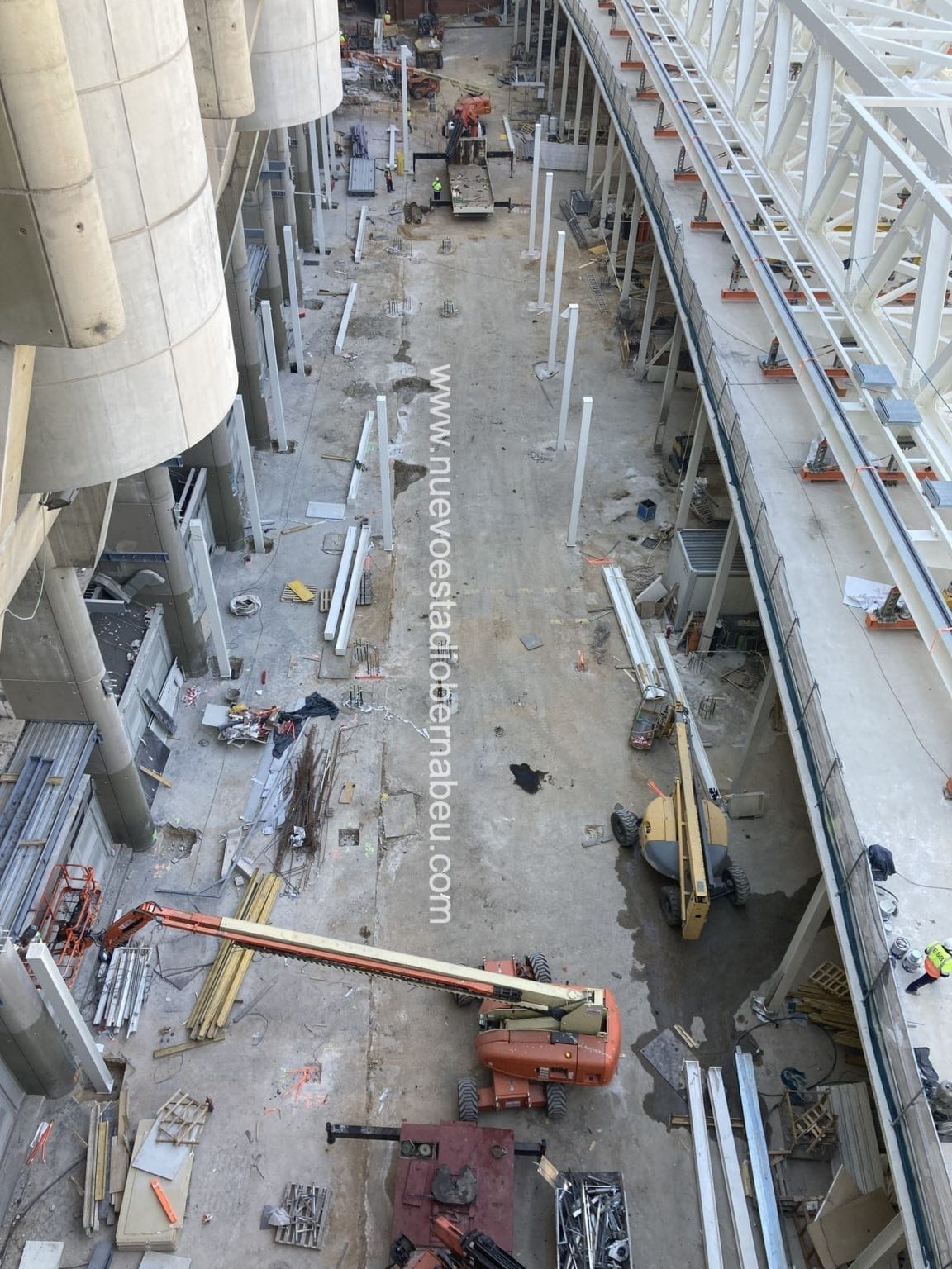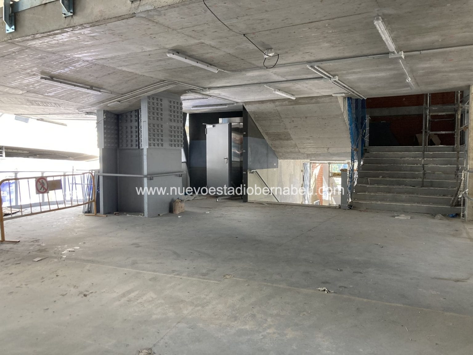 Por último y más importante se empiezan a habilitar nuevos accesos para la entrada y evacuación de espectadores, autoridades y jugadores. En el parking estamos a punto de salir a cota cero y en el lateral este se habilita una entrada por la puerta 44 y otra por la puerta 55.57 que servirá para la entrada y salida de autoridades y jugadores. Toda la zona central del lateral este quedará inhabilitada puesto que el crecimiento del nuevo edificio este comenzará a coger velocidad de crucero desde ahora hasta el mes de marzo.