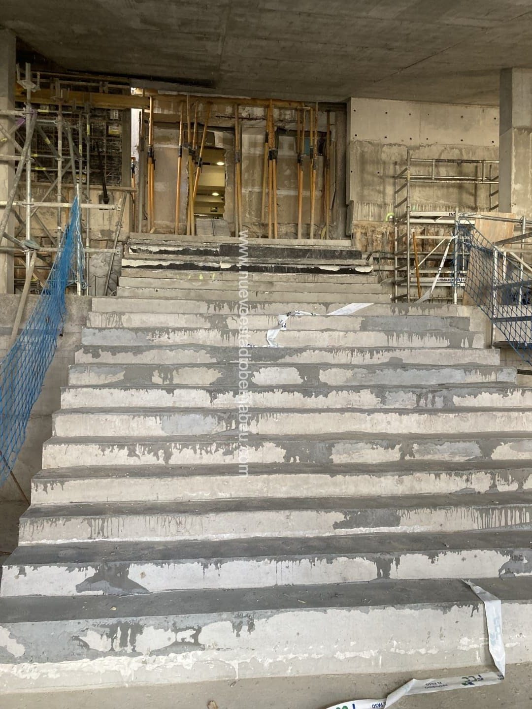 Natural Grass prosigue con la instalación del terreno de juego que se viene llevando a cabo desde el día 16 y FCC Construcción ultima la reconstrucción del túnel de vestuarios. Unos vestuarios que vuelven a estar operativos para la vuelta del fútbol a casa una vez que se han ejecutado los trabajos de recrecido de pilares que afectaban a esa zona de la estructura del estadio.