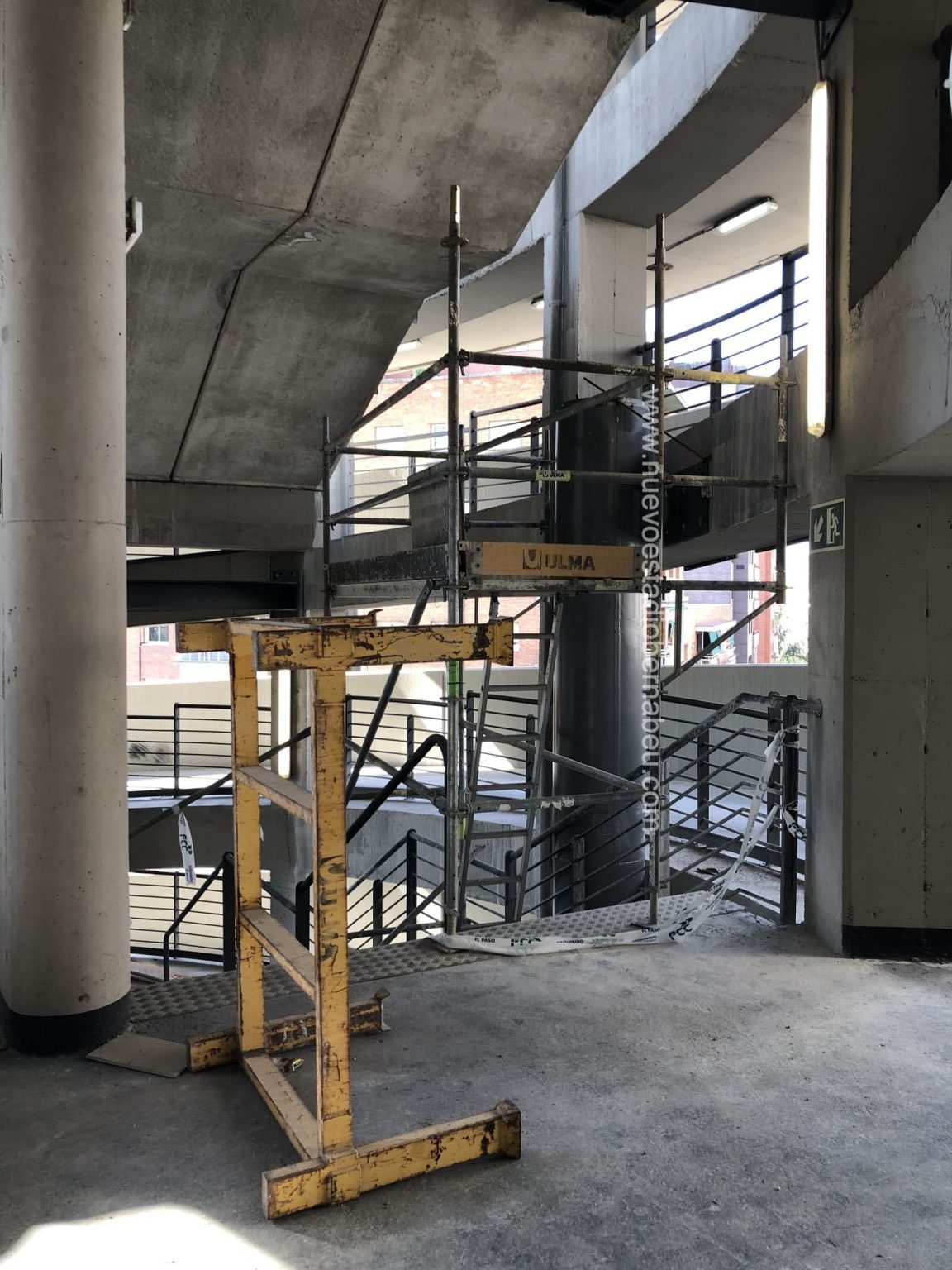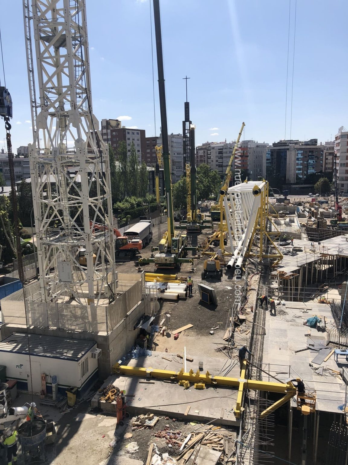 En el lateral este se está desguazando la antigua viga que se descolgó hace unos días, mientras que en el lateral oeste ya está preparado el izado de la cercha número 4 que se ejecutará mañana viernes día 3 si no hay contratiempos de última hora. Una vez izada se procederá al arriostramiento del conjunto de cubierta oeste y se trasladará mediante cadenas a posición definitiva.