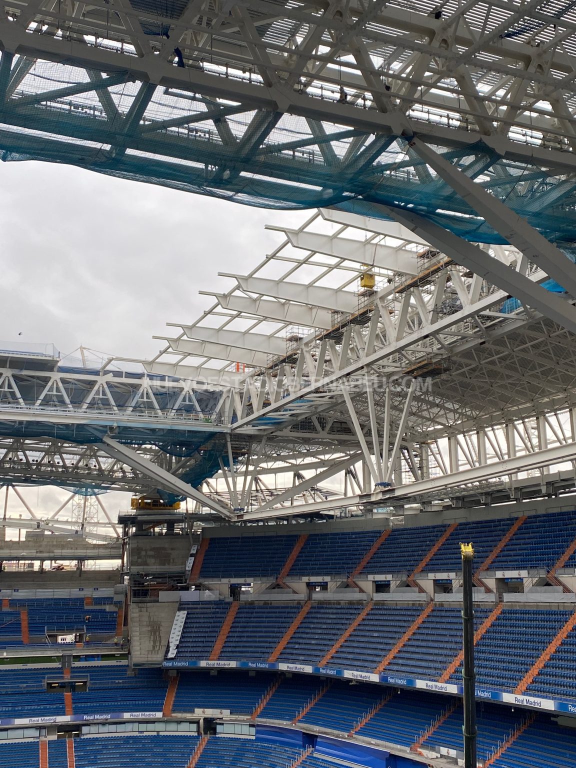 El nuevo Bernabéu está diseñado sobre conceptos revolucionarios y principios sostenibles en una transformación tecnológica pionera a nivel mundial. El nuevo Bernabéu, no es solo un estadio de fútbol. Es un templo del fútbol. La nueva cubierta retráctil está diseñada para que la experiencia de partido sea aún más sensorial y los aficionados se sientan parte del juego. La nueva cubierta está en su última fase de ejecución con el ensamblaje de las 12 cerchas de 72,5 metros de largo en el campamento de obra del Paseo de la Castellana. Las cerchas se izarán a partir de la tercera semana de noviembre en una maniobra de izado con la ayuda de dos grúas de 800 toneladas en lo que será posiblemente el izado más espectacular de cuantos se han hecho en la obra del Santiago Bernabéu.