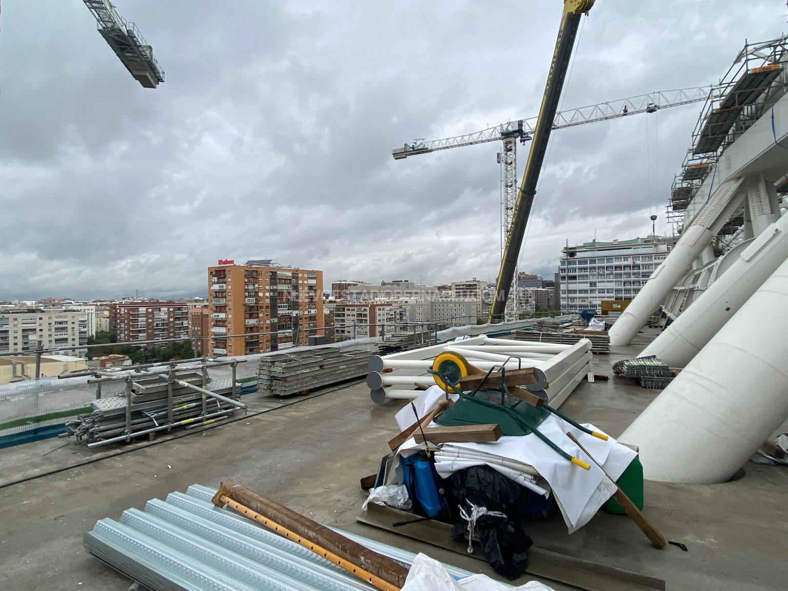 En las obras del nuevo Bernabéu, y a la espera del parón por el mundial de Qatar, se continúa con la construcción del parking sur de la nueva cubierta retráctil. Este elemento estructural de la cubierta es el que permitirá que la cubierta retráctil de la mitad sur del estadio quede bajo la estructura de la cubierta general en su posición abierta.