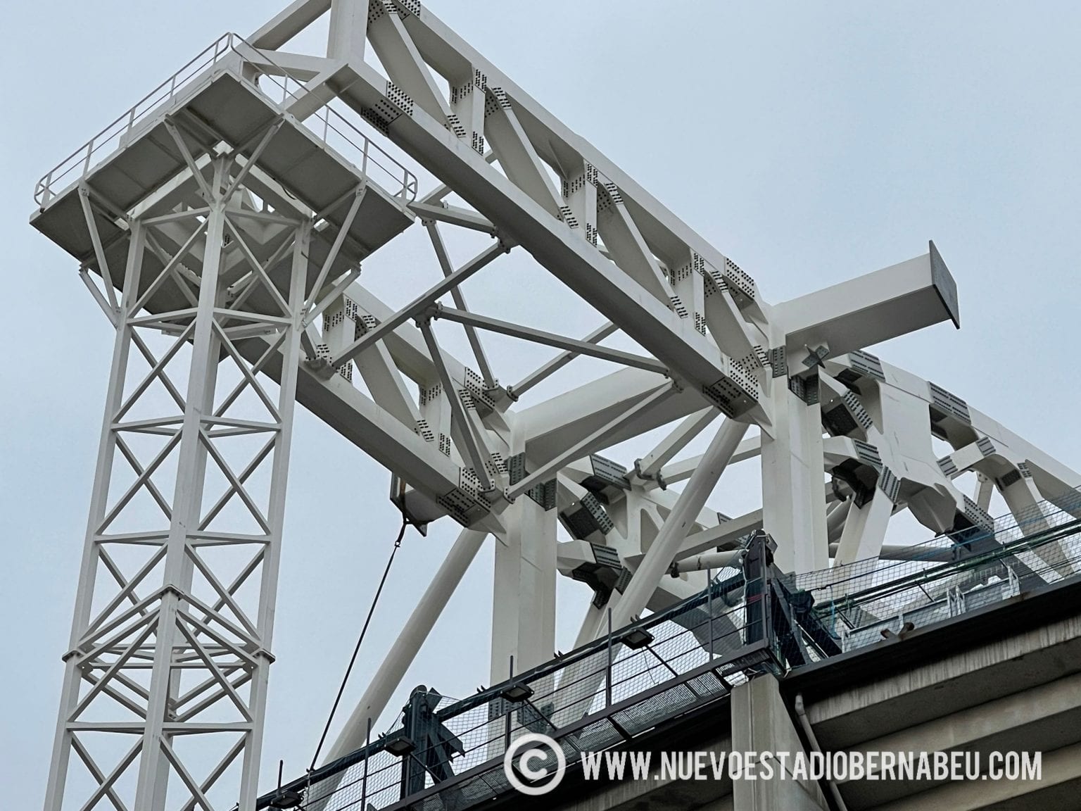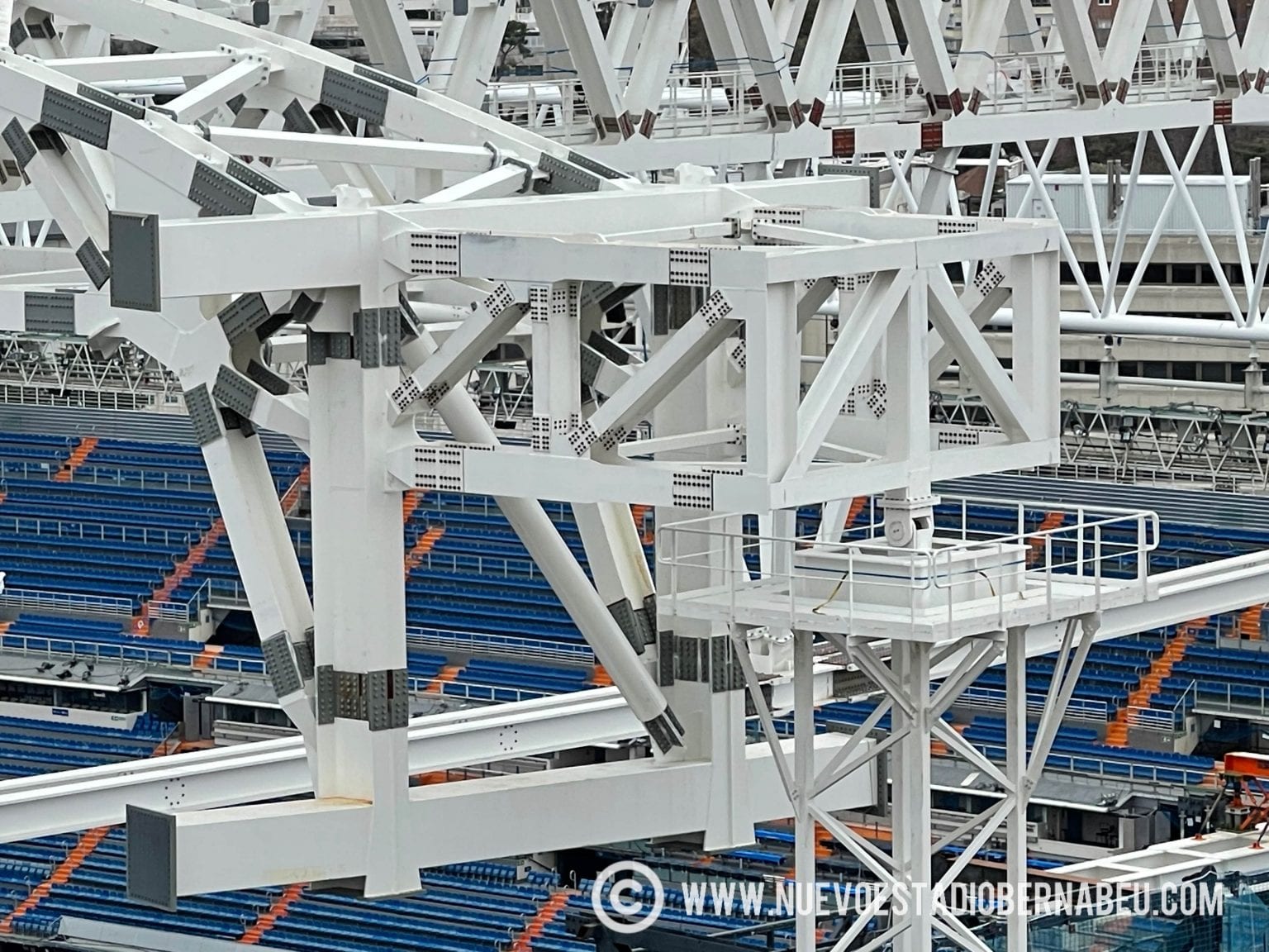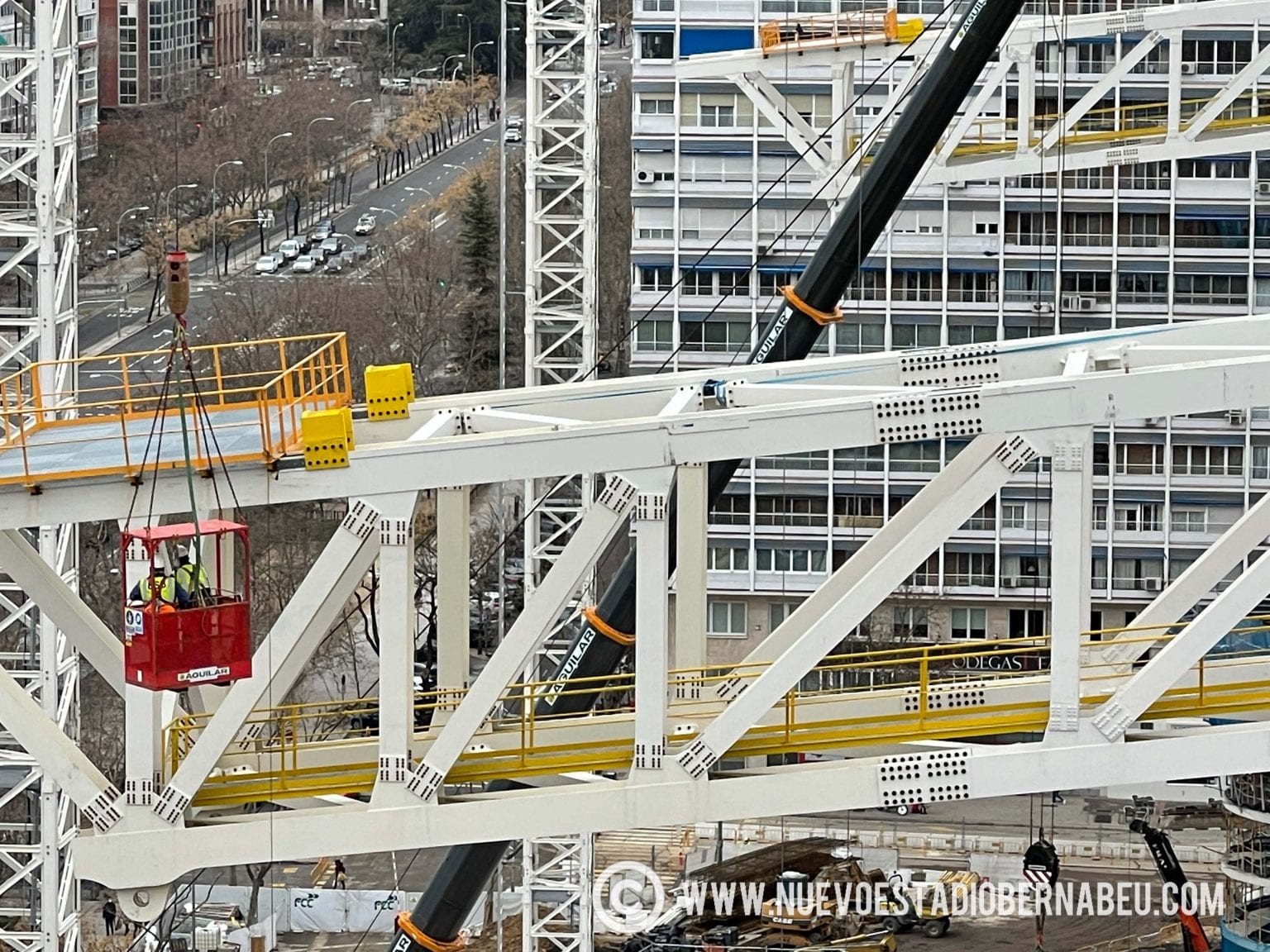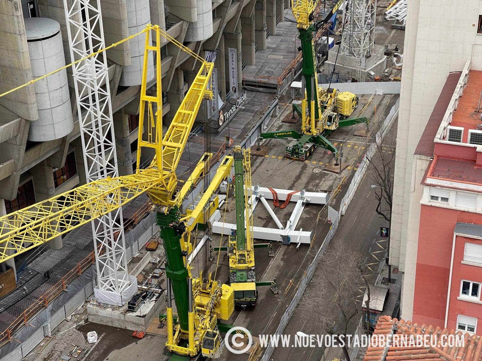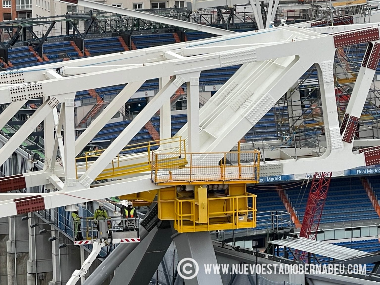 Ya durante esta semana se ha volcado mucha actividad al fondo sur, pero esta próxima semana la actividad principal caerá a esa parte exterior del estadio. La cercha de fondo sur va a empezar a coger forma. Aunque la intención era izar los módulos 6 y 7, el viento no lo ha permitido. A partir del lunes se volverá a intentar el izado del módulo 6 y 7 mientras que el módulo 5 entró en obra el paso martes y se está ensamblando.