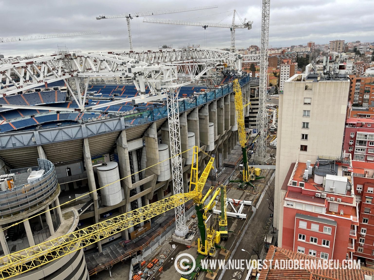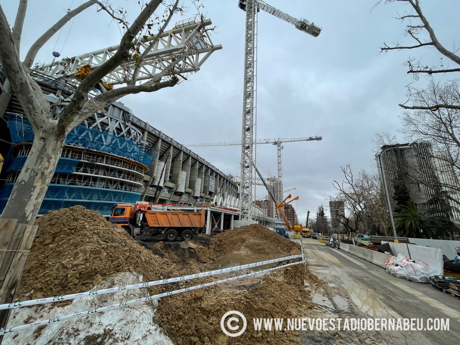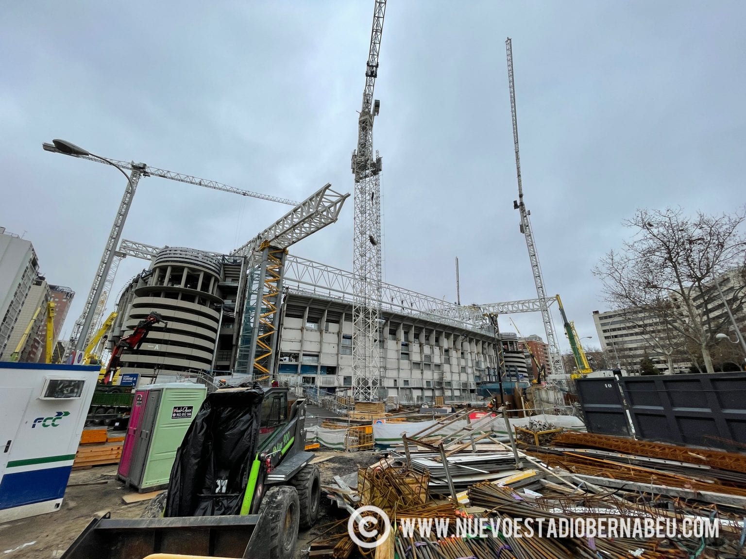 Una vez pasado el efecto “Filomena” esta semana la obra del Bernabéu ha retomado la normalidad…o casi. Con hasta 170 líneas de actuación previstas, el viento que se ha levantado en Madrid durante el final de la semana ha motivado la suspensión de algunas de las actuaciones previstas para la mañana de hoy sábado. No obstante, la obra avanza, sigue avanzando en las actuaciones más grandes pero también en las más pequeñas y no visibles para las cámaras más indiscretas.