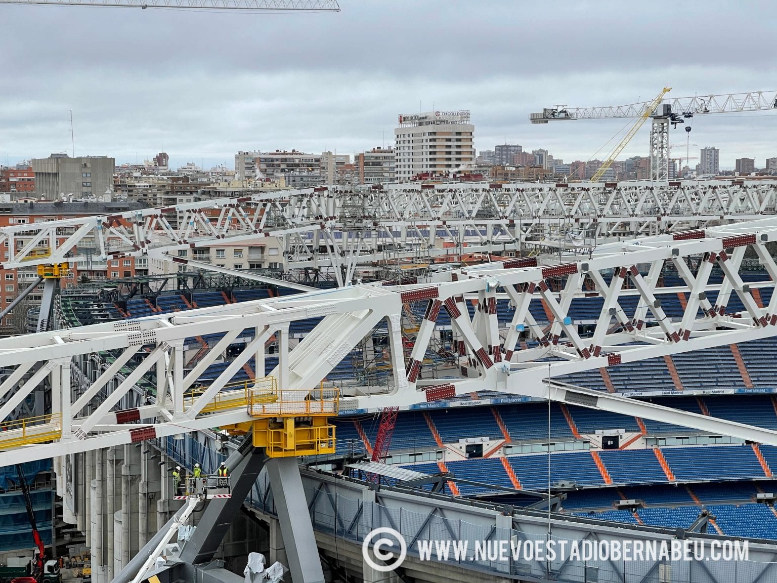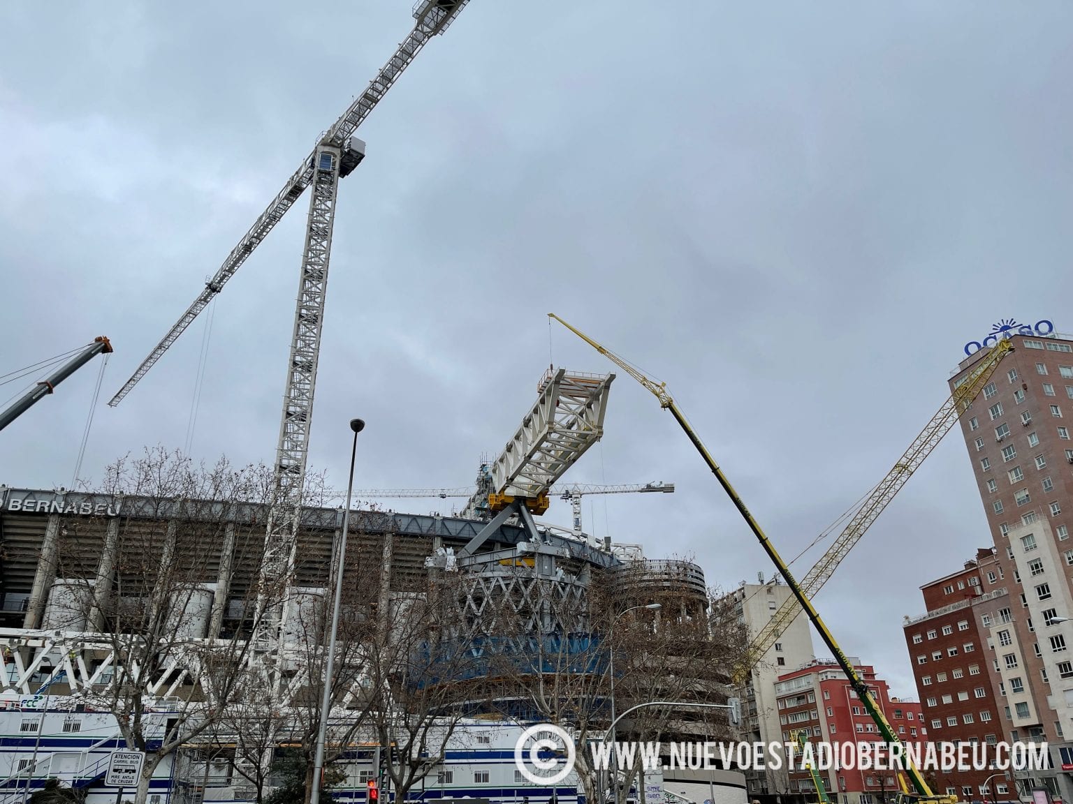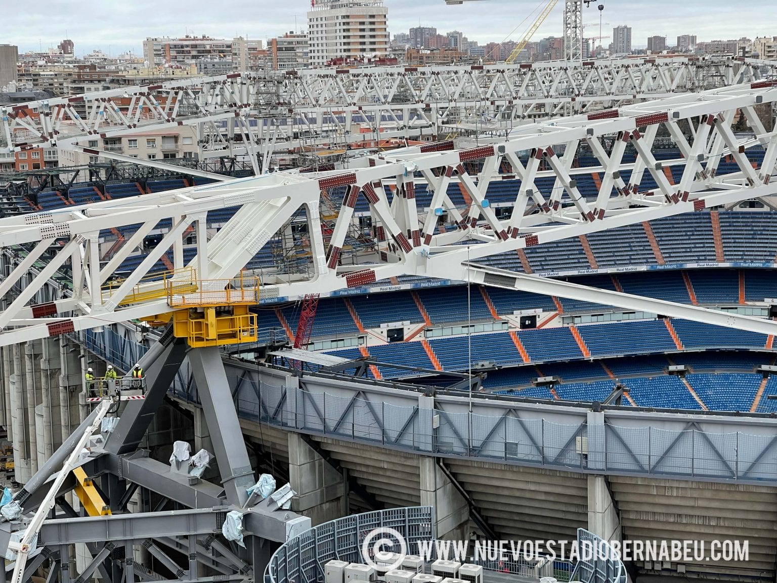 Una vez pasado el efecto “Filomena” esta semana la obra del Bernabéu ha retomado la normalidad…o casi. Con hasta 170 líneas de actuación previstas, el viento que se ha levantado en Madrid durante el final de la semana ha motivado la suspensión de algunas de las actuaciones previstas para la mañana de hoy sábado. No obstante, la obra avanza, sigue avanzando en las actuaciones más grandes pero también en las más pequeñas y no visibles para las cámaras más indiscretas.