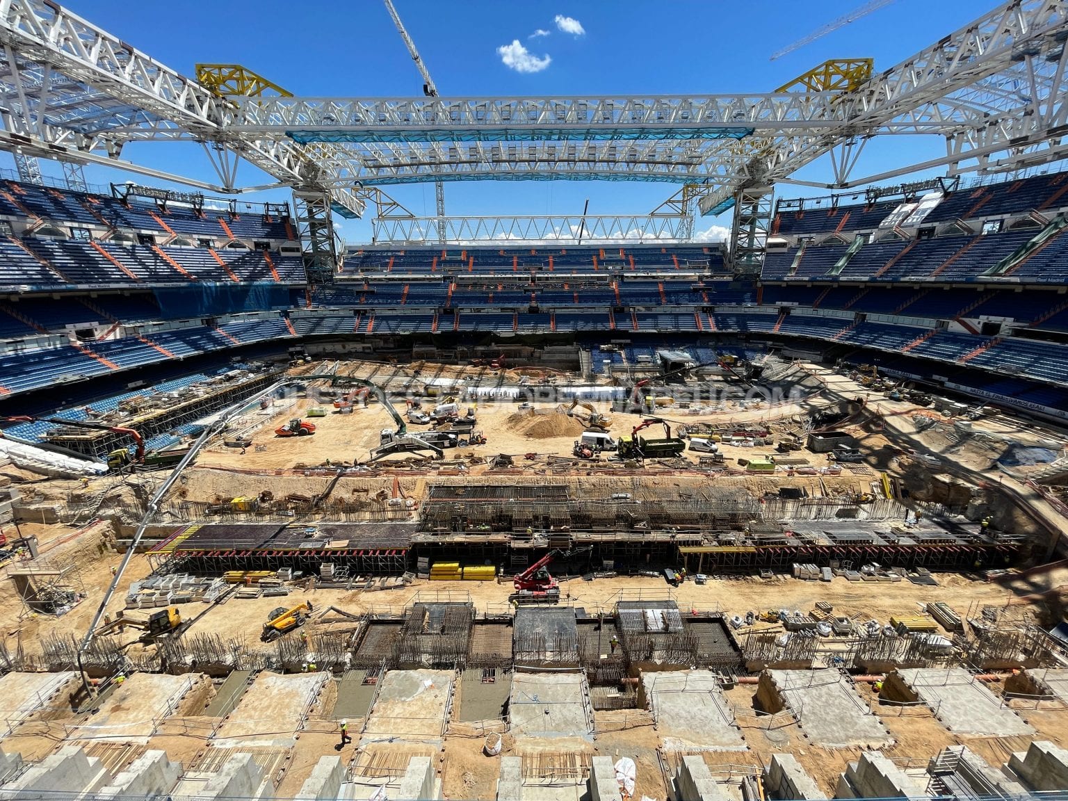 Las fotos dicen todo por sí mismas. Lo que se está realizando dentro del bowl del Bernabéu es una auténtica locura y ahora entramos en una fase en la que se provocará un ir y venir interminable de camiones y hormigoneras que aumentará la sensación de velocidad y “caos” en el terreno de juego.