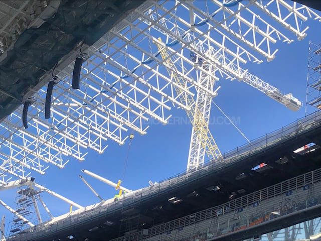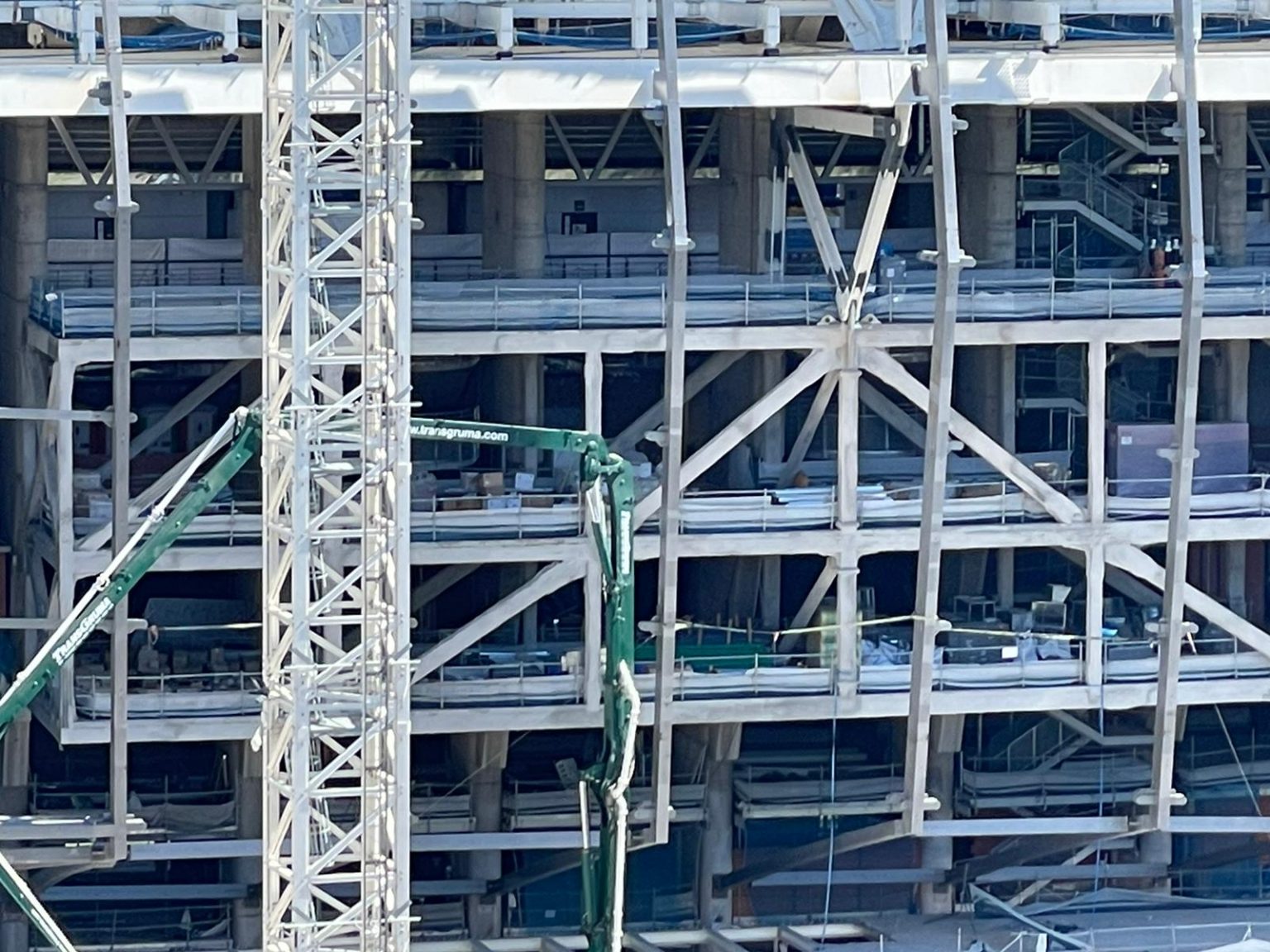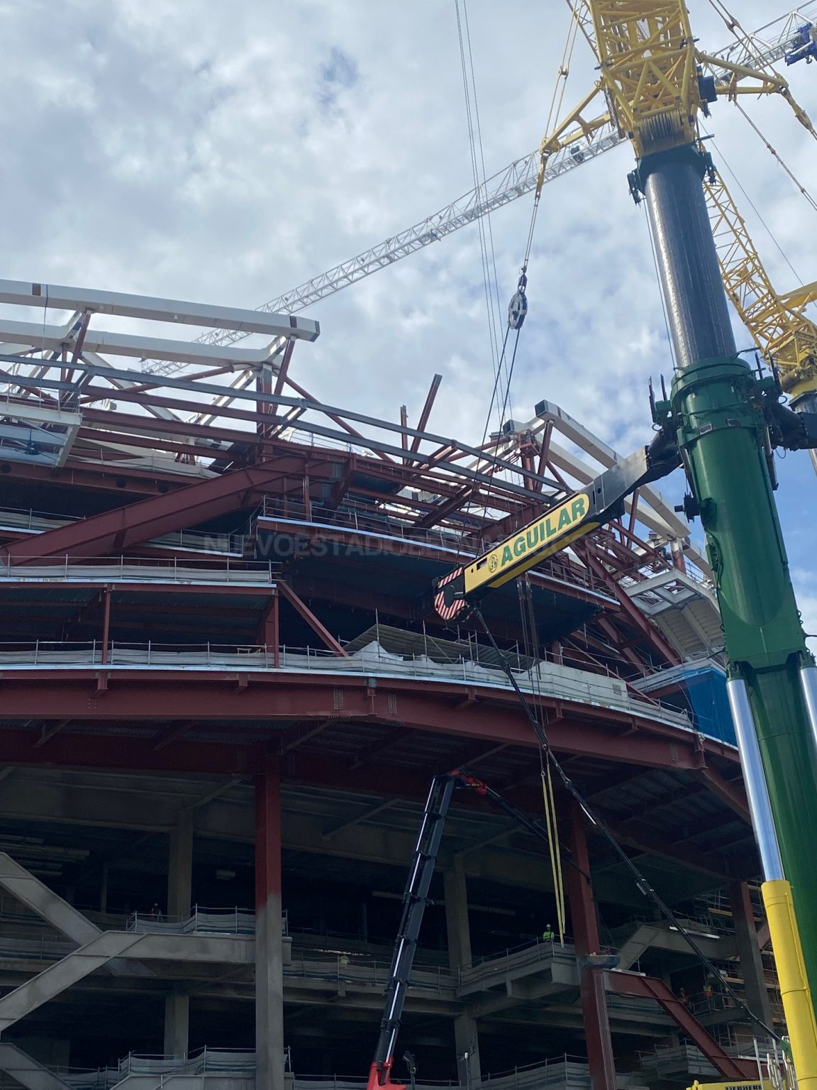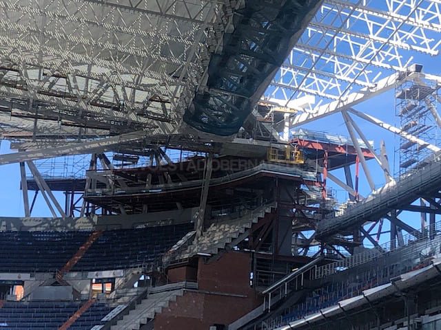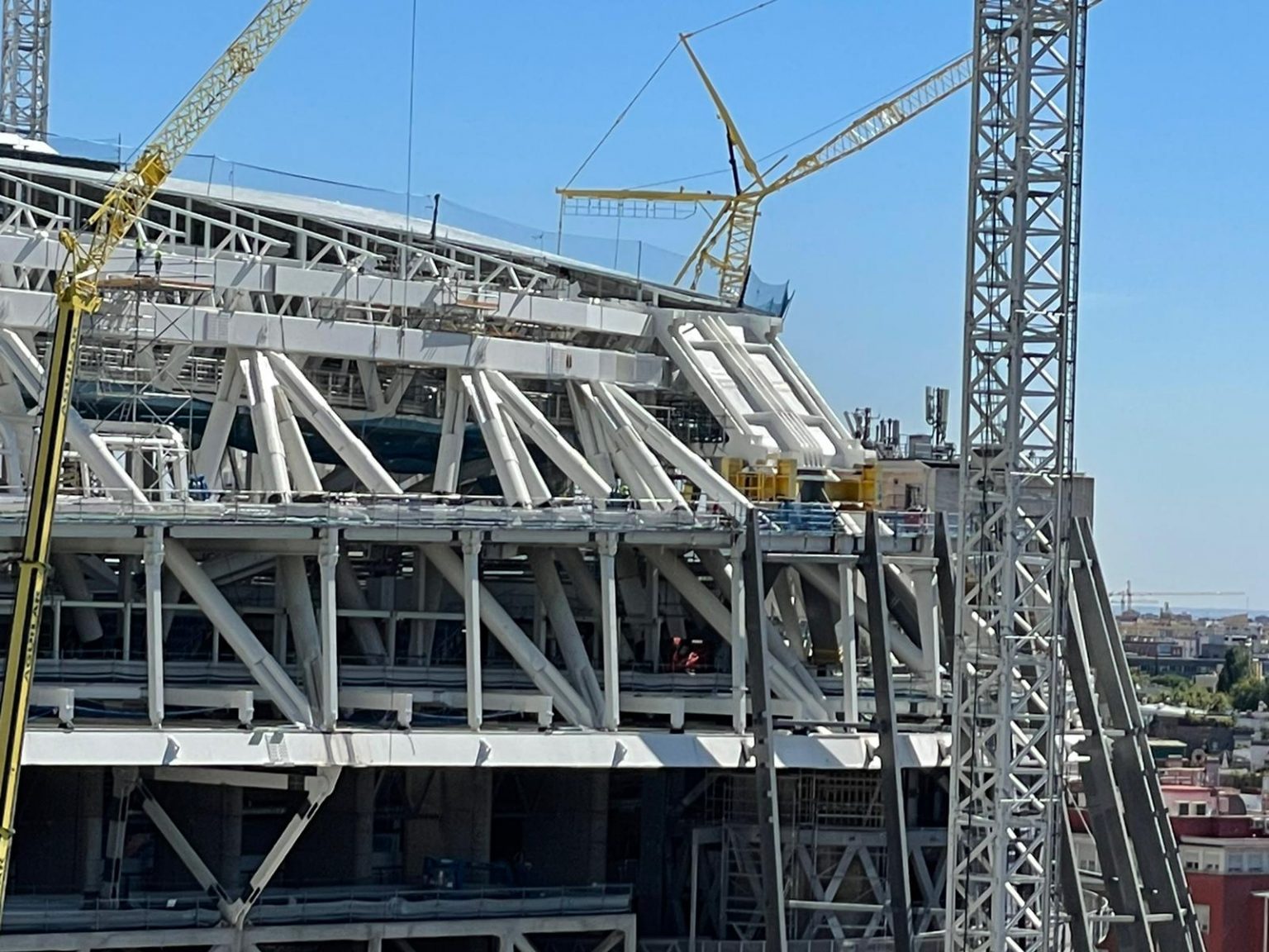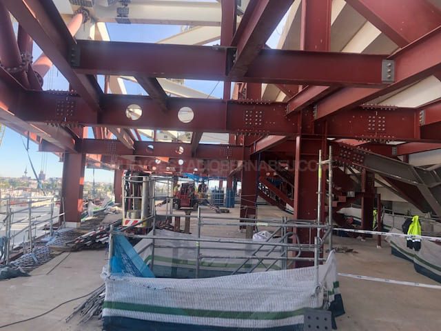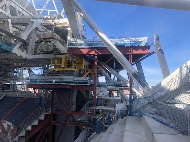 La cubierta también ha seguido su avance con el objetivo de empezar a izar las cerchas de la cubierta retráctil en las próximas semanas con el objetivo de que esté también terminada para después de Qatar.