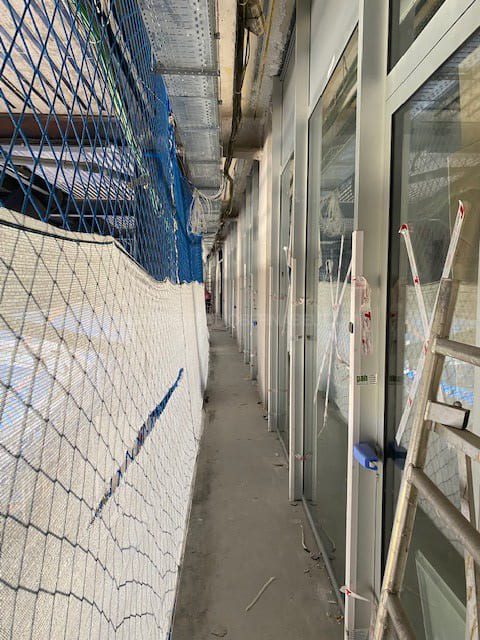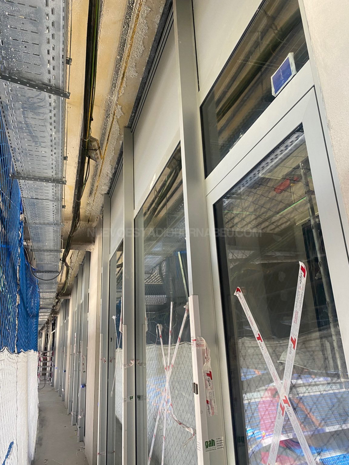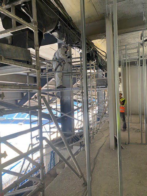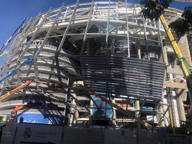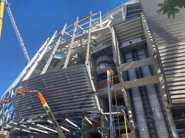 Además, se ha trabajado en la instalación masiva de lamas, y continuo crecimiento del edificio este. Se han terminado las bancadas de la nueva grada del lateral este la cual estará operativa a partir del mundial de Qatar.