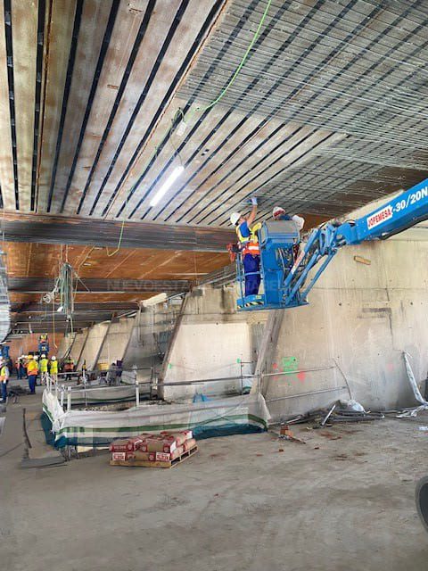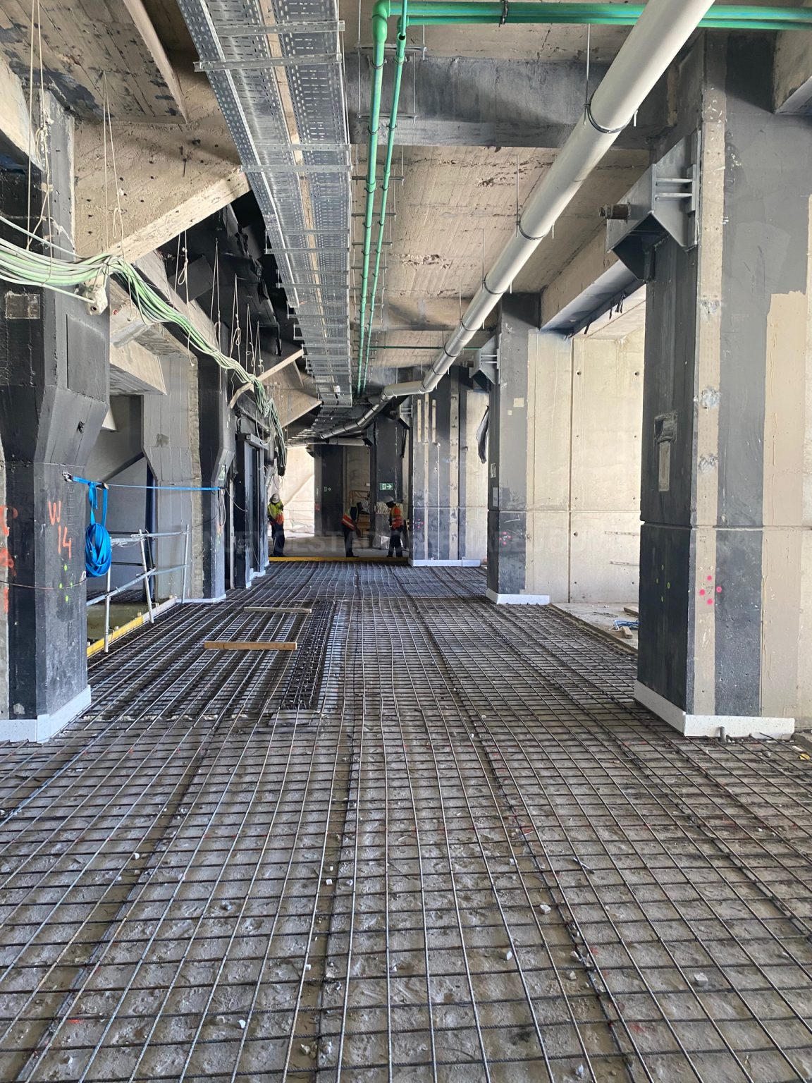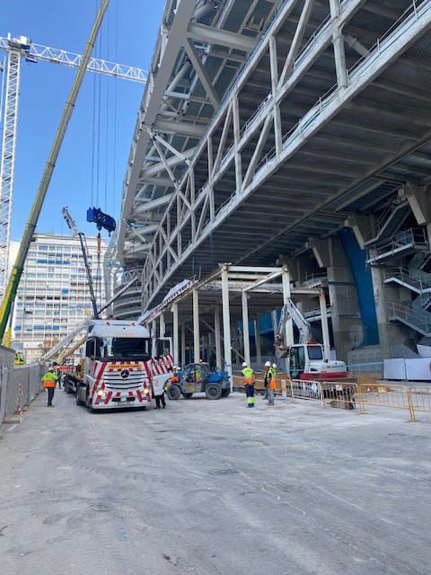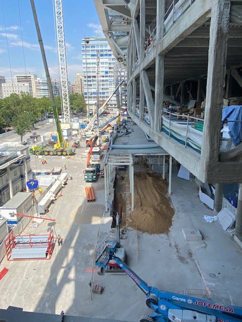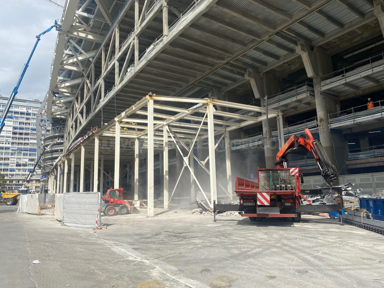 Se han hormigonado parcialmente los forjados del skywalk en sector noroeste y se ha demolido parcialmente la plataforma auxiliar que ha servido de base ensamblaje e izado de las cerchas principales del estadio y de la viga museo.