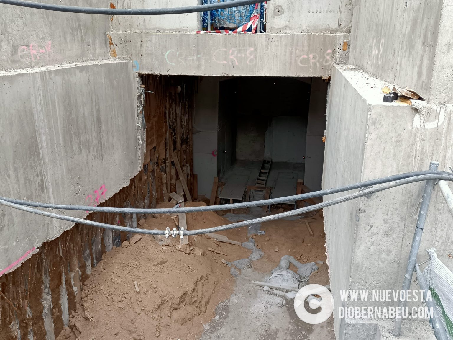 Se continúa trabajando en el futuro césped mecanizado, con los trabajos bajo grada en las conexiones norte y sur con el hipogeo, el cual se sigue vaciando mediante retro de brazo largo para su posterior traslado con bañeras. Hasta 130 bañeras han llegado a pasar a través de la puerta 36 en un solo día. Hablando de la puerta 36, con el fin de optimizar los ingresos del futuro nuevo Bernabéu se prevé dejar preparada la ejecución de una grada abatible de dimensiones idénticas a la que se ha construido en el lateral este con el fin de que pueda dar un circuito de entrada y salida de camiones en los días de eventos que posibilite un circuito más rápido. Esto permitiría que en eventos con gran cantidad de trailers el depósito o carga de material sea más rápido. Para dar respuesta a la multitud de preguntas de los últimos días, podemos asegurar que no se va a construir una grada abatible de todo el fondo sur.