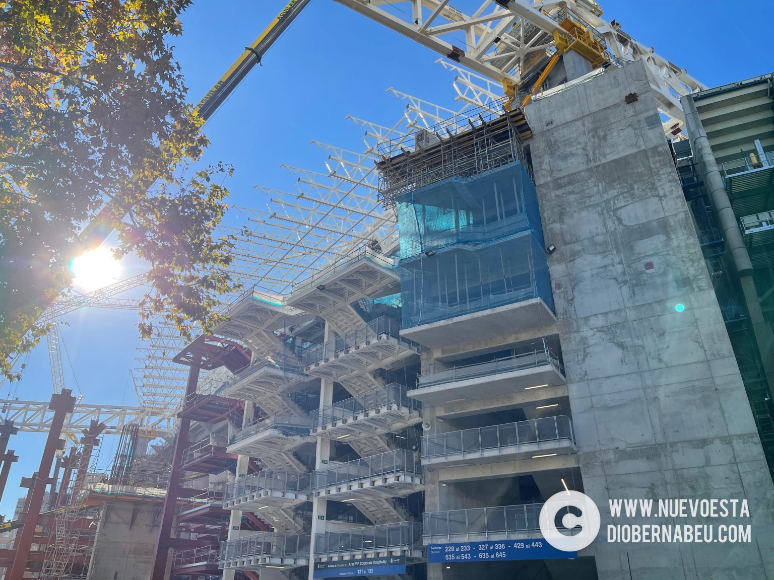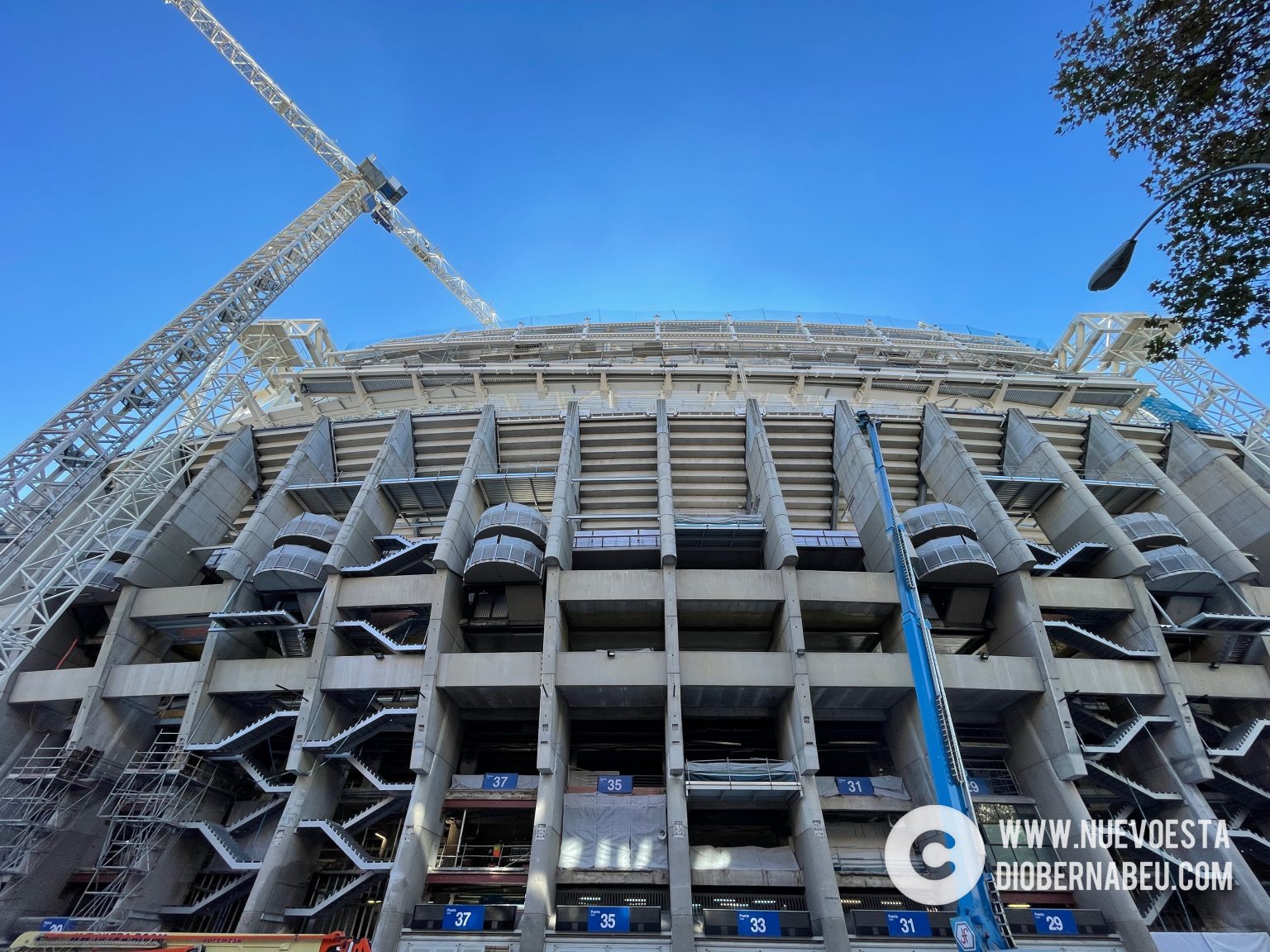 Semana con dos partidos en el Santiago Bernabéu que lógicamente hace que la obra coja un ritmo más lento hasta que pase el partido de mañana miércoles, si bien es cierto que el ritmo sigue siendo frenético para cumplir con todos los objetivos marcados hasta fin de año.