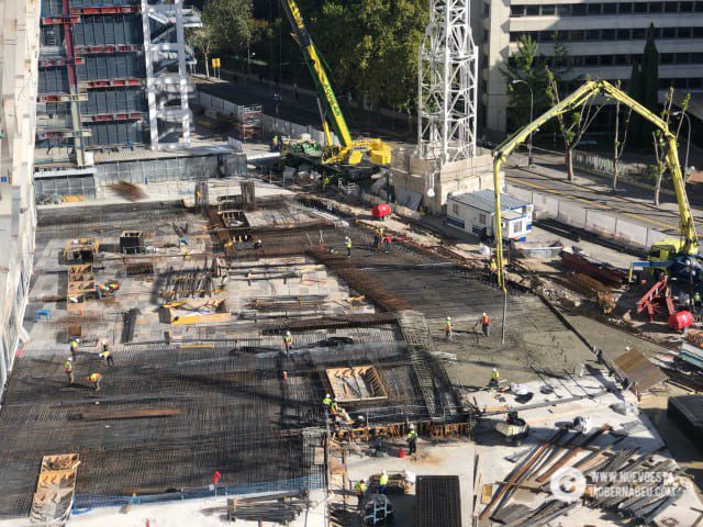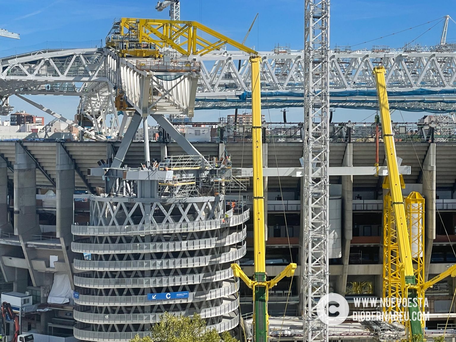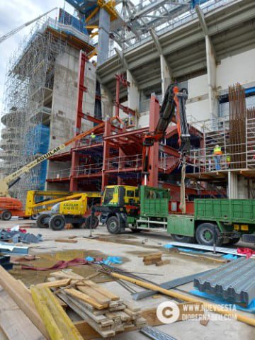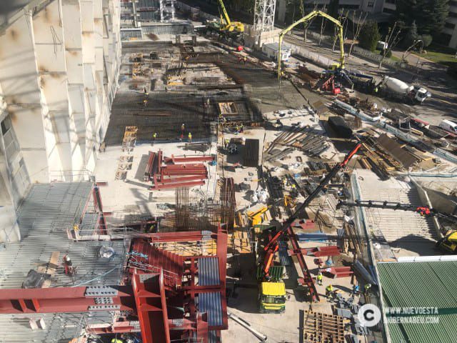 El edificio este, que será una de las joyas de la corona del nuevo Bernabéu, avanza a velocidad de vértigo. Se prevé que estructuralmente pueda estar terminado para el primer trimestre de 2022.