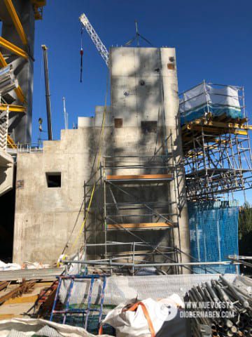 En las nuevas torres se han ejecutado repasos y remates de cerrajería y pintura en las cestas de fachada, y en la pavimentación de resina en rampas y plantas principales. Además se trabaja en los pozos de arranque situados en la zona sótano.