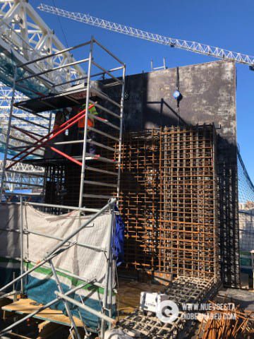 En la vertical de la fase 2 del nuevo edificio se comienza a colocar escaleras, pilares y vigas de estructura metálica y ferralla y hormigón sobre chapa colaborante. En la verticual de la fase 3, sobre lo que antiguamente era el edificio multiusos, se han despuntalado todos los forjados de los sótanos 1 a al 5 y se han colocado varias escaleras.